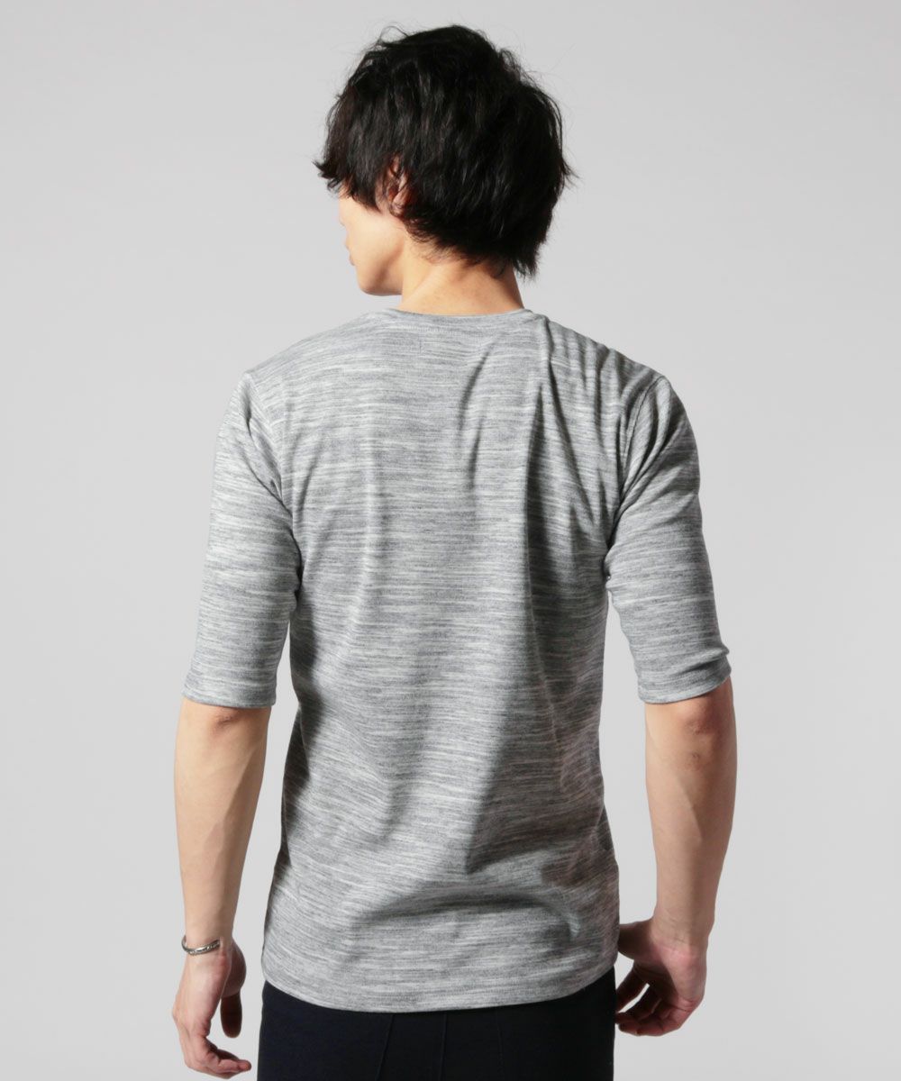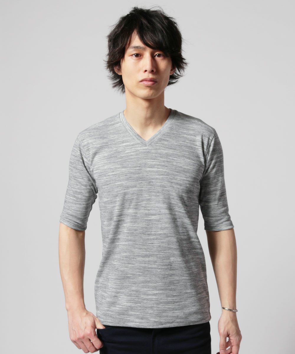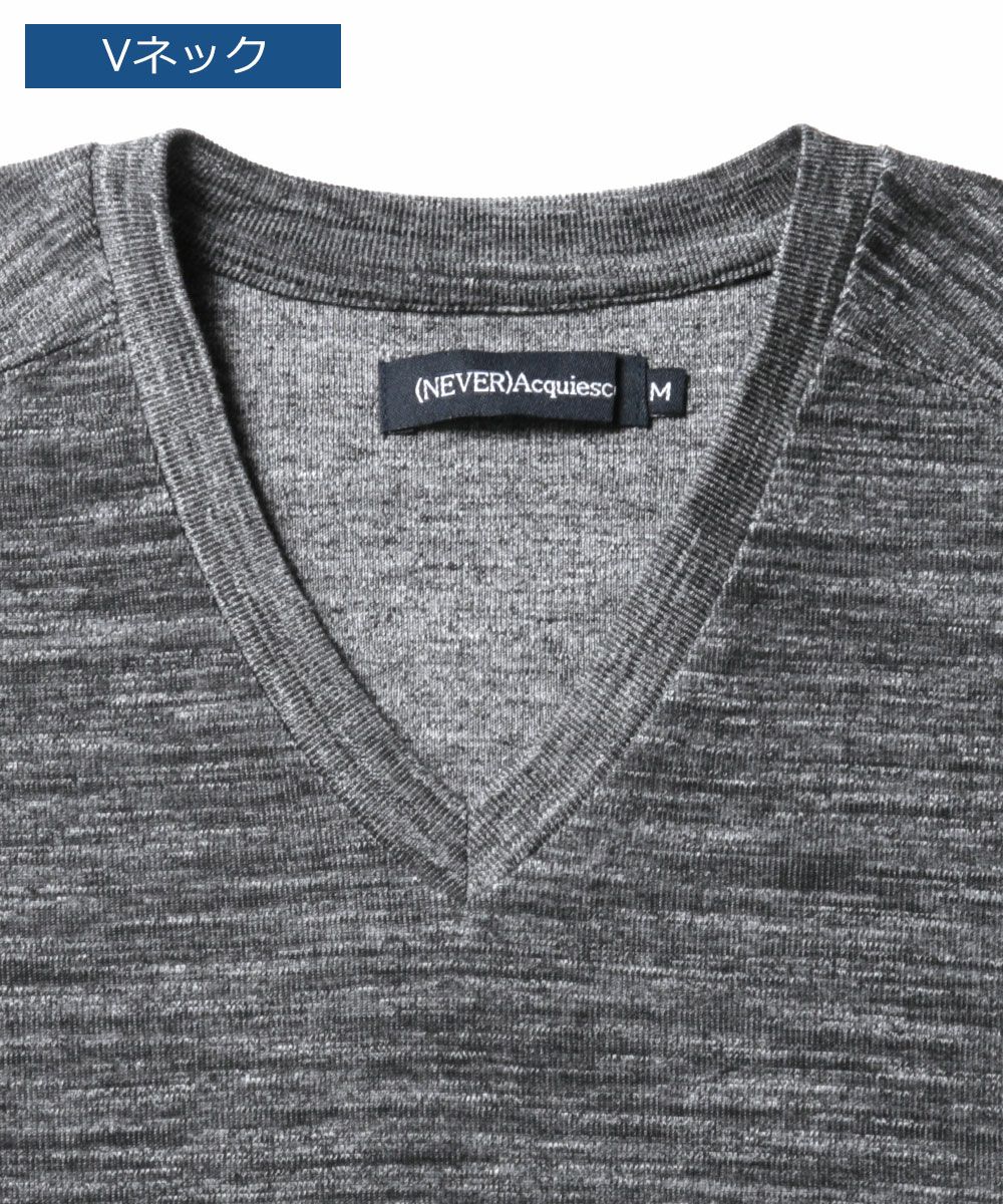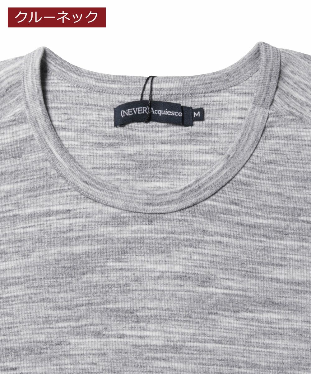 NEVERAcquiesce/トリッキーヘザーフライスVネック/クルーネック5分袖カットソー