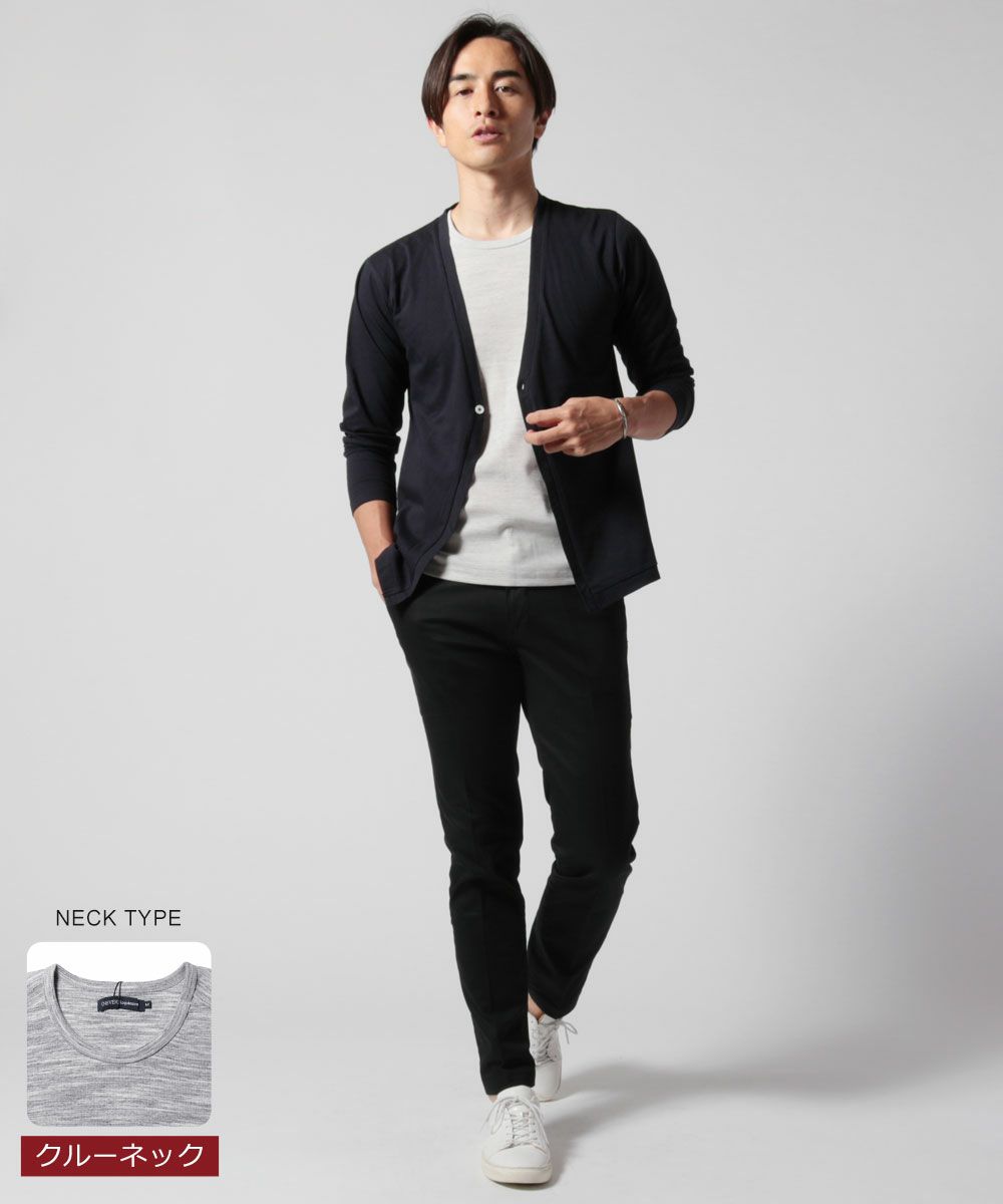 従来のものはVネックとUネックの2タイプで、特にUネックのほうはデコルテが見えるほどの深めの襟ぐりでした。今回のリニューアルではUネックタイプを『クルーネック』デザインに変更。浅めの襟ぐりで、より男らしい印象を与えるネックデザインとなって新たに登場しました。