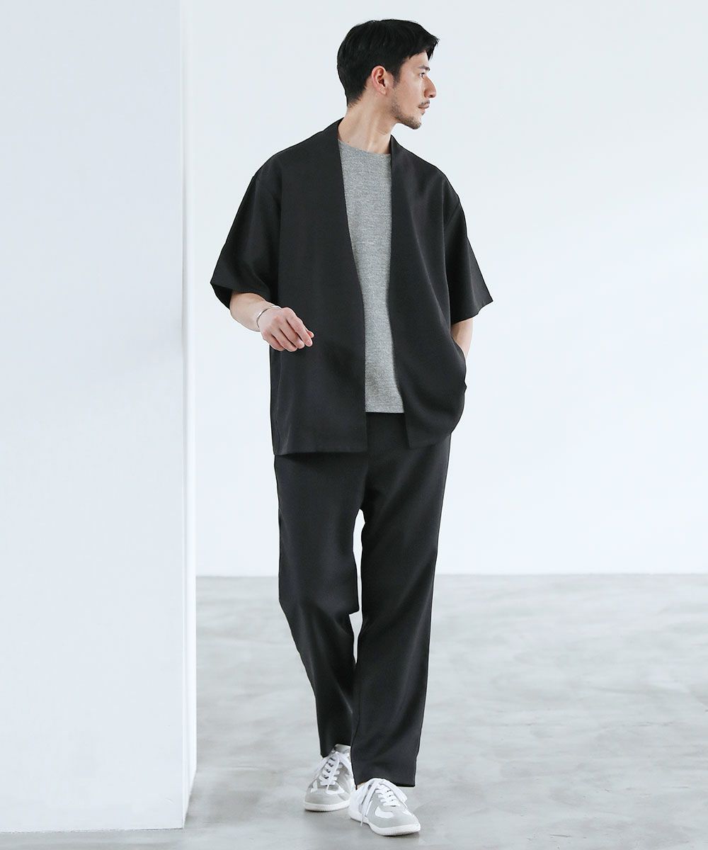 【セットアップ 2点セット】接触冷感テックリネンノーカラー半袖カーデorオープンカラー半袖シャツ/&テーパードパンツセットアップ