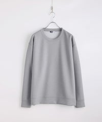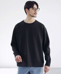 ゆったりめの身幅で設計しつつも袖はゆとりを抑えて、部屋着感が強くなってしまわないように調整した絶妙なゆるめのシルエットになっております。上からアウターを重ねてもごわつきにくいサイズ感です。ネックはベーシックで使いやすいクルーネックを採用。洗練されたクリーンな印象のデザインで、大人のスウェットスタイルをお楽しみいただける一着です。
