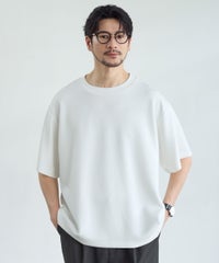 身幅や腕ぐりにゆとりを持たせて完成させたリラクシーシルエット。動くたびに揺れ動くとろみ感のあるポンチ生地の効果で、品の良い軽やかな印象に。Tシャツらしいラフな着心地はキープしつつ、キレイめなアイテムとしても活用できます。一枚で着てもサマになる大人向けTシャツです。