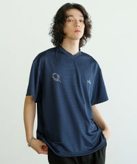 サッカーユニフォームのスタイルを日常に取り入れた、旬のブロークコアを楽しむ半袖Tシャツです。