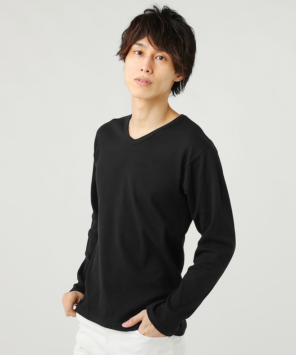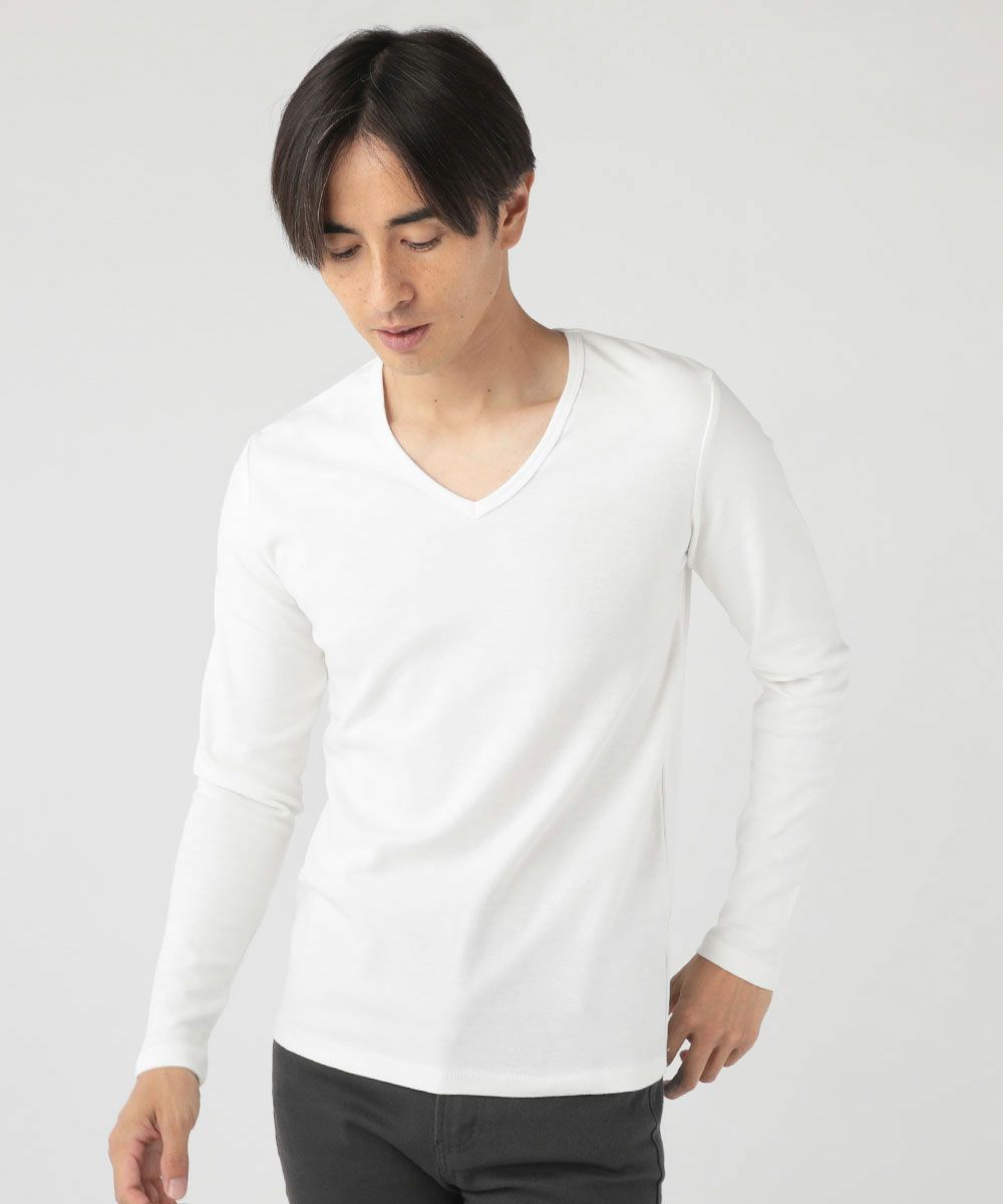 スパンテレコクルーネック/Vネック/ヘンリーネック長袖カットソー