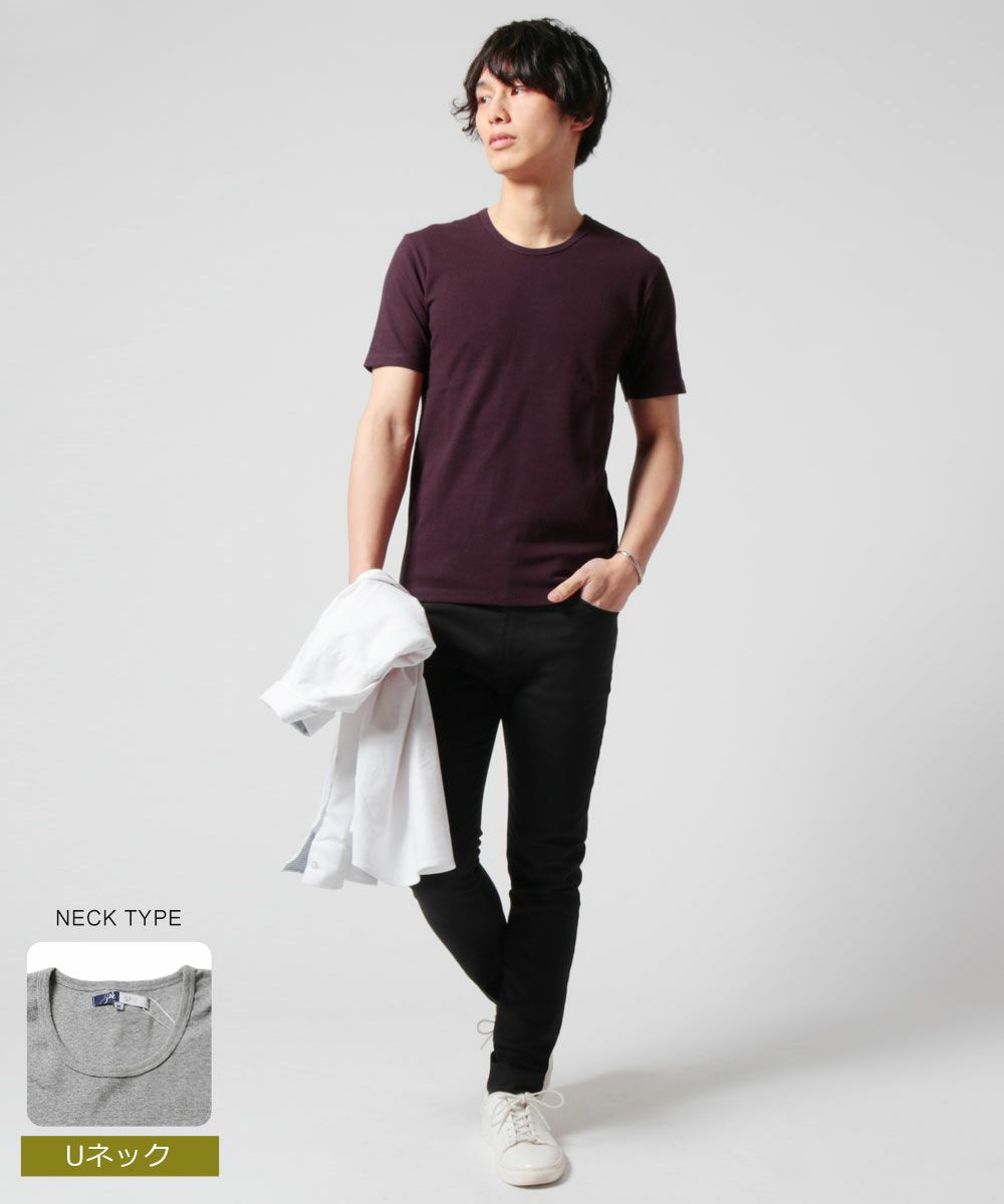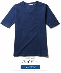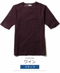 スパンフライスVネック/Uネック5分袖カットソー【メール便対応】