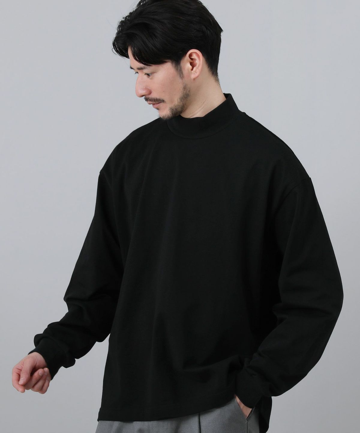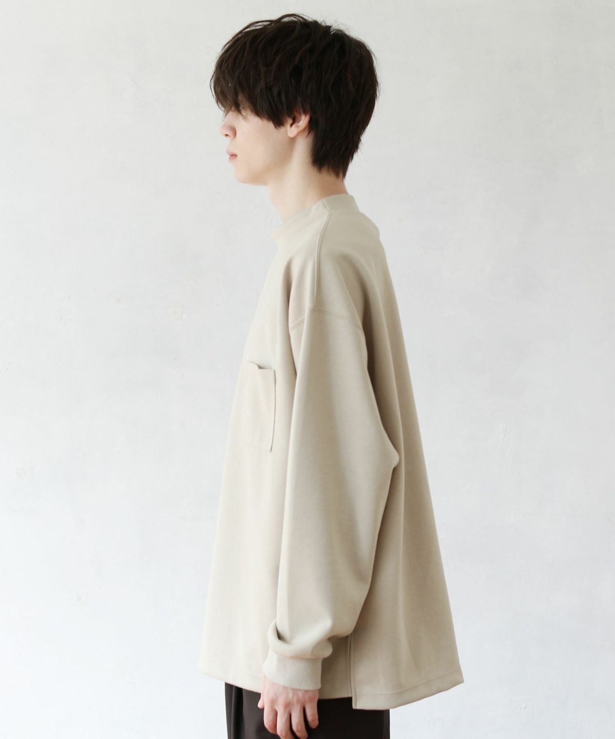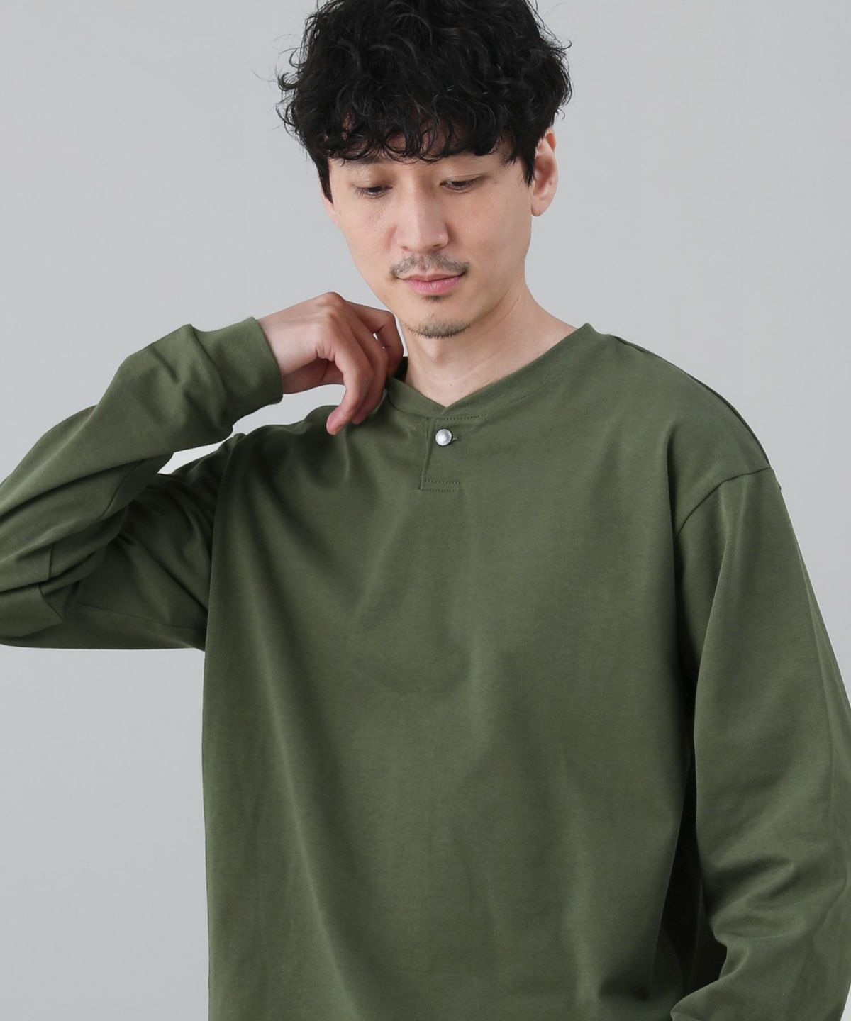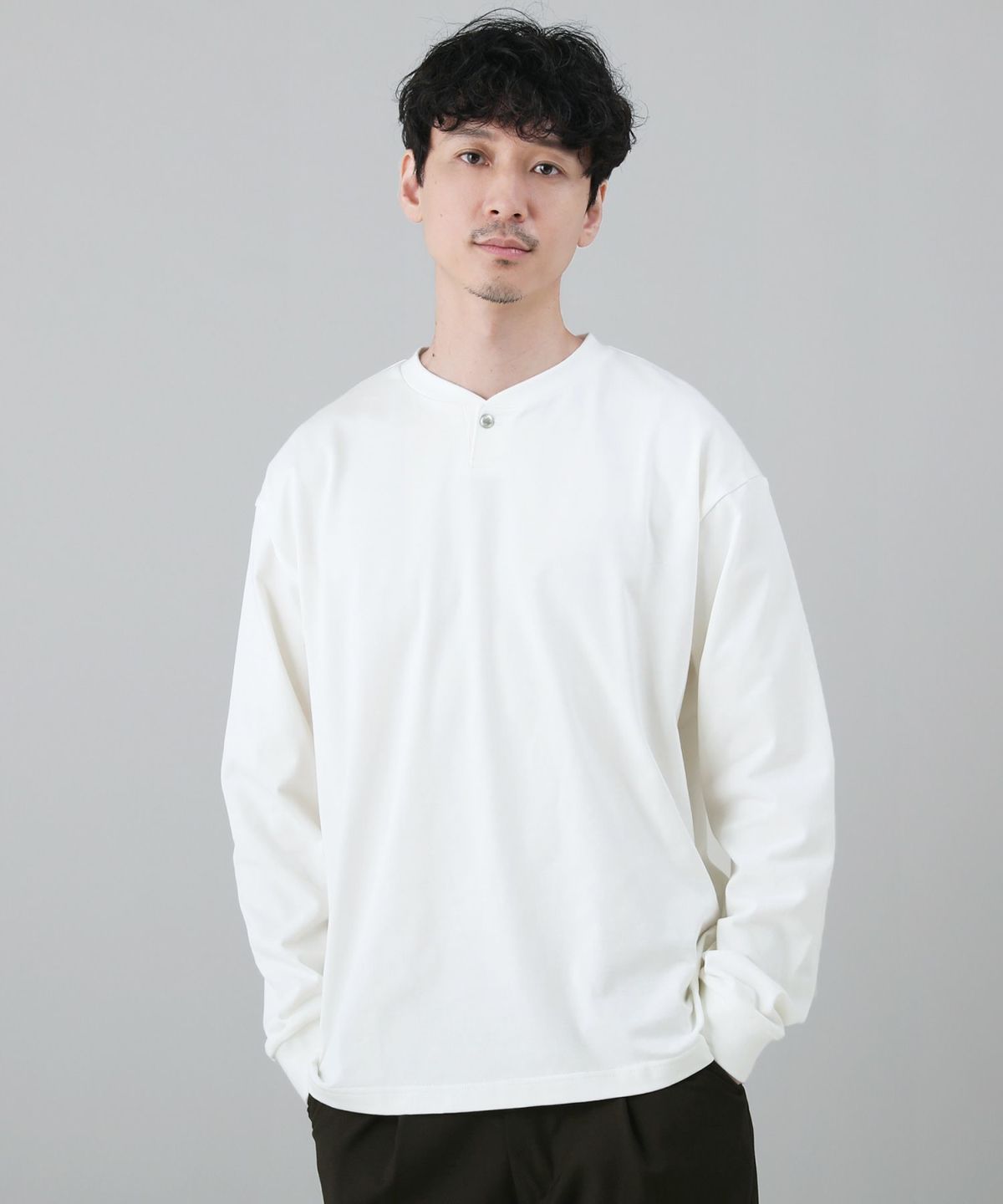 スパンフライス長袖ヘンリーネックカットソー 3,960円(税込) |