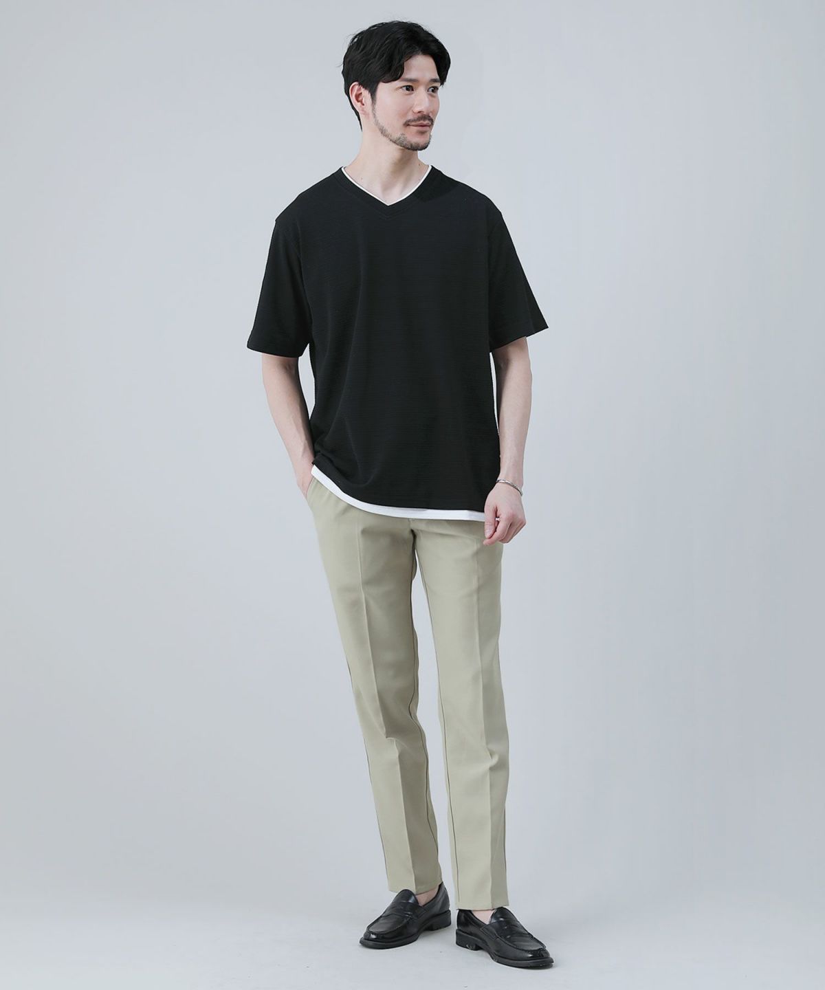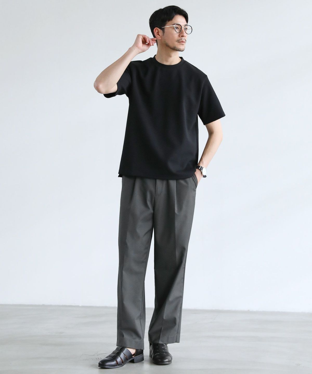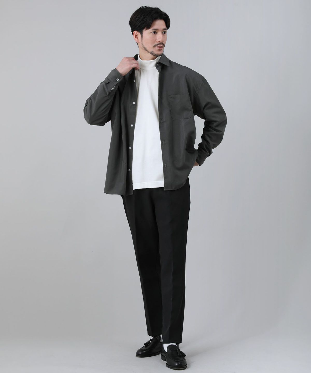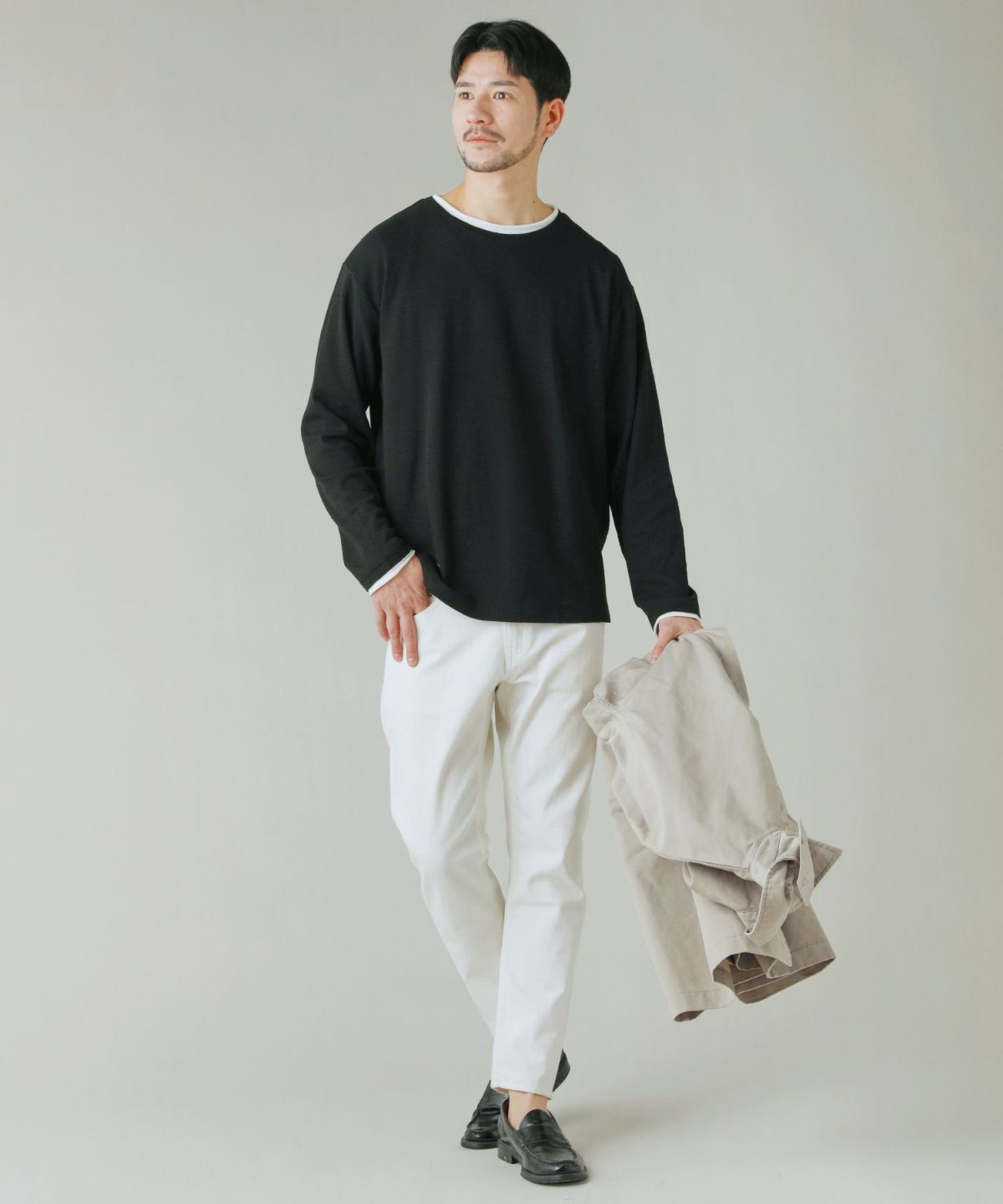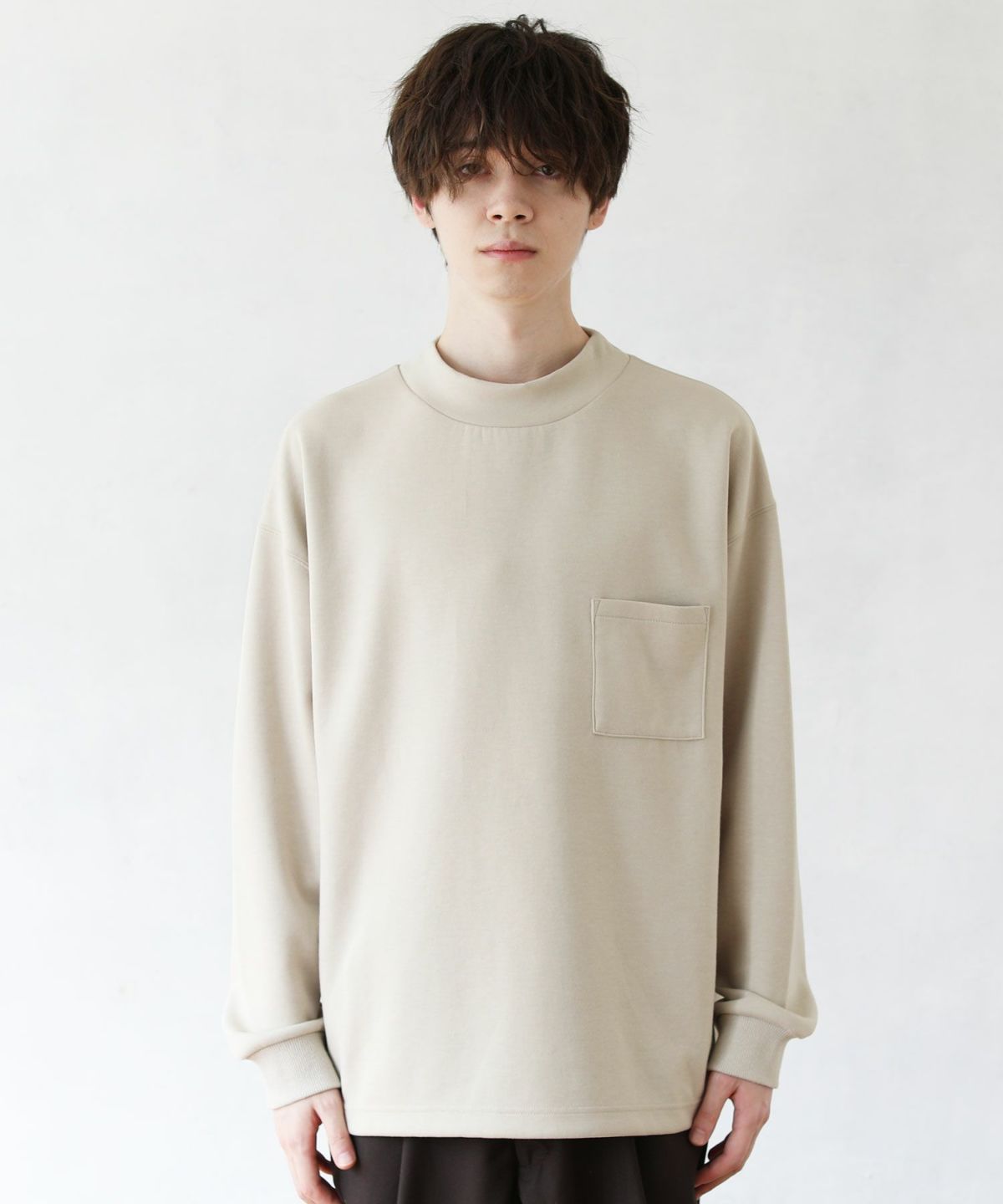 スパンフライス長袖ヘンリーネックカットソー 3,960円(税込) |