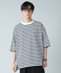 日本製「尾州」 12オンス パネルボーダー ボートネック ボクシー ハーフスリーブ