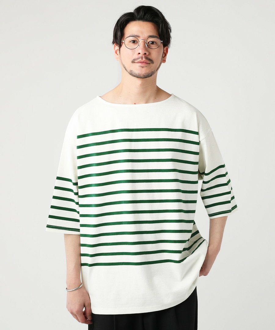 日本製 10オンスバスク天竺フレンチボーダーボートネック ボクシー半袖Tシャツ