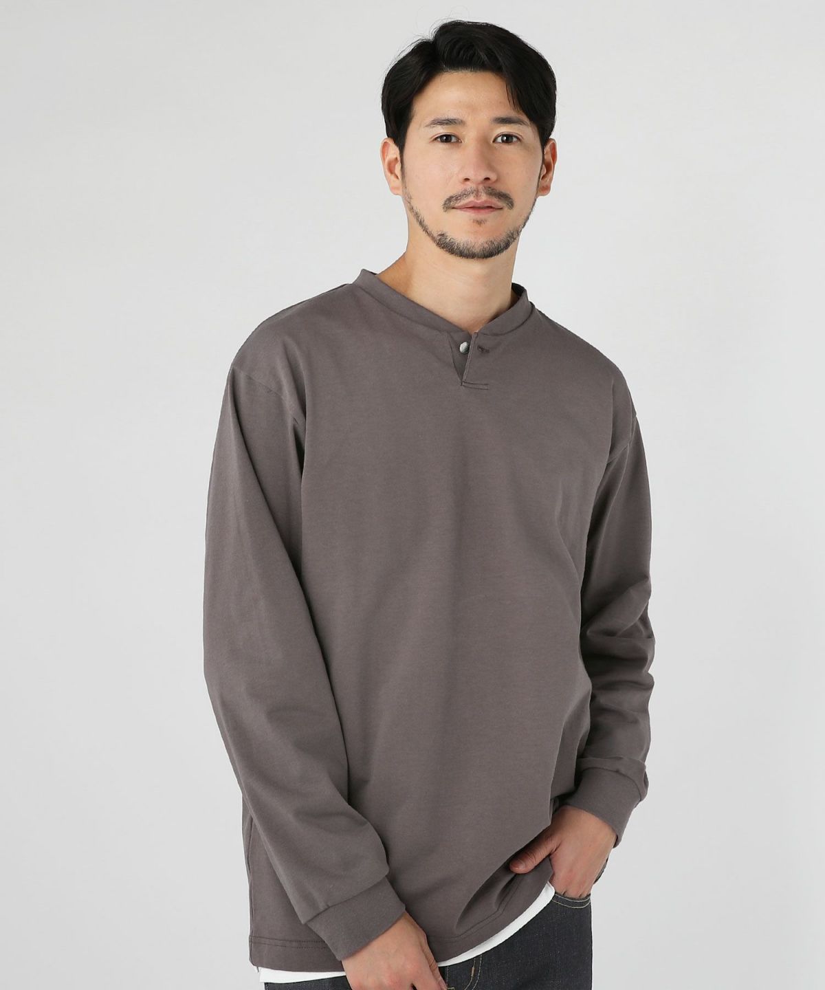 スパンフライス長袖ヘンリーネックカットソー 3,960円(税込) |