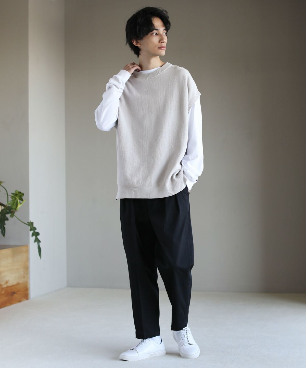 リラックス感のあるワイドシルエットが印象的なニットベストです。シャツやカットソーにプラスするだけでワンランク上のコーディネートが完成。肩幅がゆったりしているため、抜け感のあるスタイリングを生み出します。