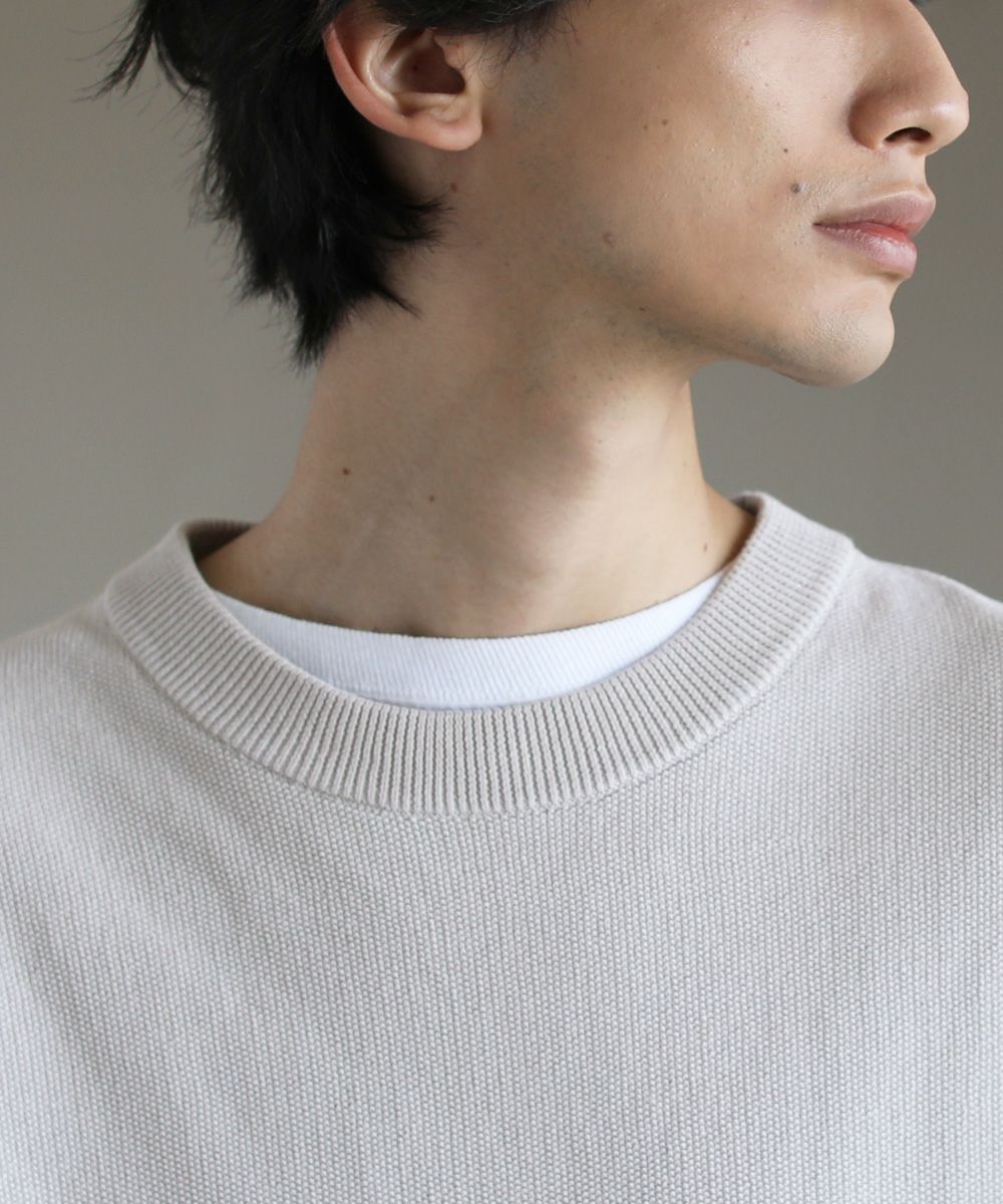 オーバーサイズのシルエットと立体的な鹿の子編みの上品な表情とで調和がとれ、ほどよく抜け感のあるキレイめな着こなしをお楽しみいただけます。