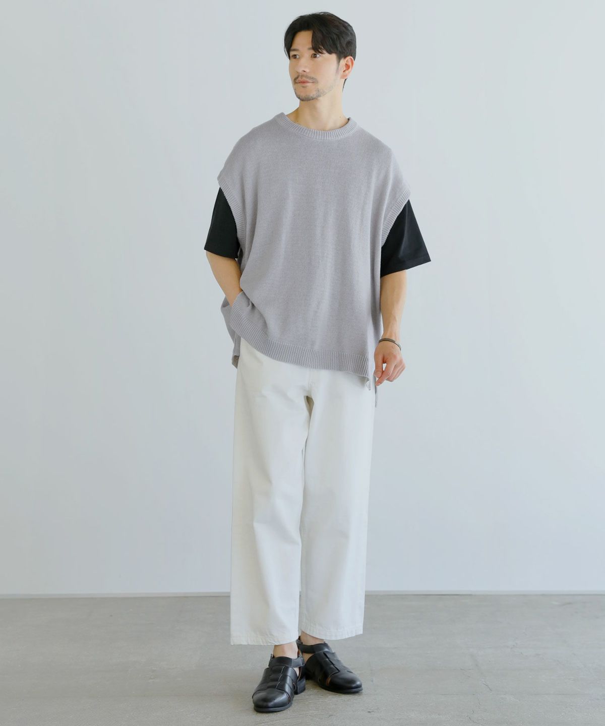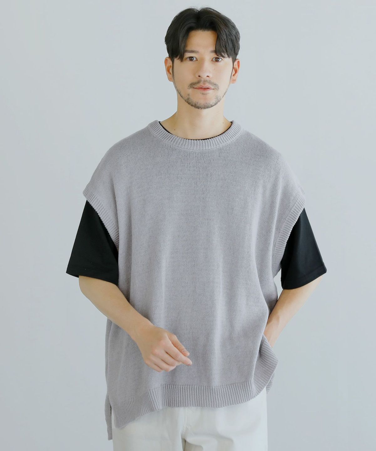 綿麻サイドスリットサマーニットベスト