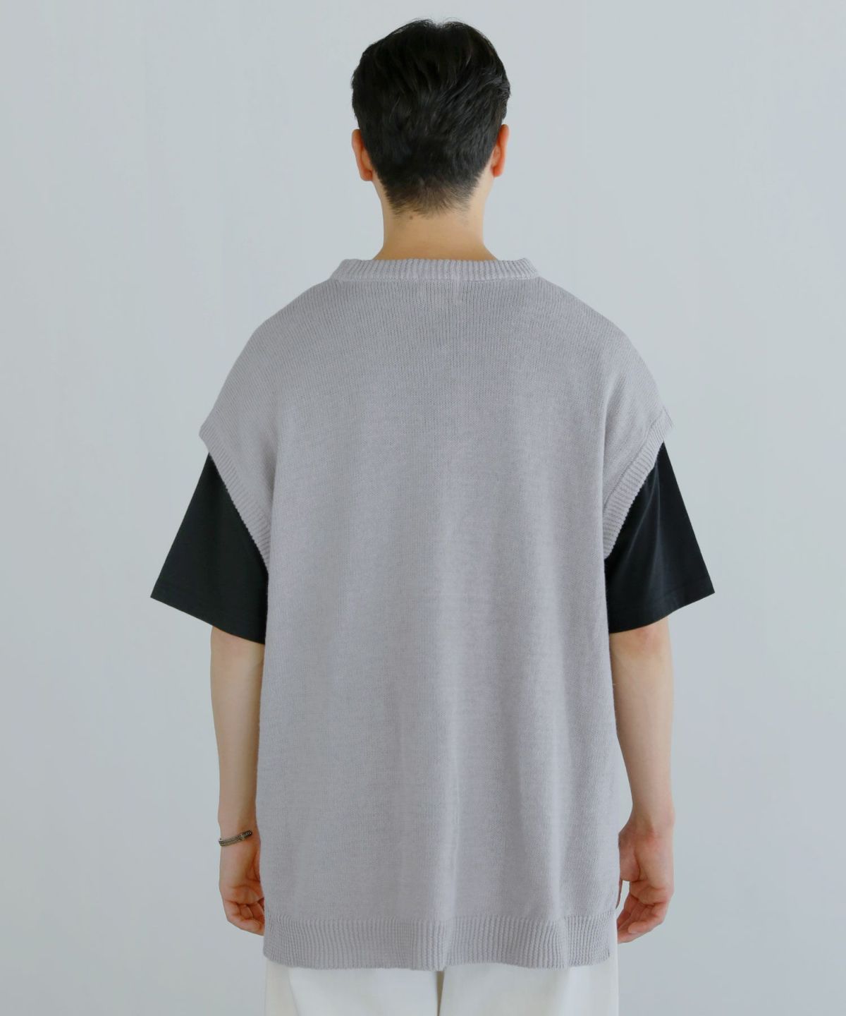 肩幅・身幅ともにゆとりをもたせた大きめなサイズ感のため、ビッグTシャツや大きめのシャツなどと合わせたレイヤードコーデがオススメ。前後に差をつけた着丈と、浅めに入ったサイドスリットがさりげないアクセントを与えてくれます。