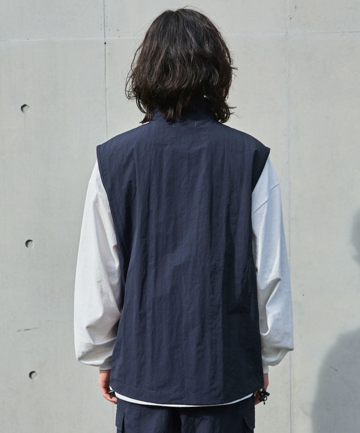 刺繍ロゴフルジップ裾ドローコードテックナイロンベスト