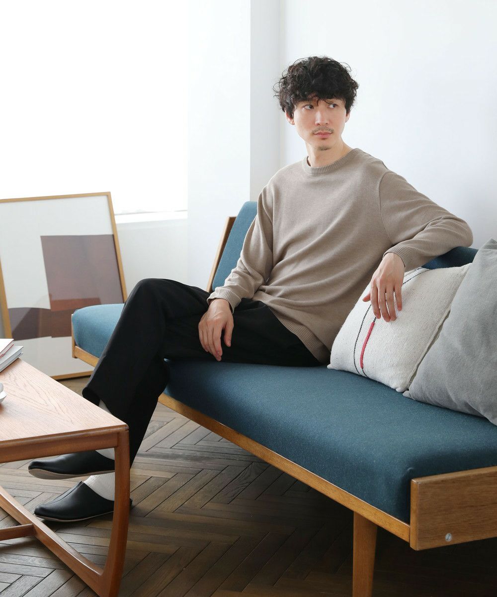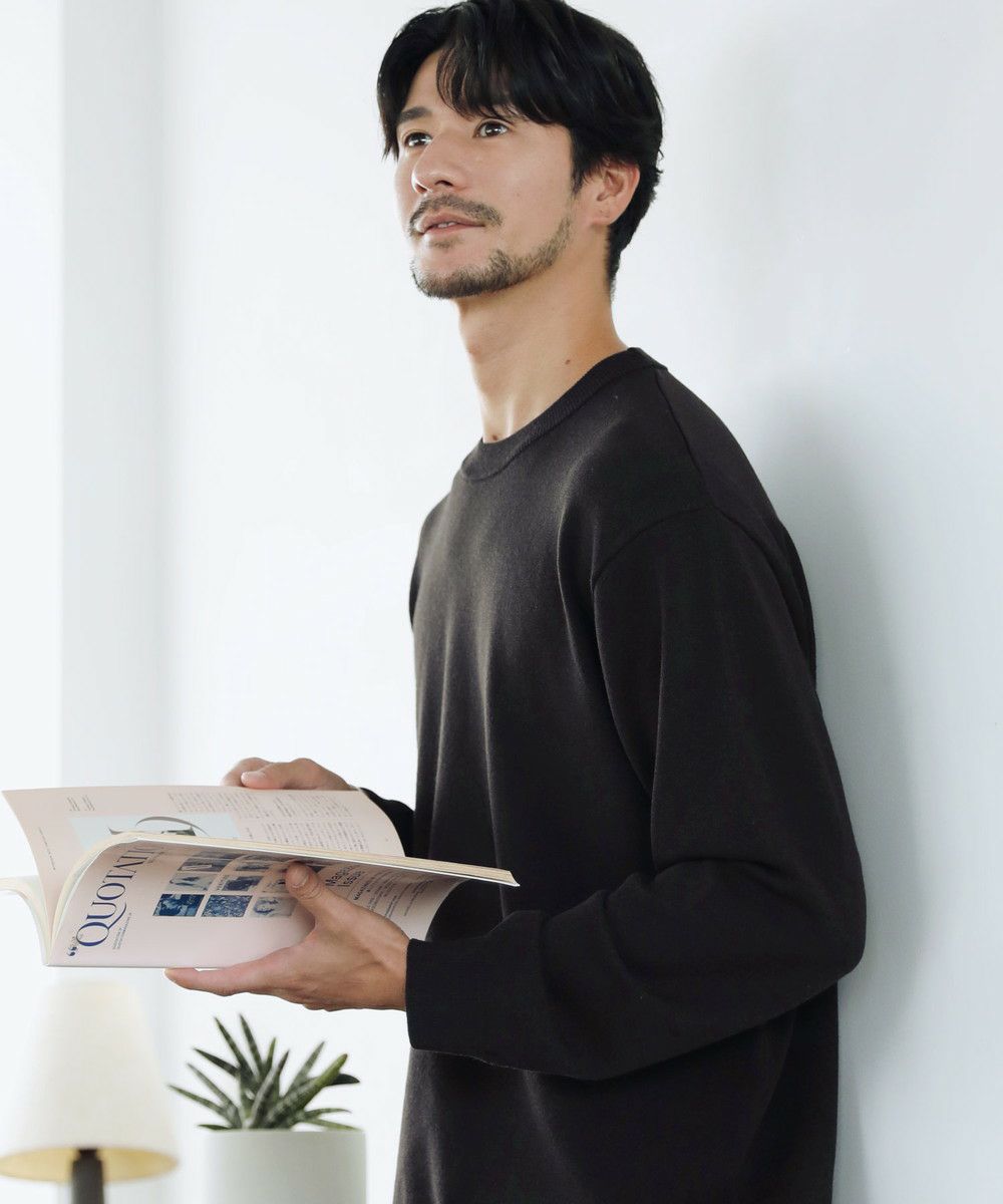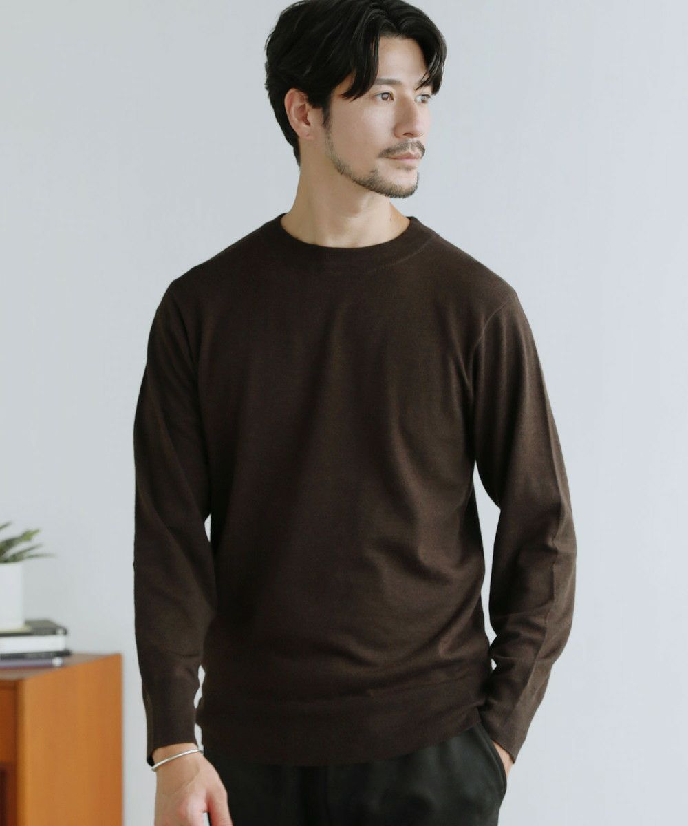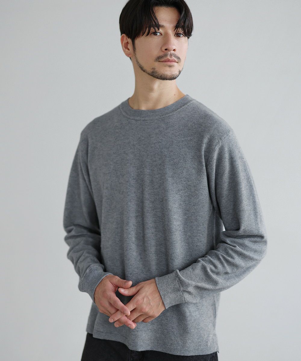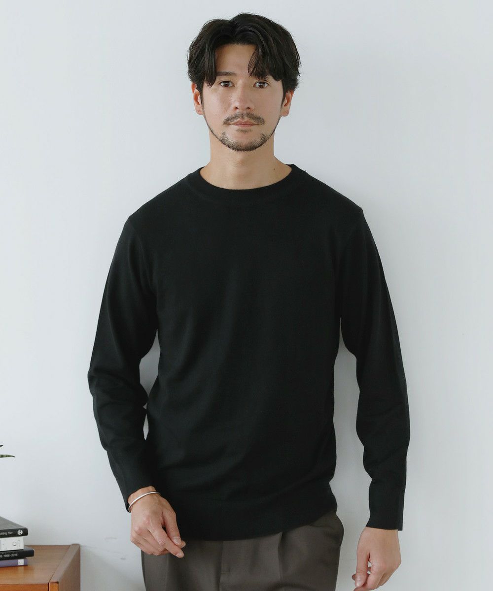 【吸湿発熱、ウォッシャブル、抗ピリング、シルク混、3シーズン着用可能】機能性シルク混コンフォートベーシック長袖クルーネックニット