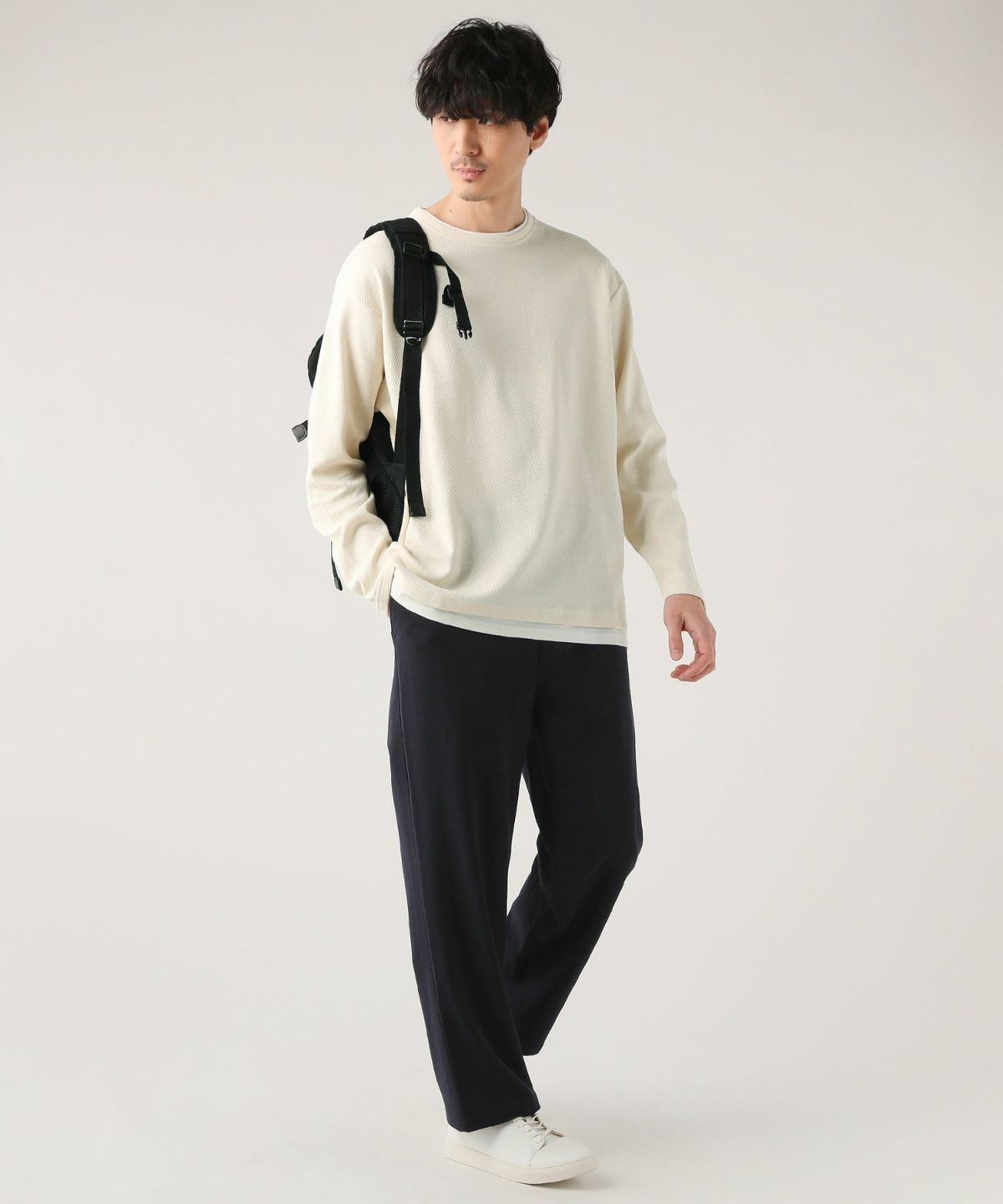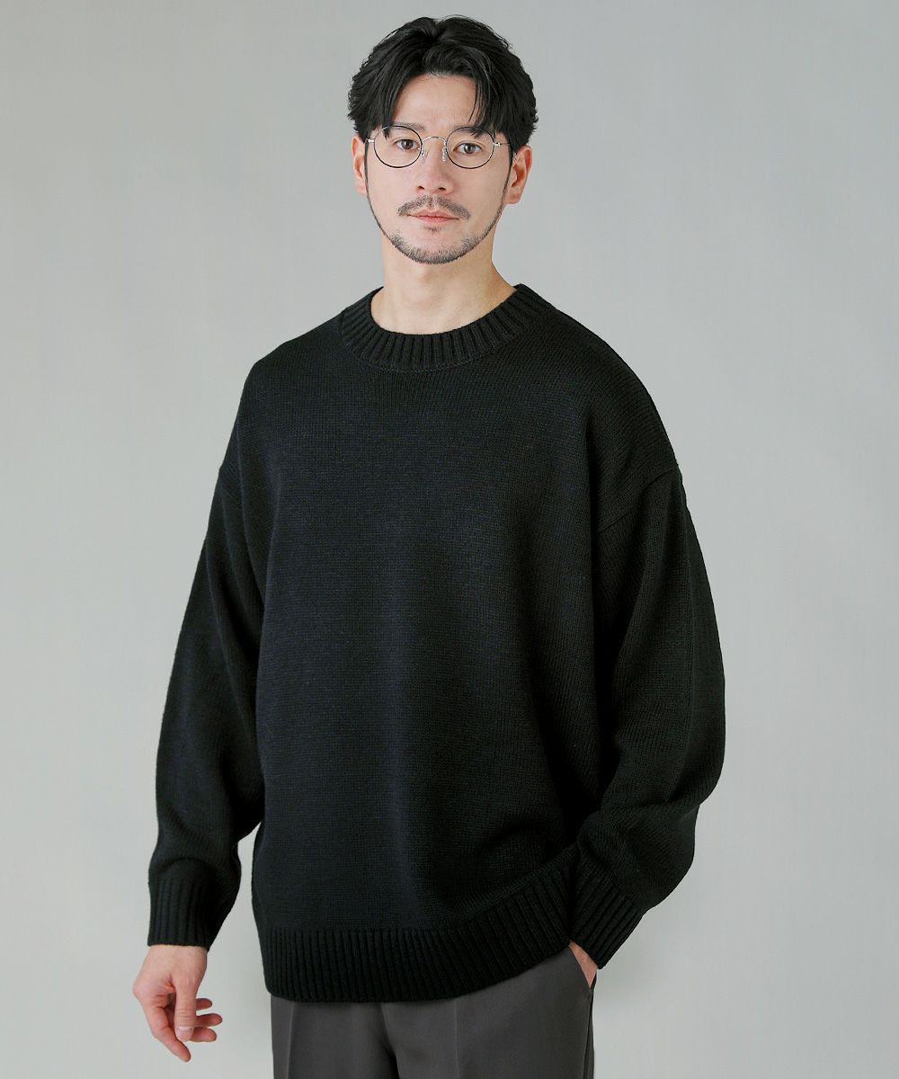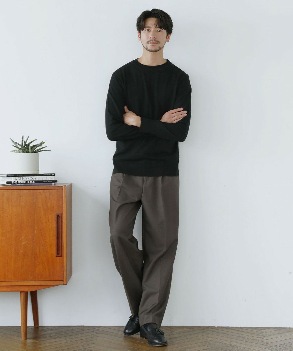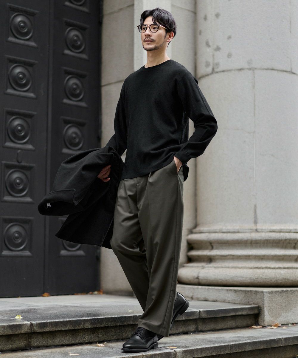 【吸湿発熱、ウォッシャブル、抗ピリング、シルク混、3シーズン着用可能】機能性シルク混コンフォートベーシック長袖クルーネックニット