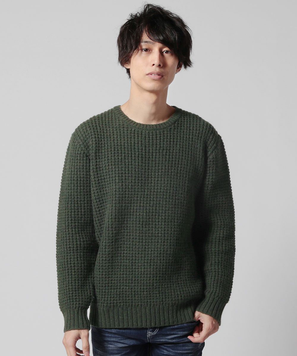 ウール混ラーベン編みクルーネックニット