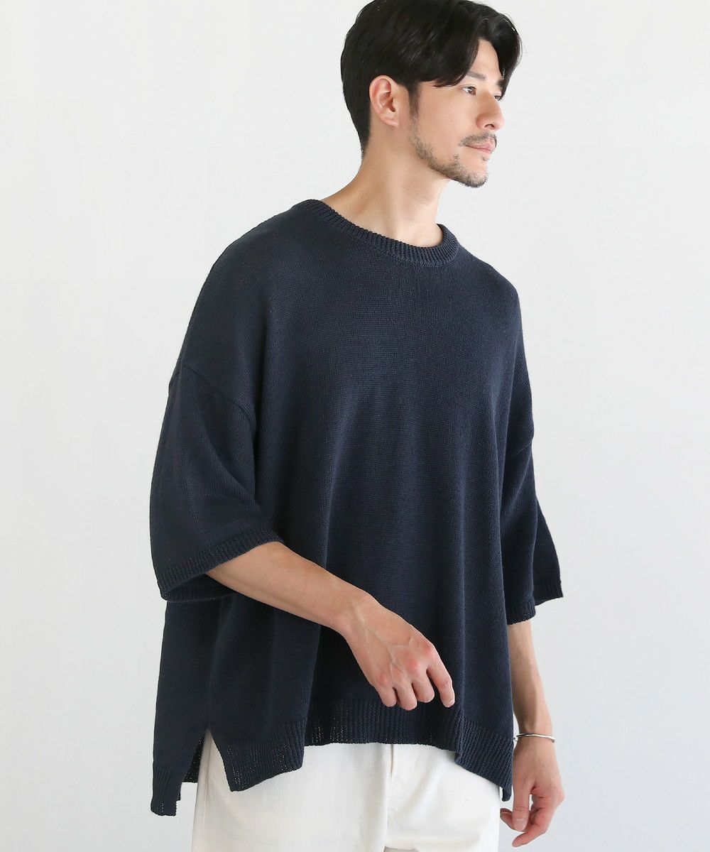 綿麻半袖クルーネックサマーニット