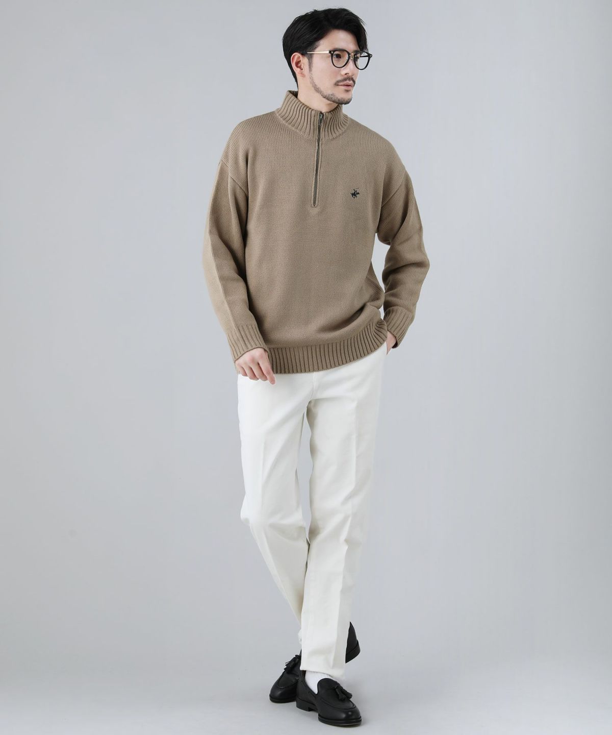 ワンポイントハーフジップセーター