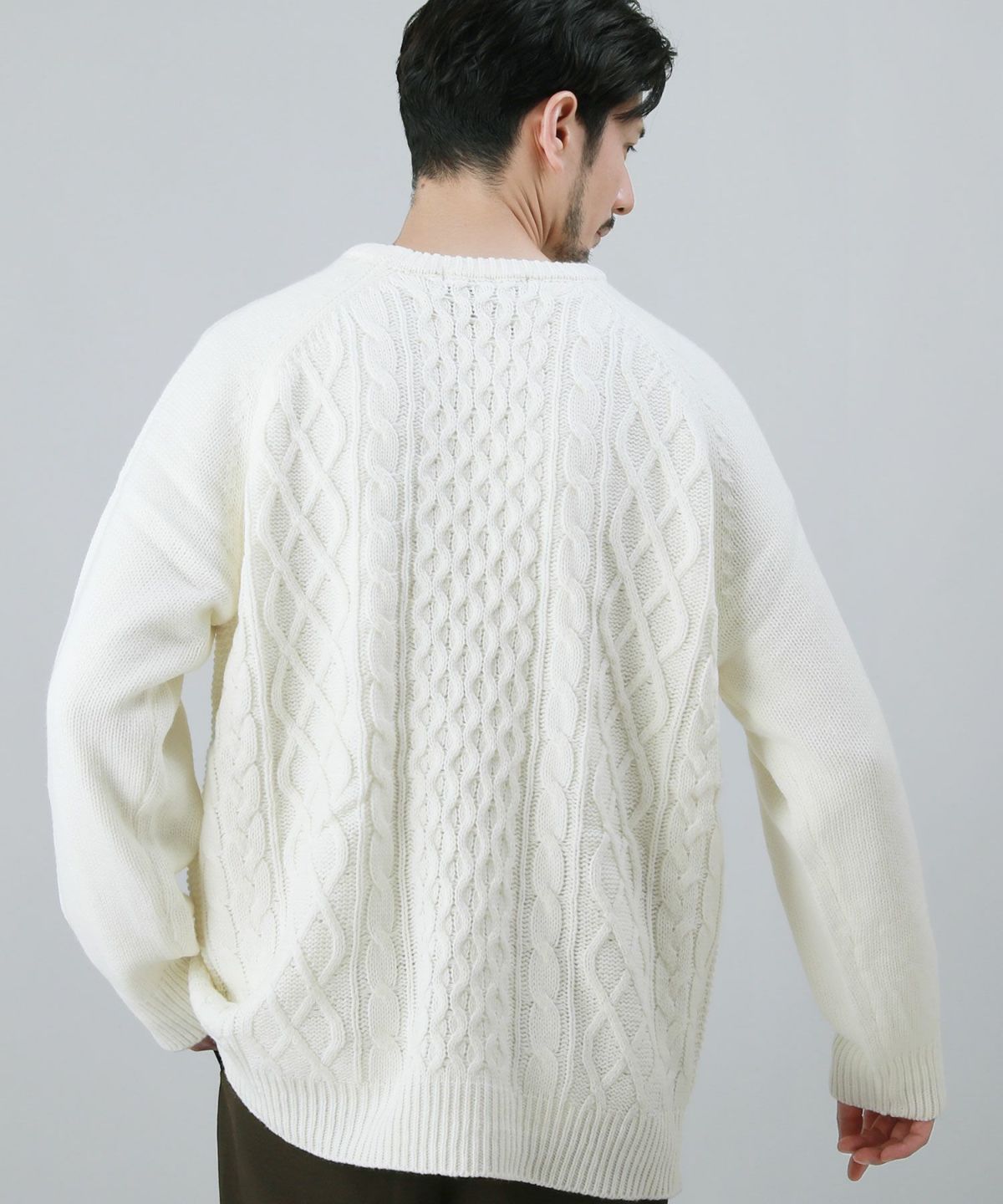 トレンドに左右されないベーシックなケーブル編みを採用しているため、シャツやカットソーと合わせるだけでぐっと季節感のあるコーデが決まります。