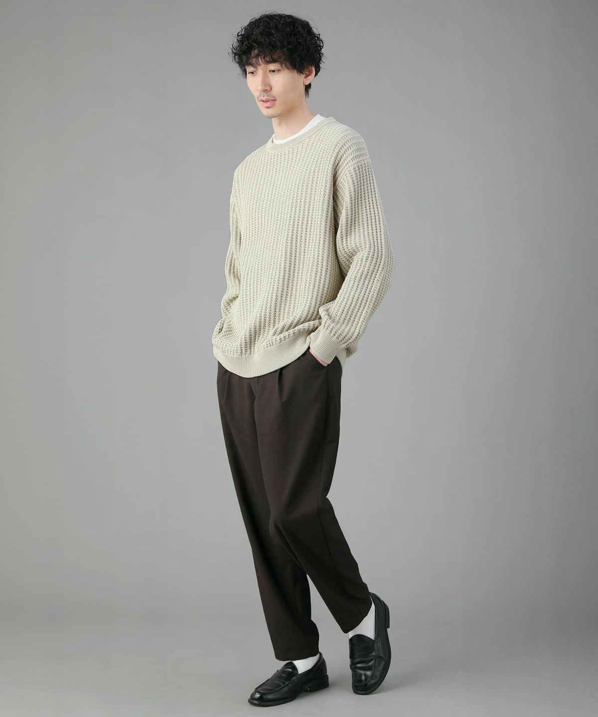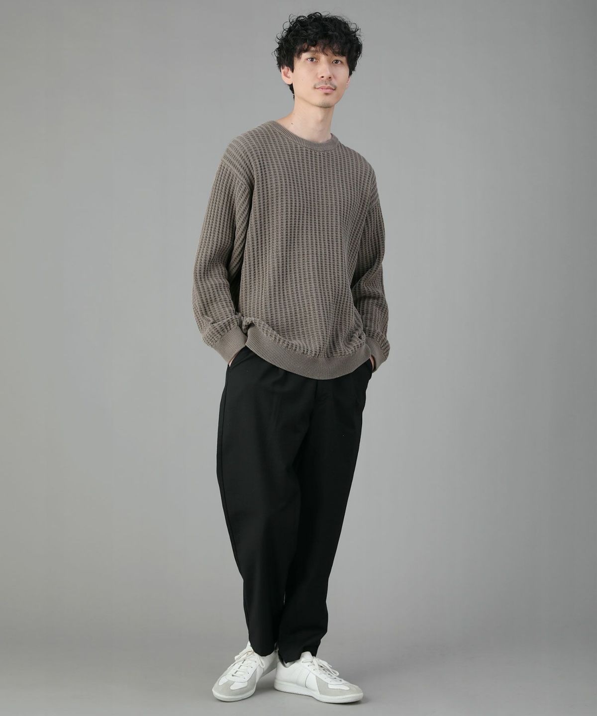 リラックス感のある着こなしを楽しめるビッグワッフル生地のクルーネックニット。