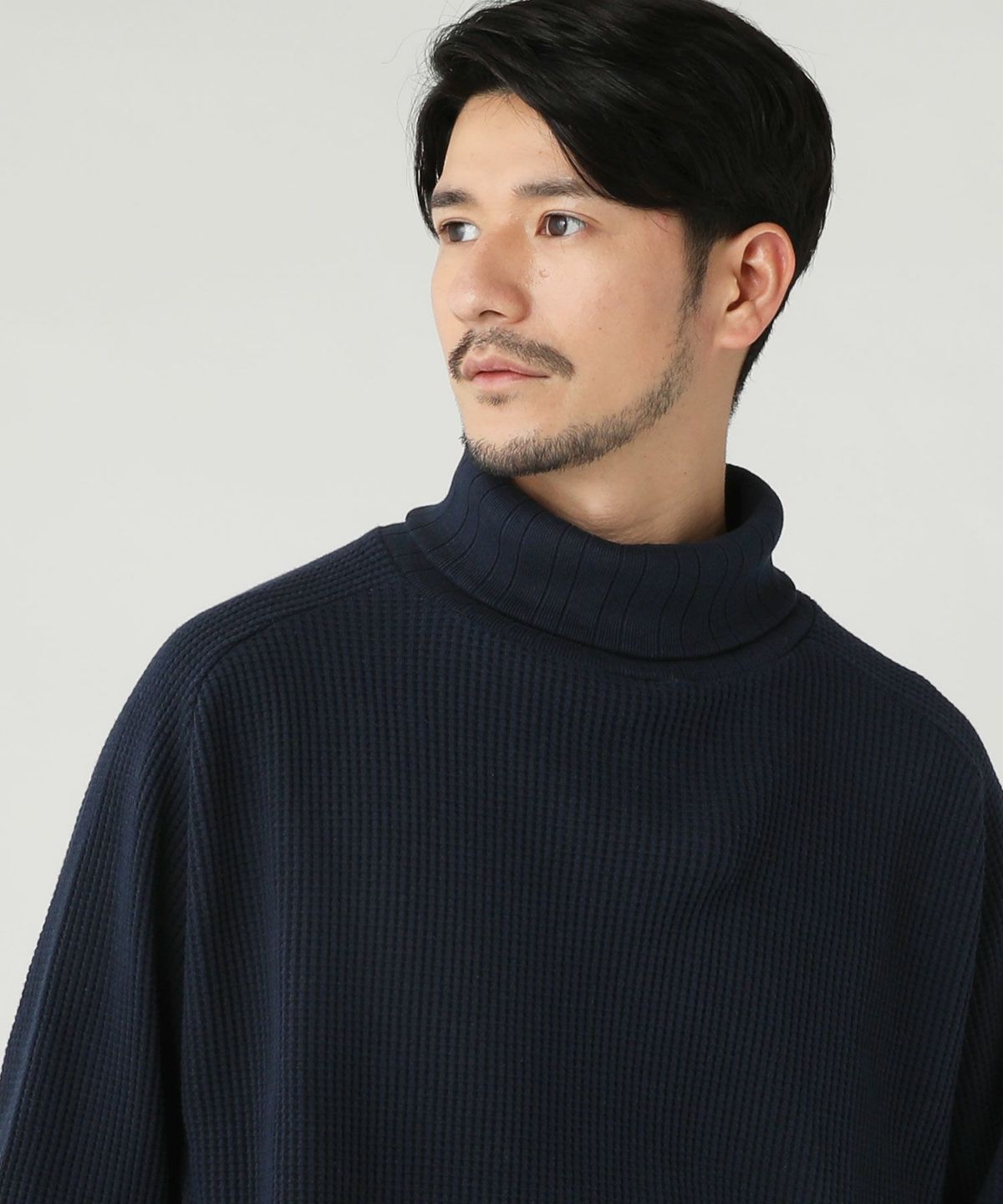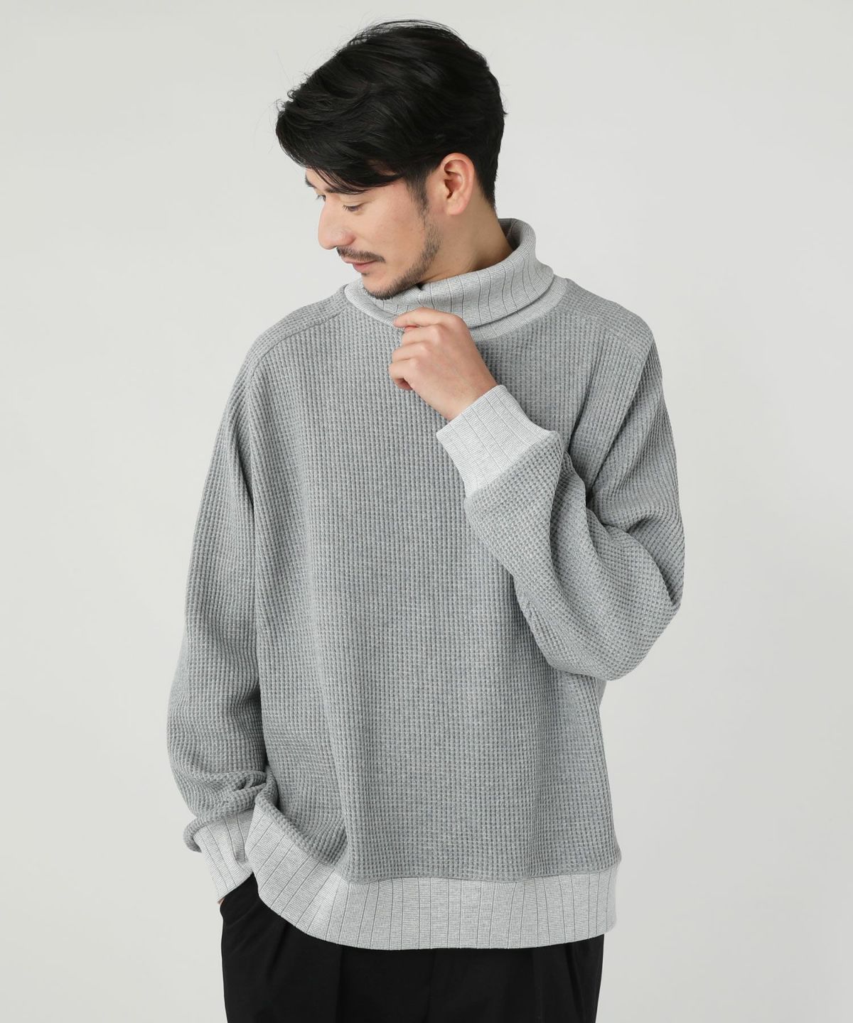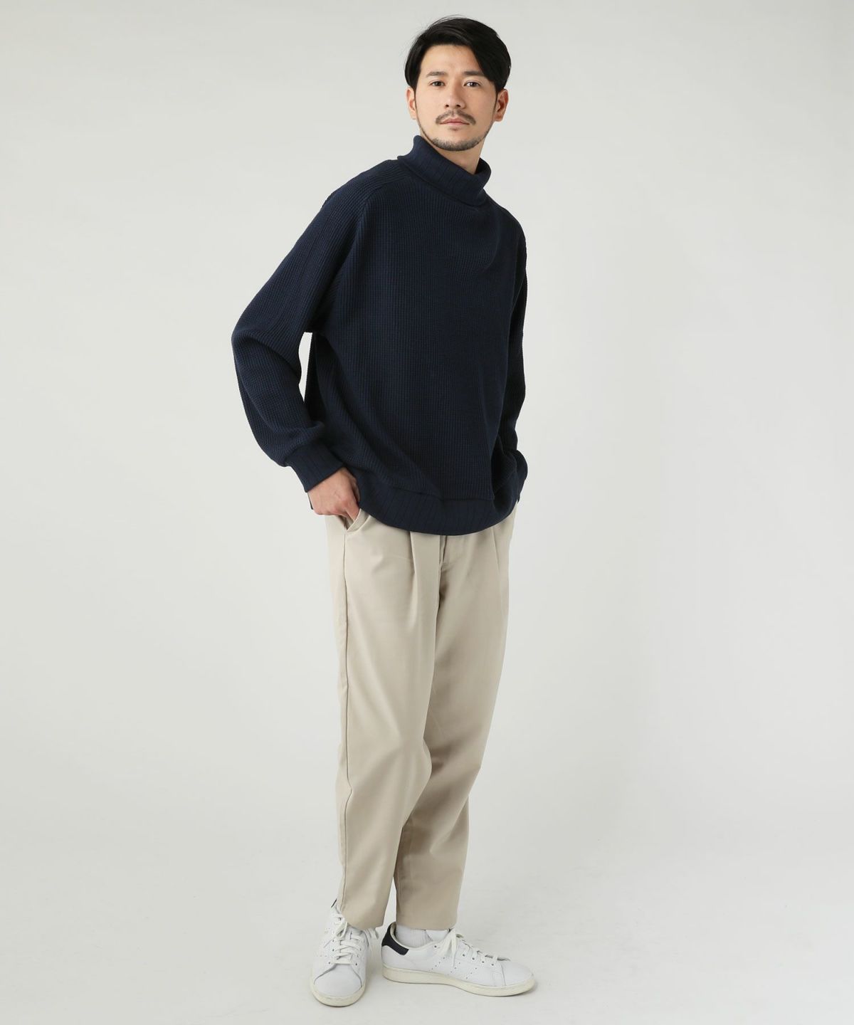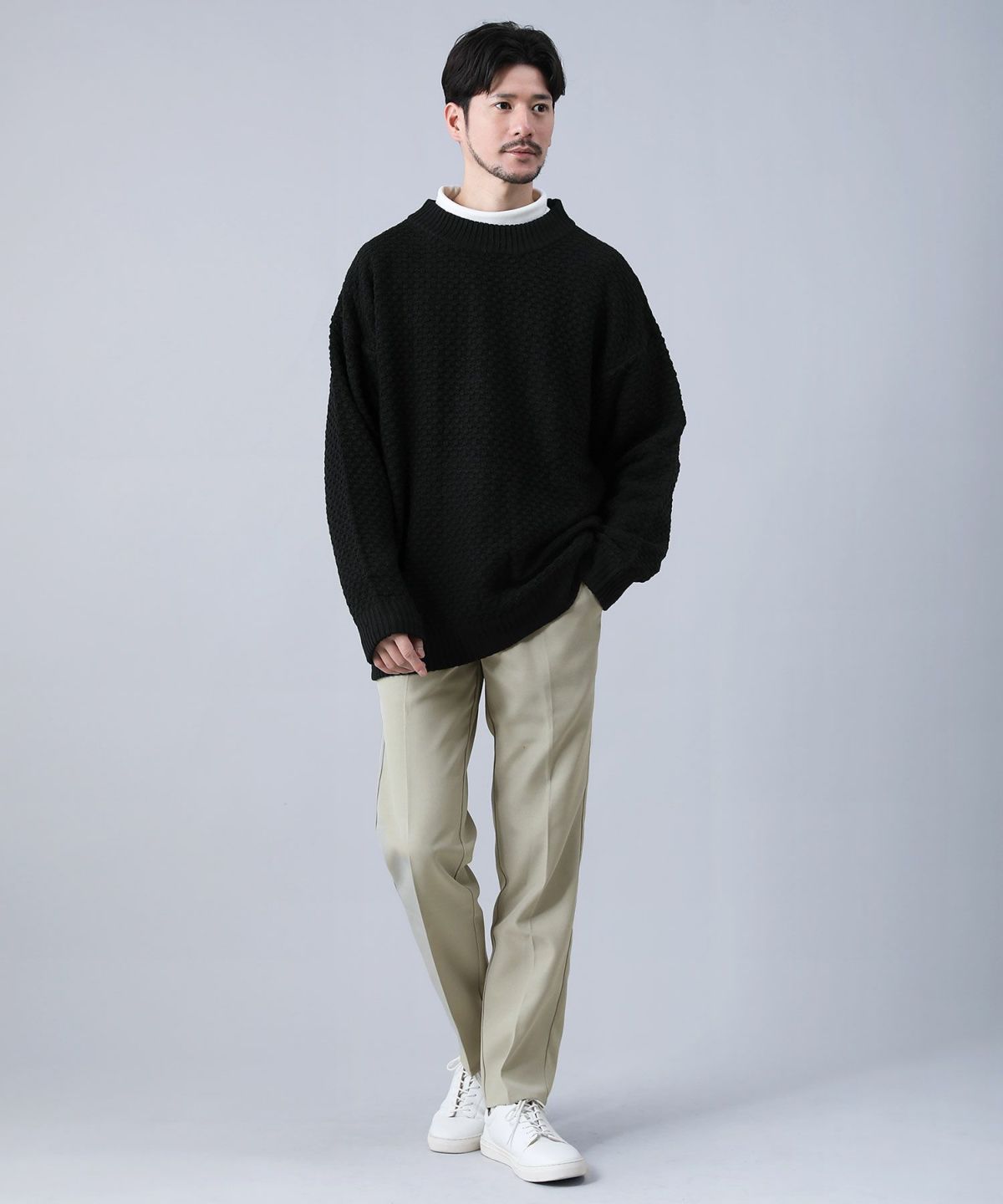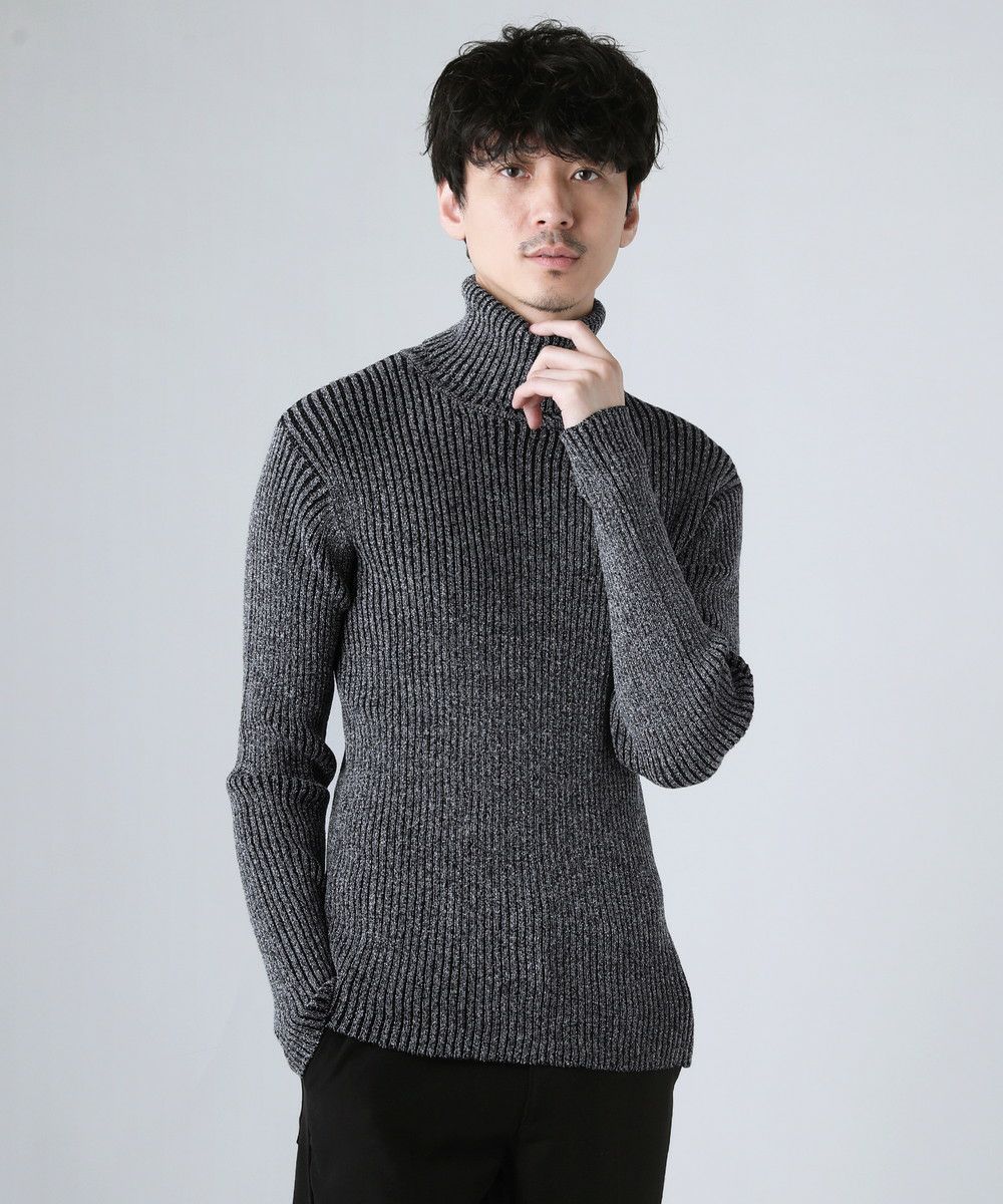 セミワイドシルエットケーブル編みタートルネックニット