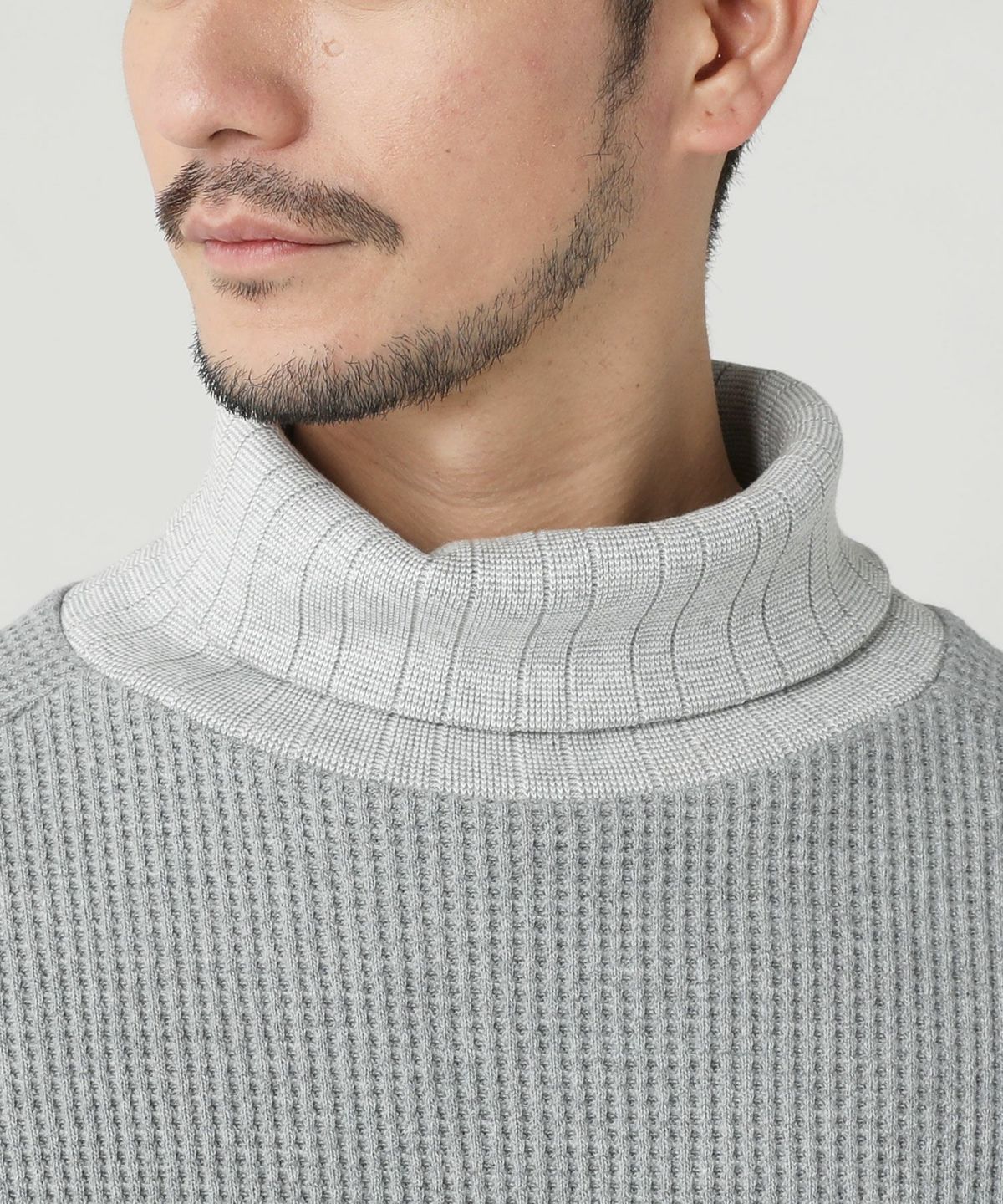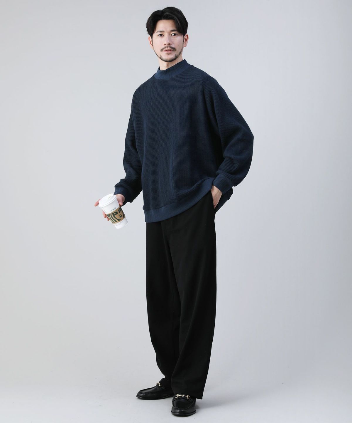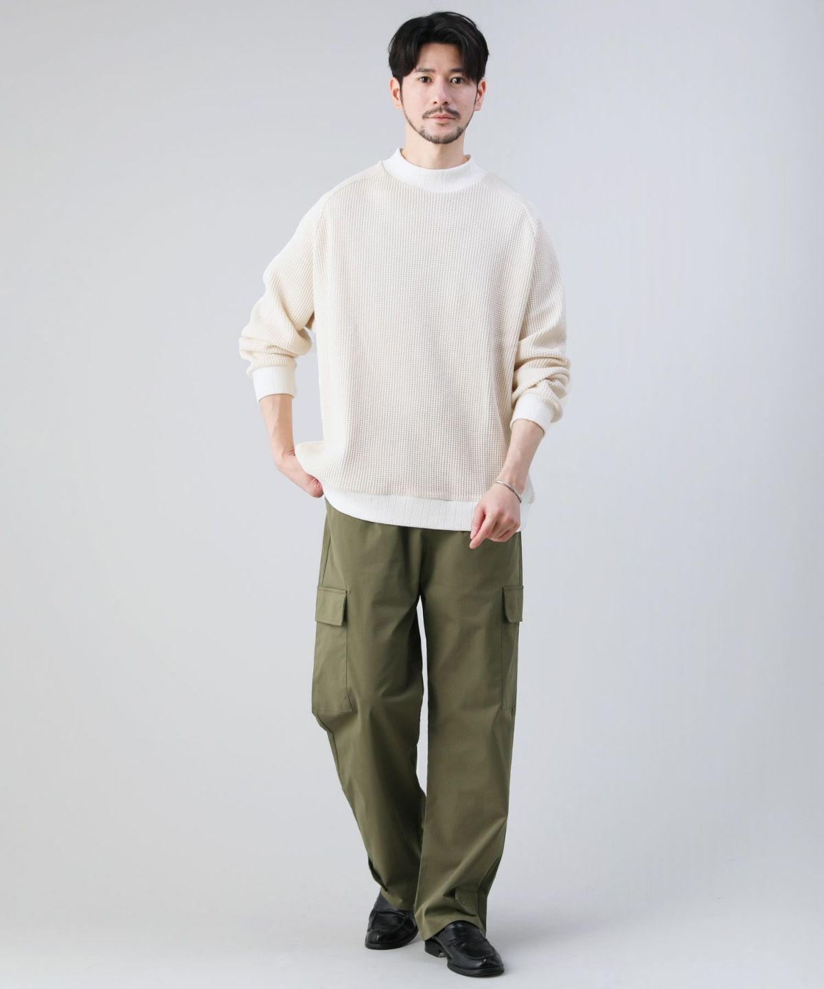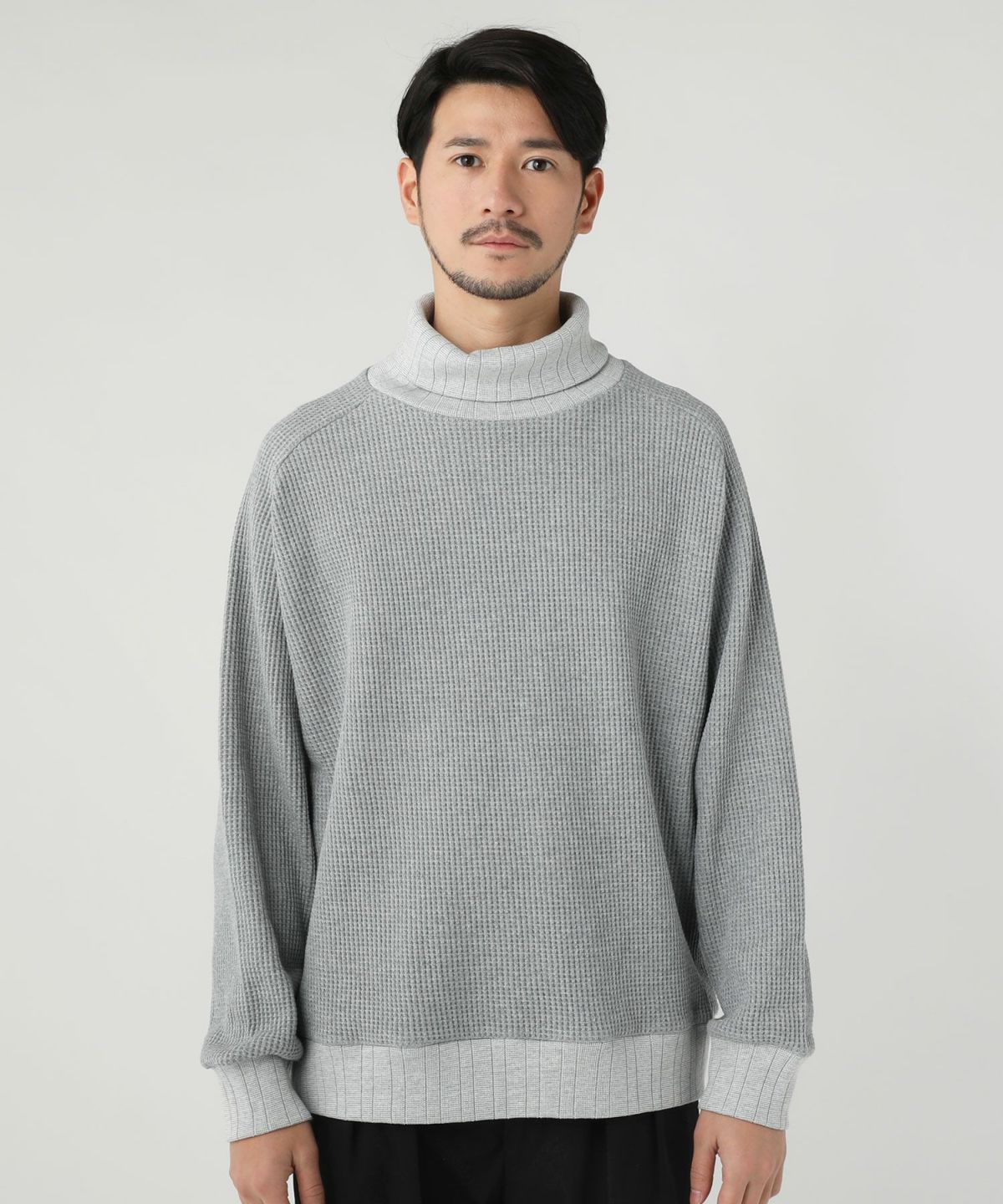 セミワイドシルエットケーブル編みタートルネックニット