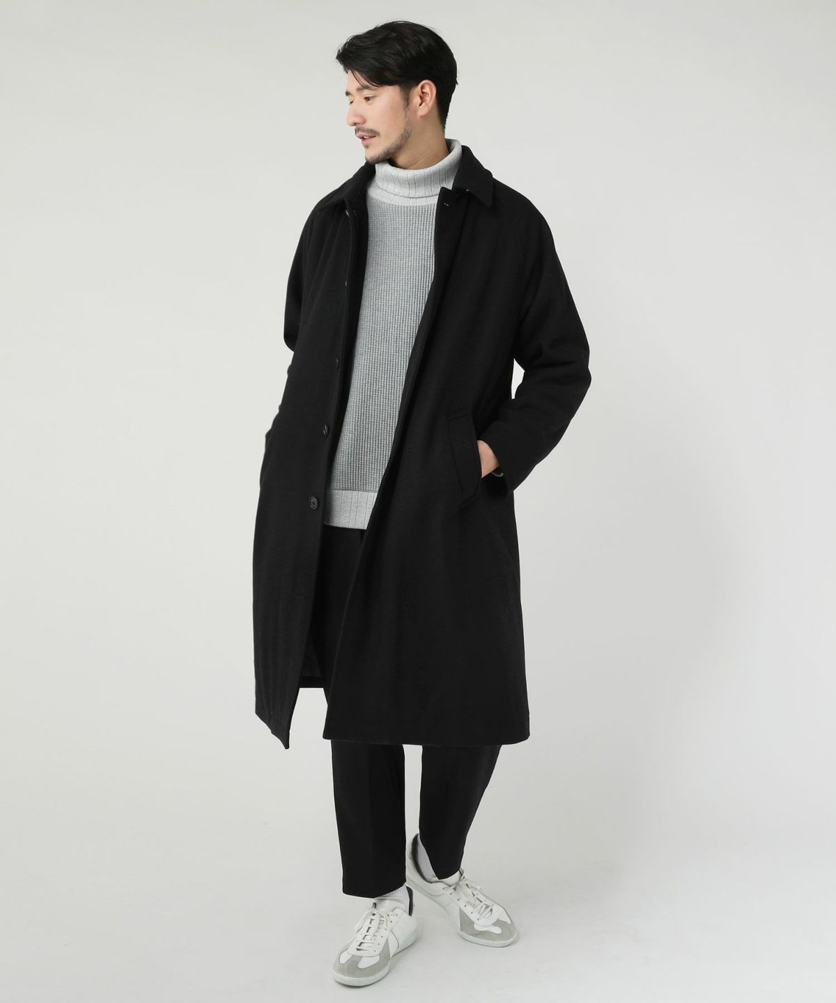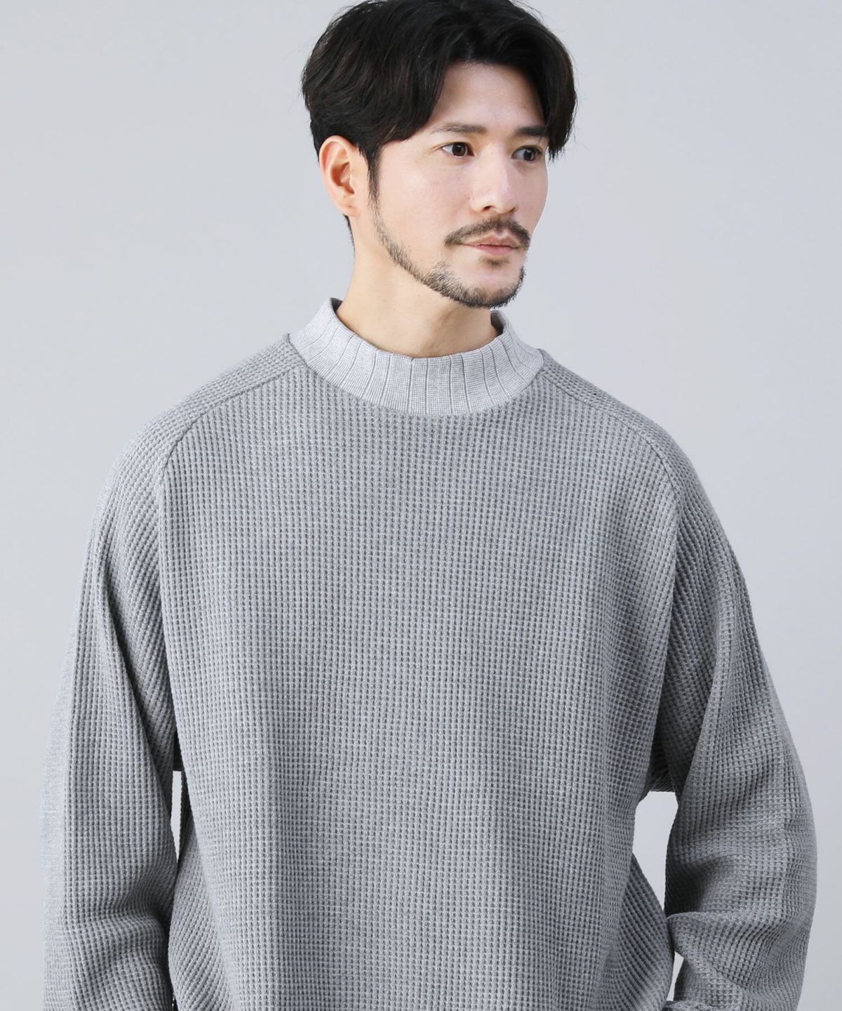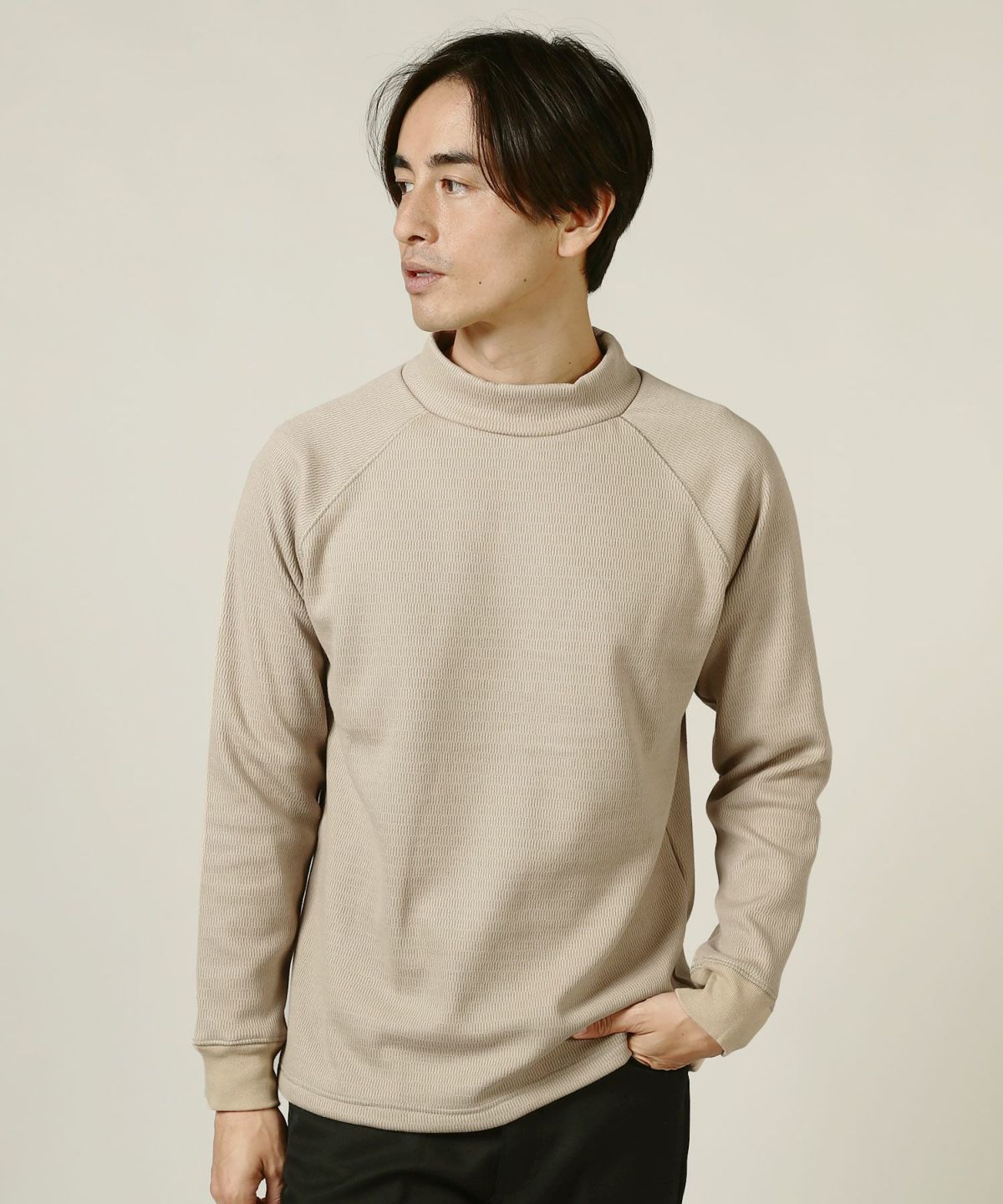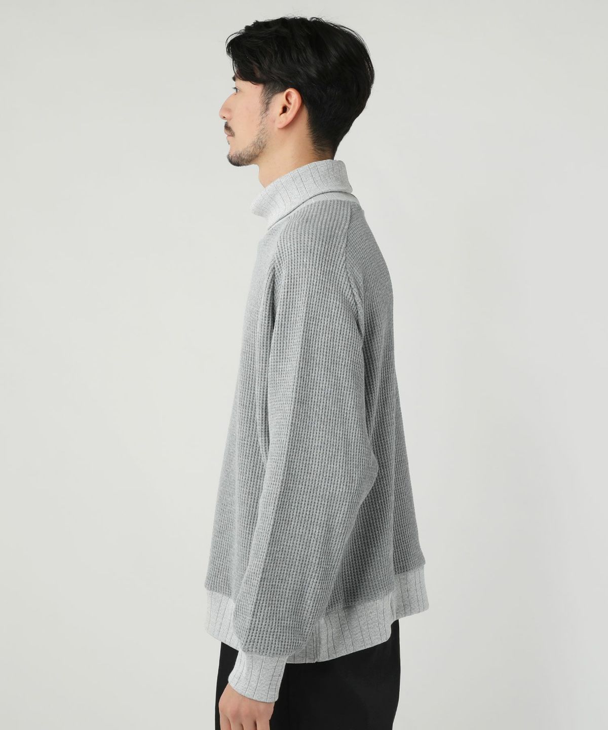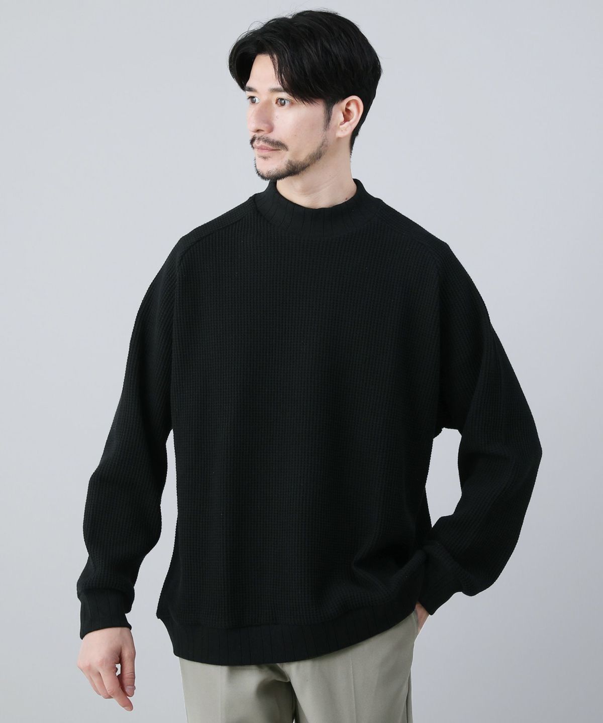 セミワイドシルエットケーブル編みタートルネックニット
