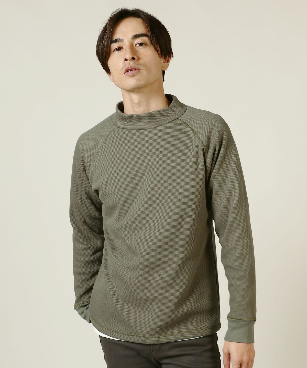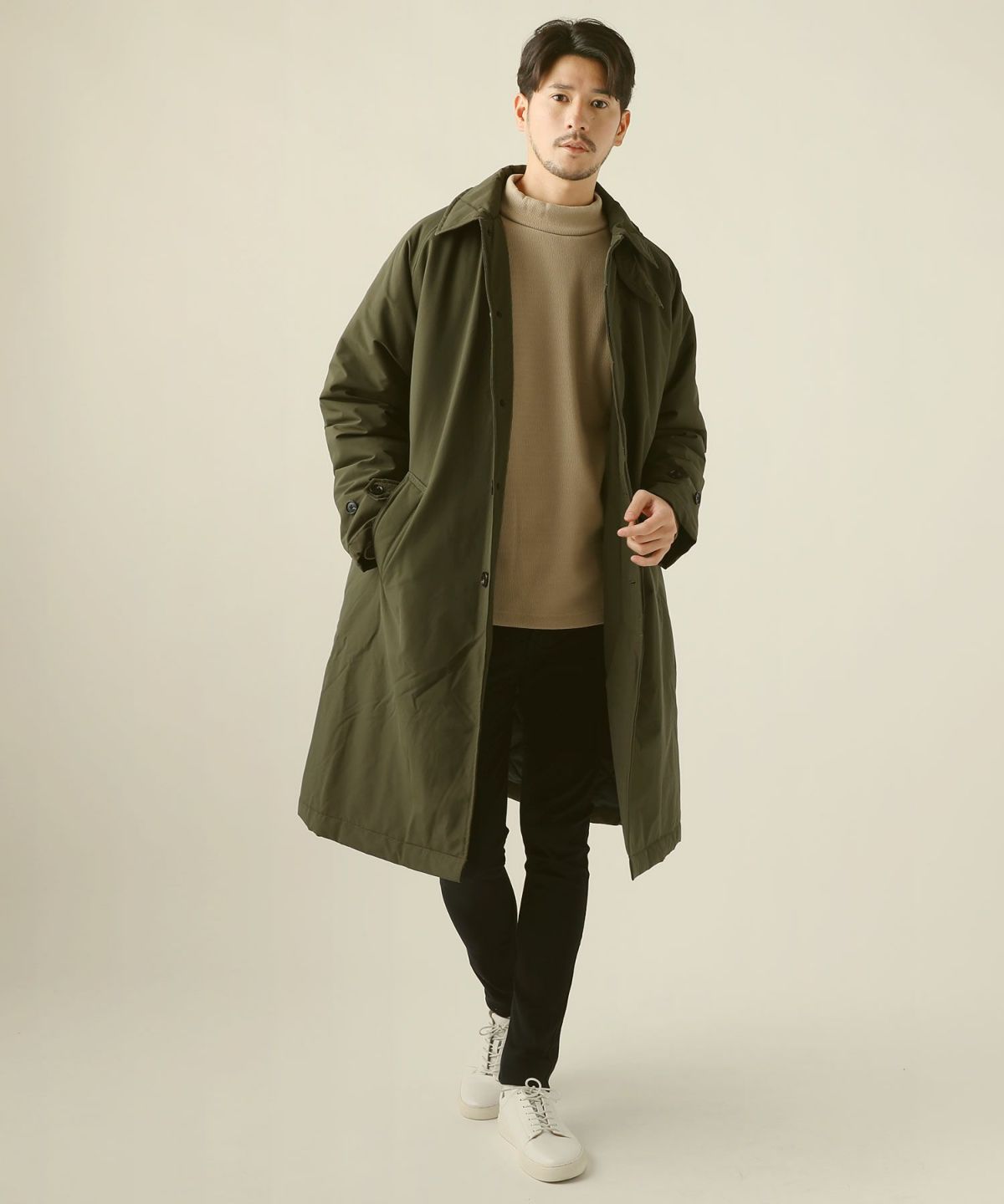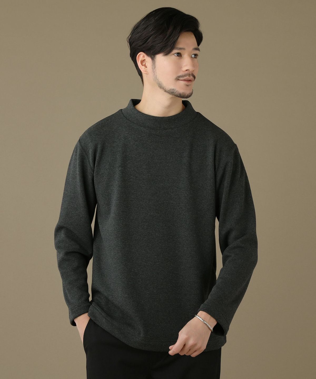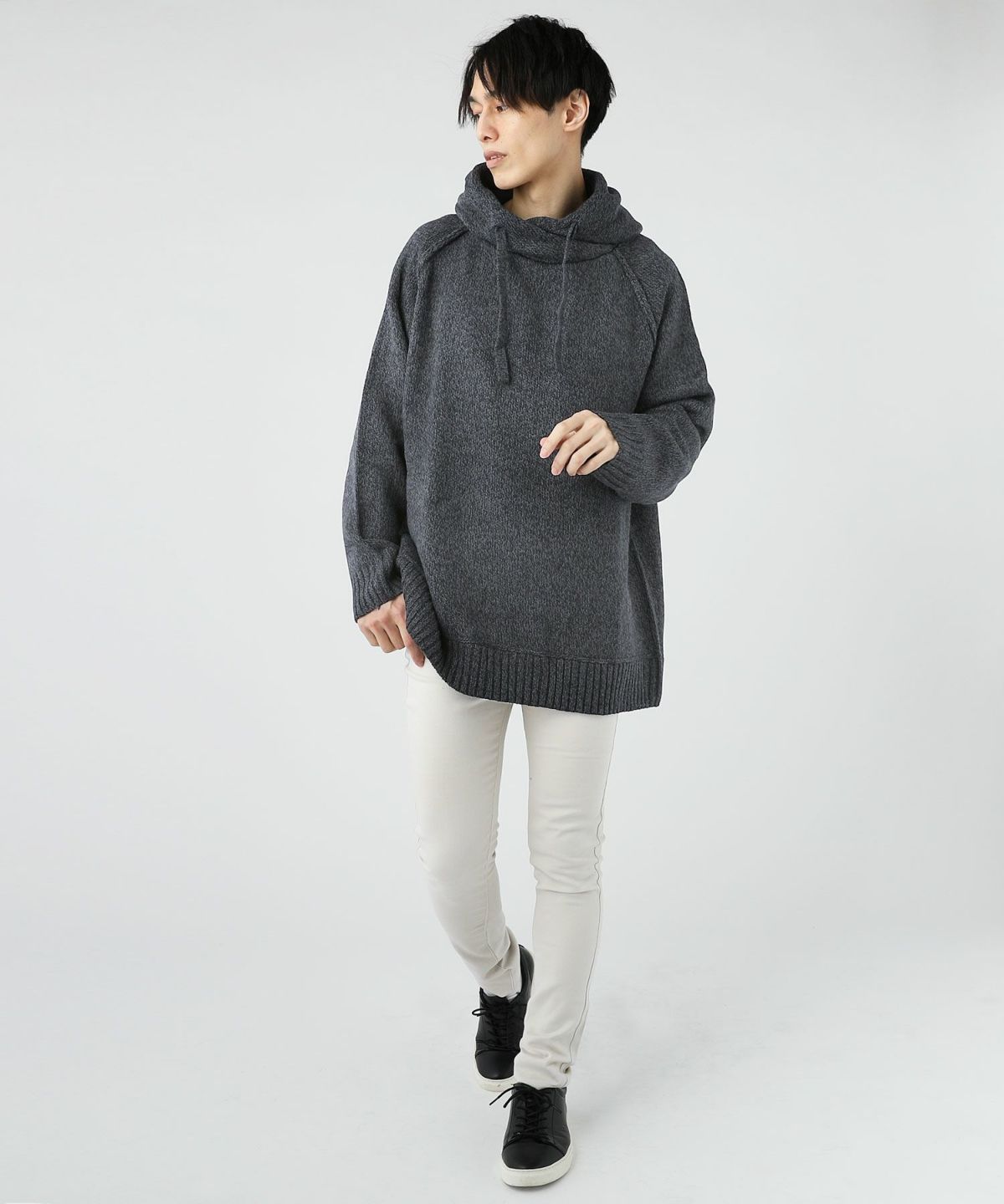 セミワイドシルエットケーブル編みタートルネックニット