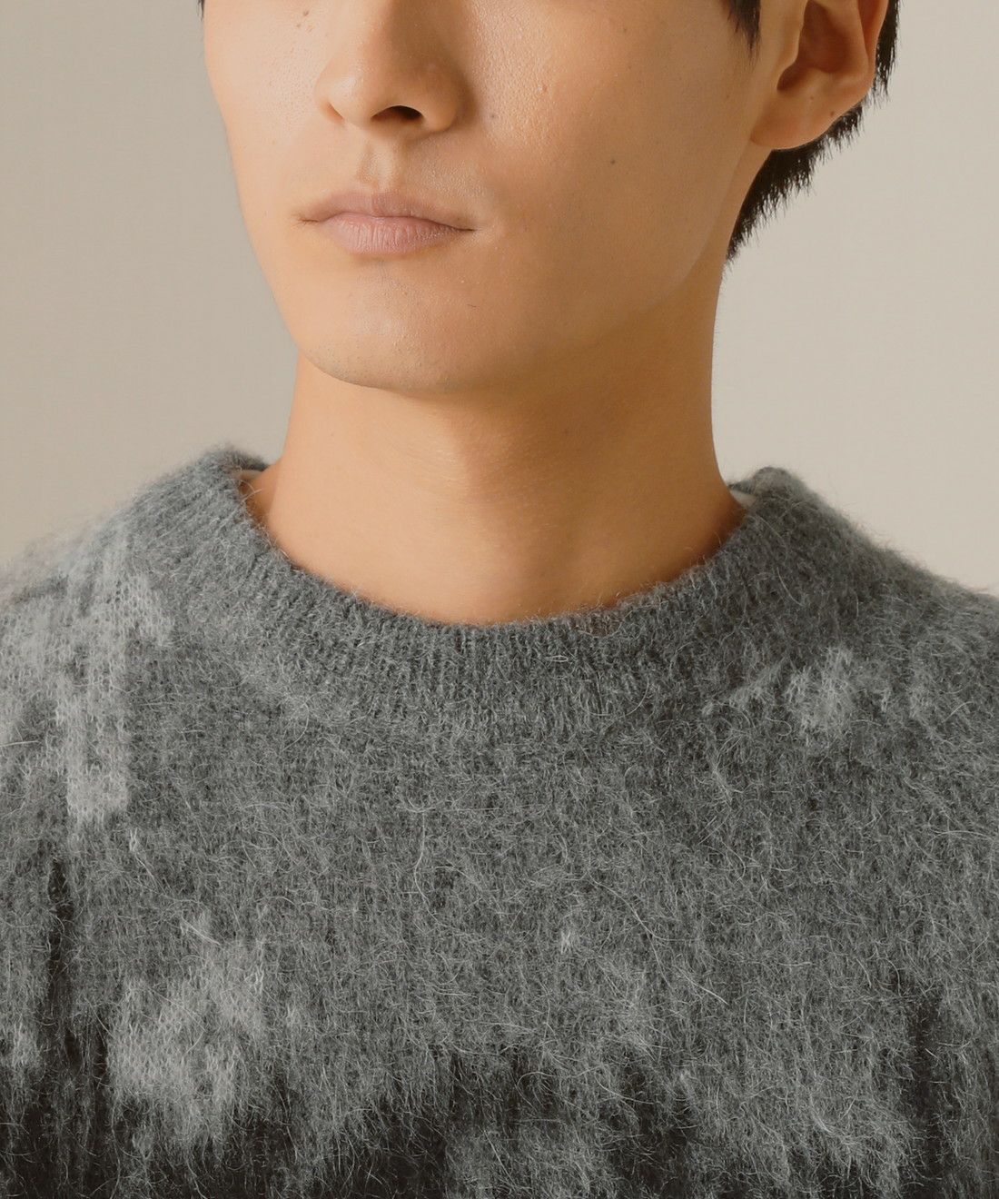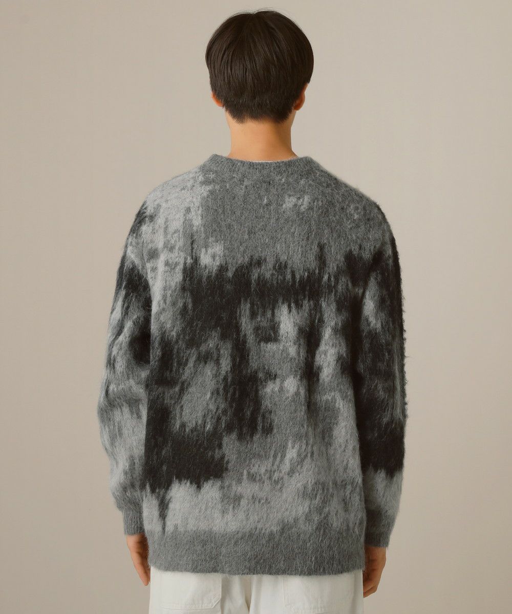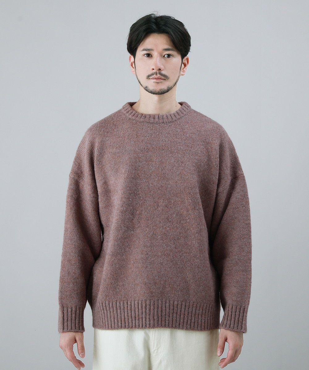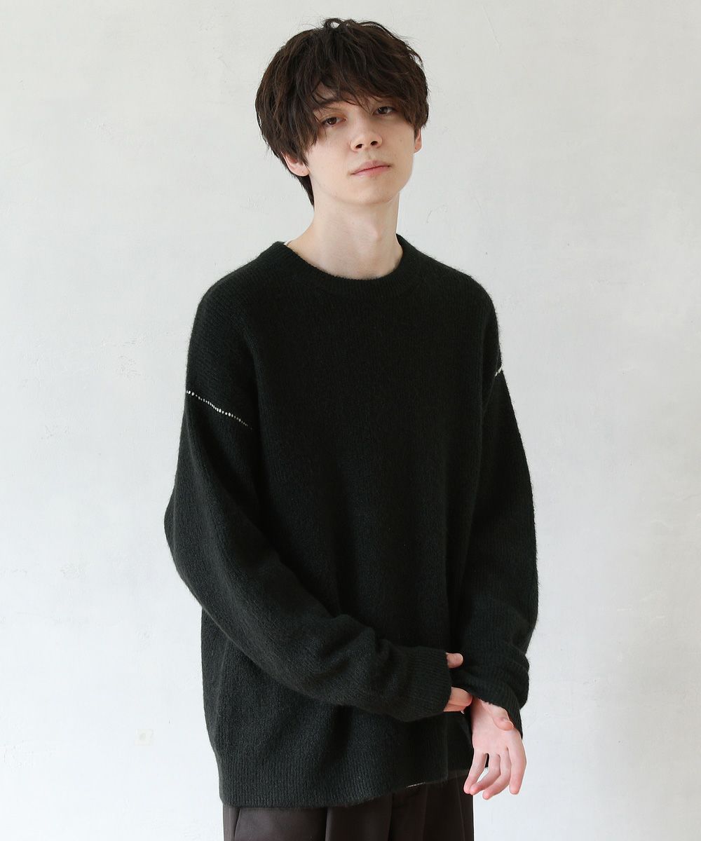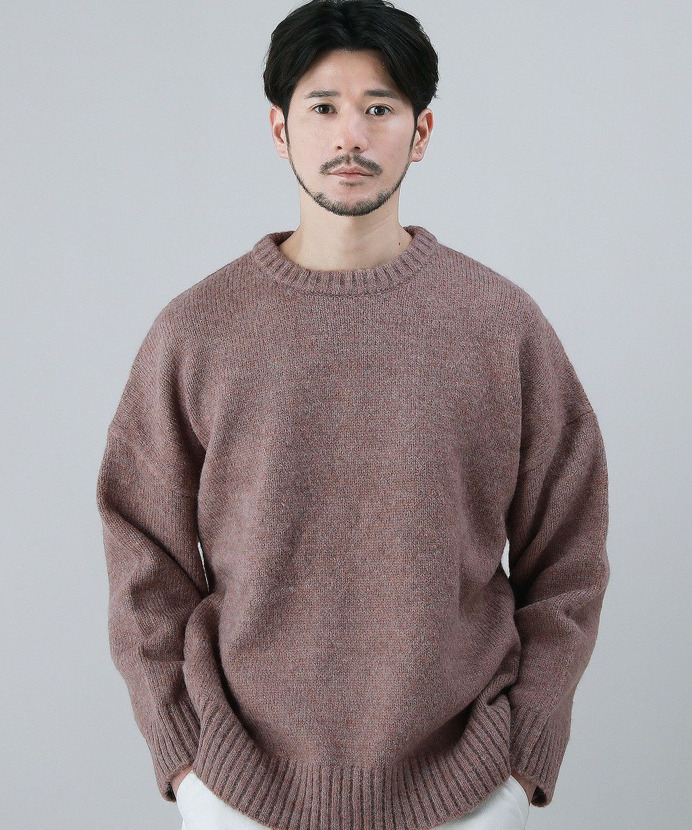 モヘアタッチ無地アクリルクルーネックニット