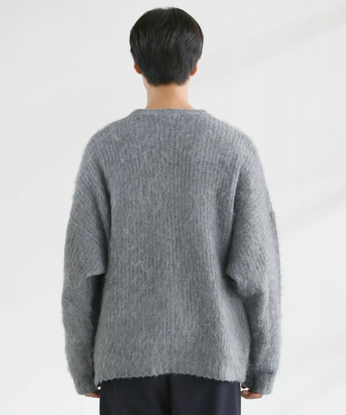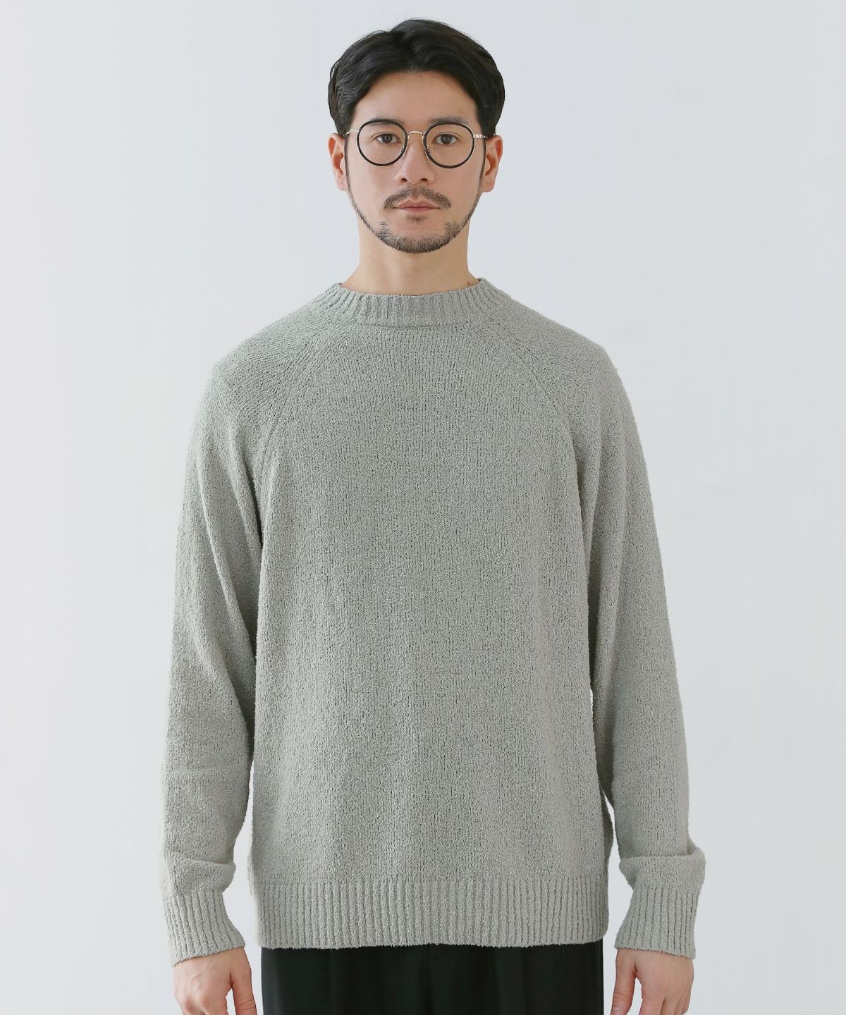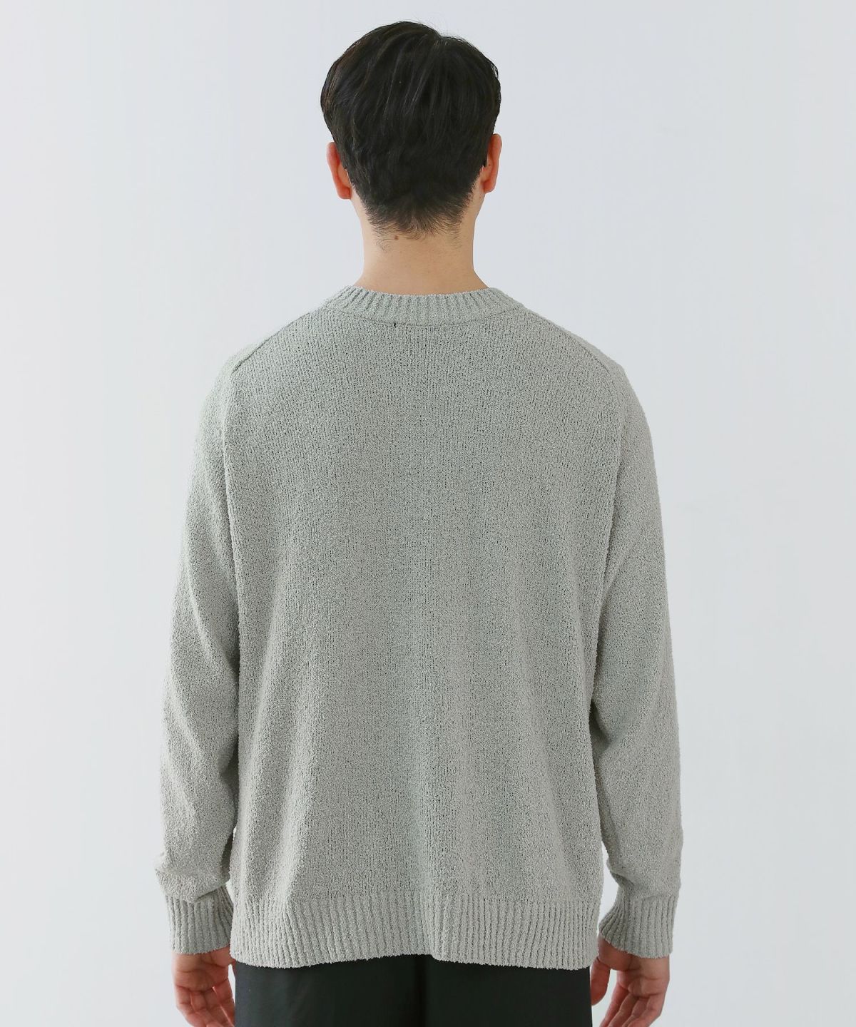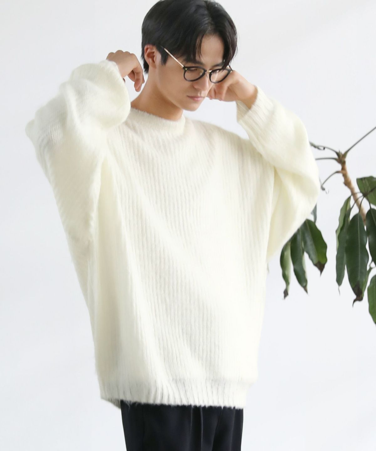 モヘアタッチ無地アクリルクルーネックニット