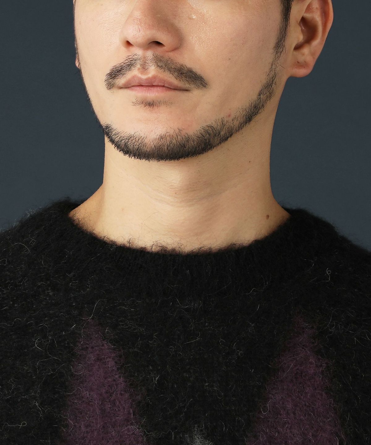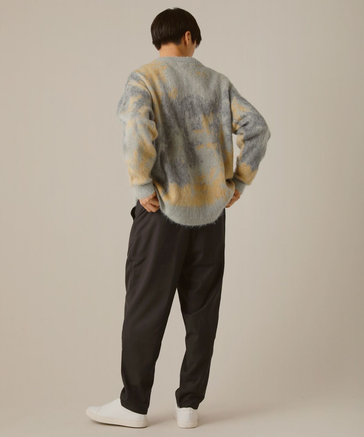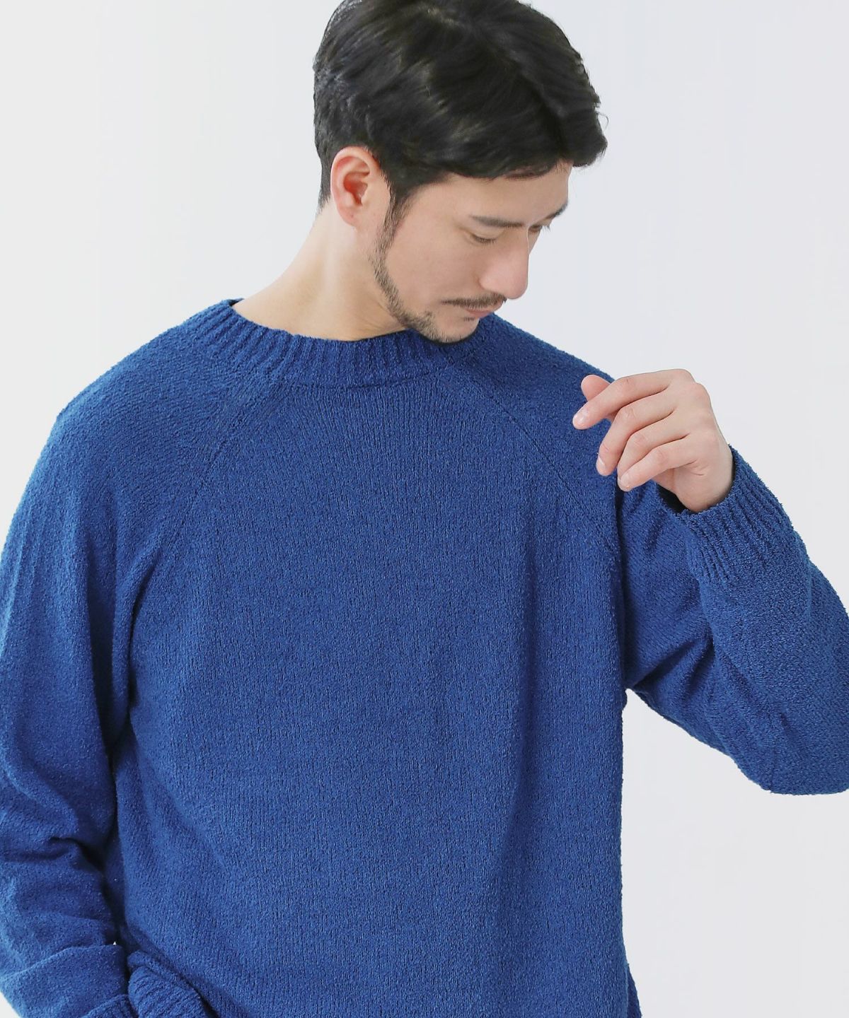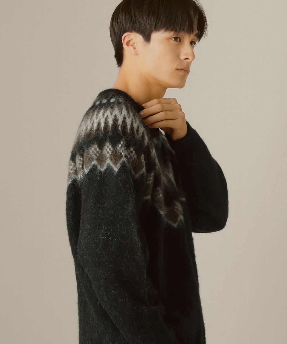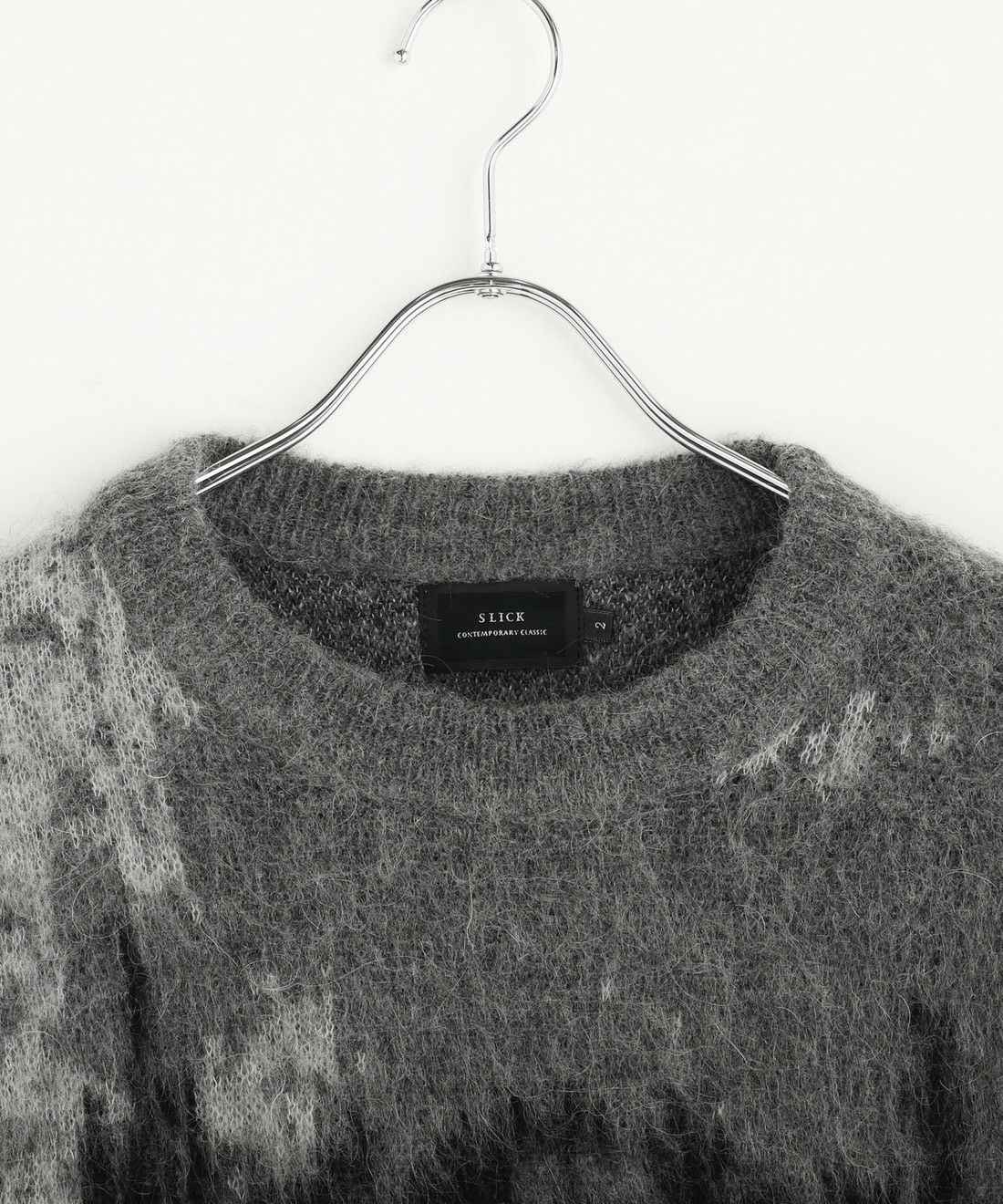 モヘアタッチ無地アクリルクルーネックニット