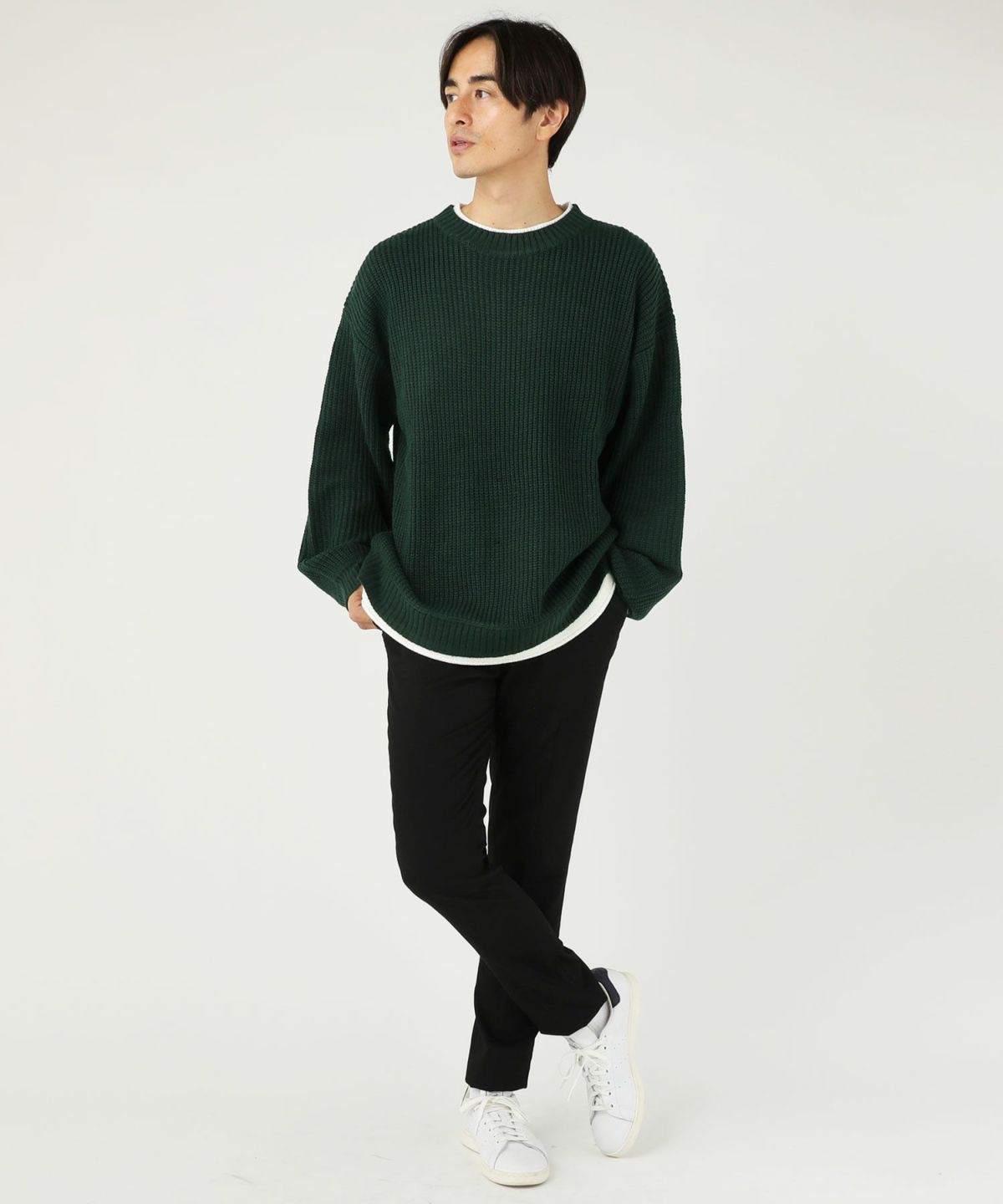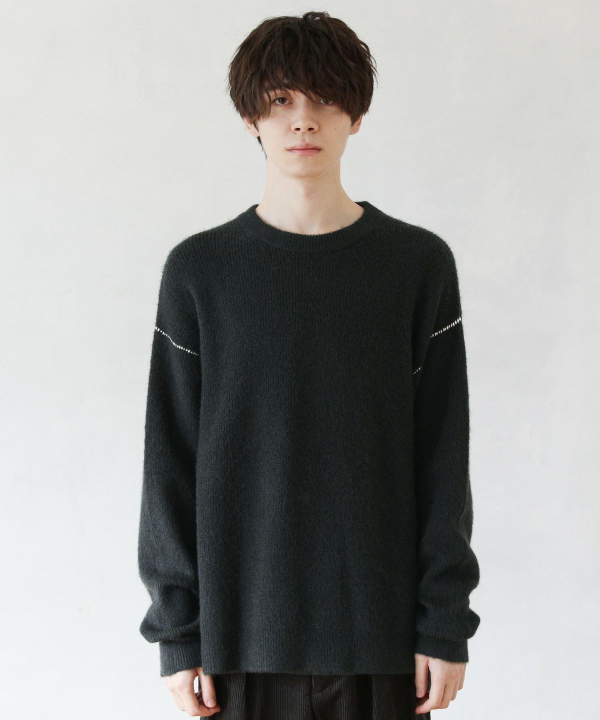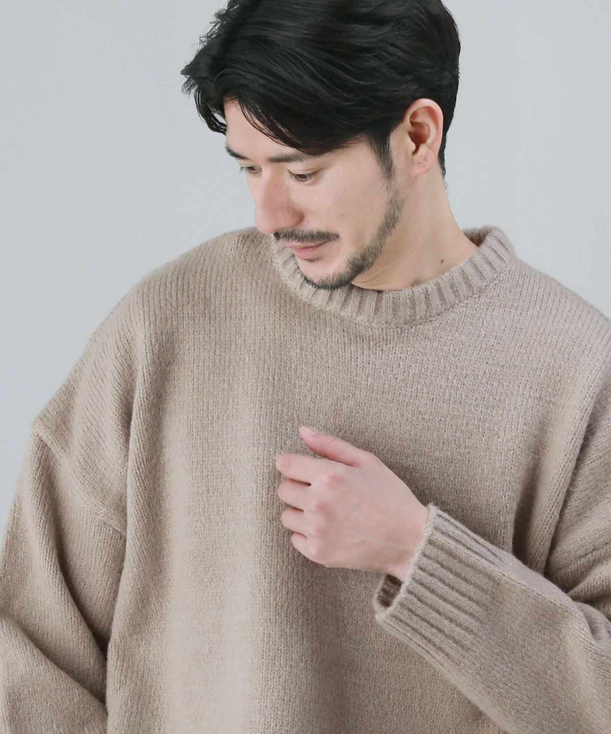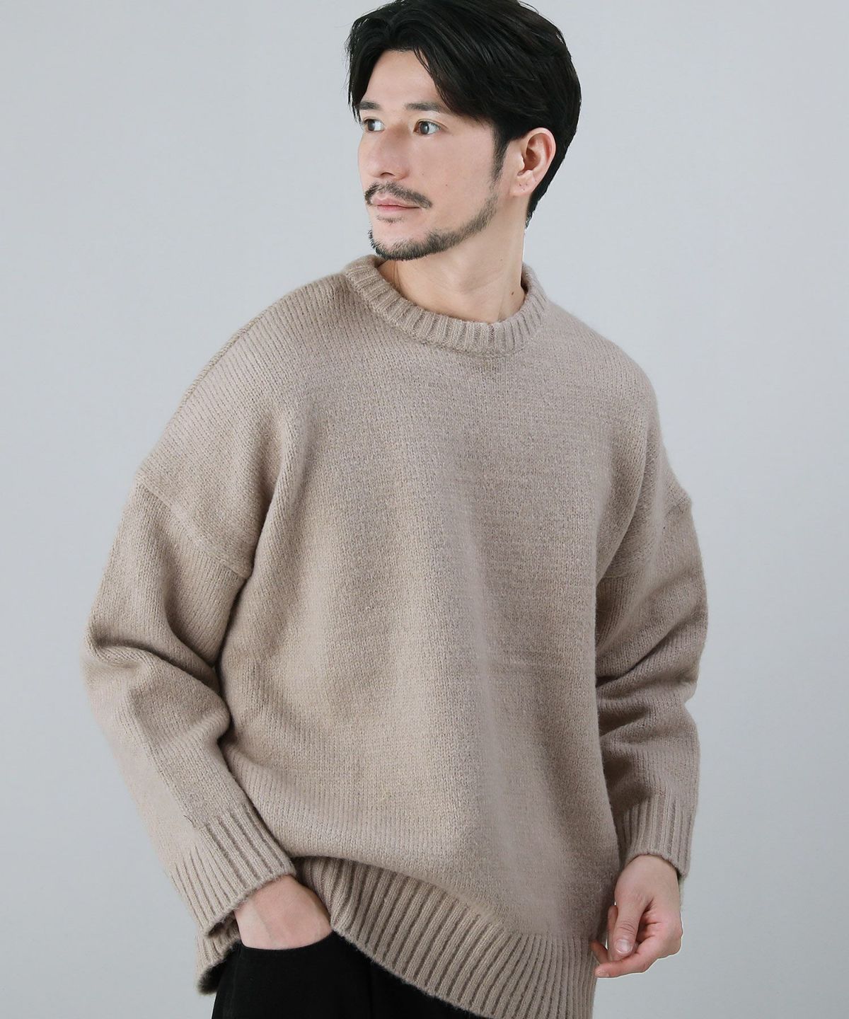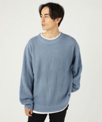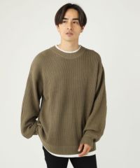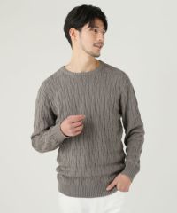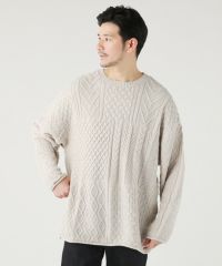 セミワイドシルエットケーブル編みクルーネックニット