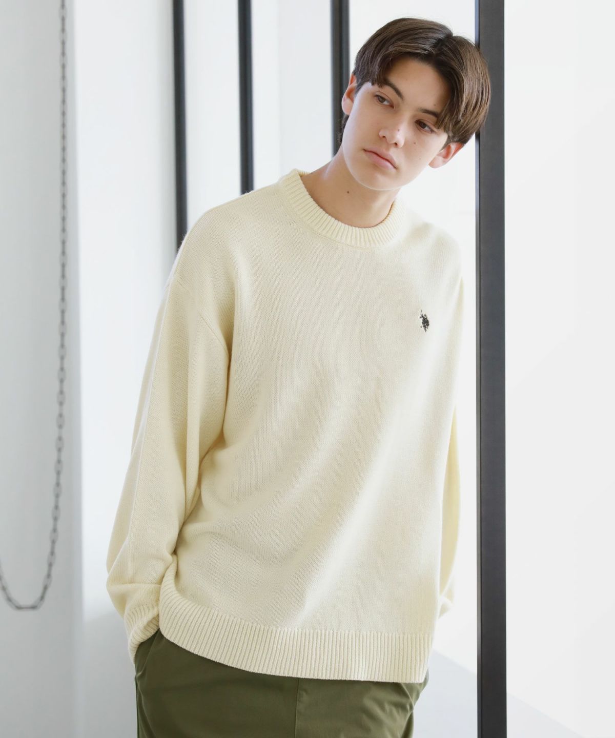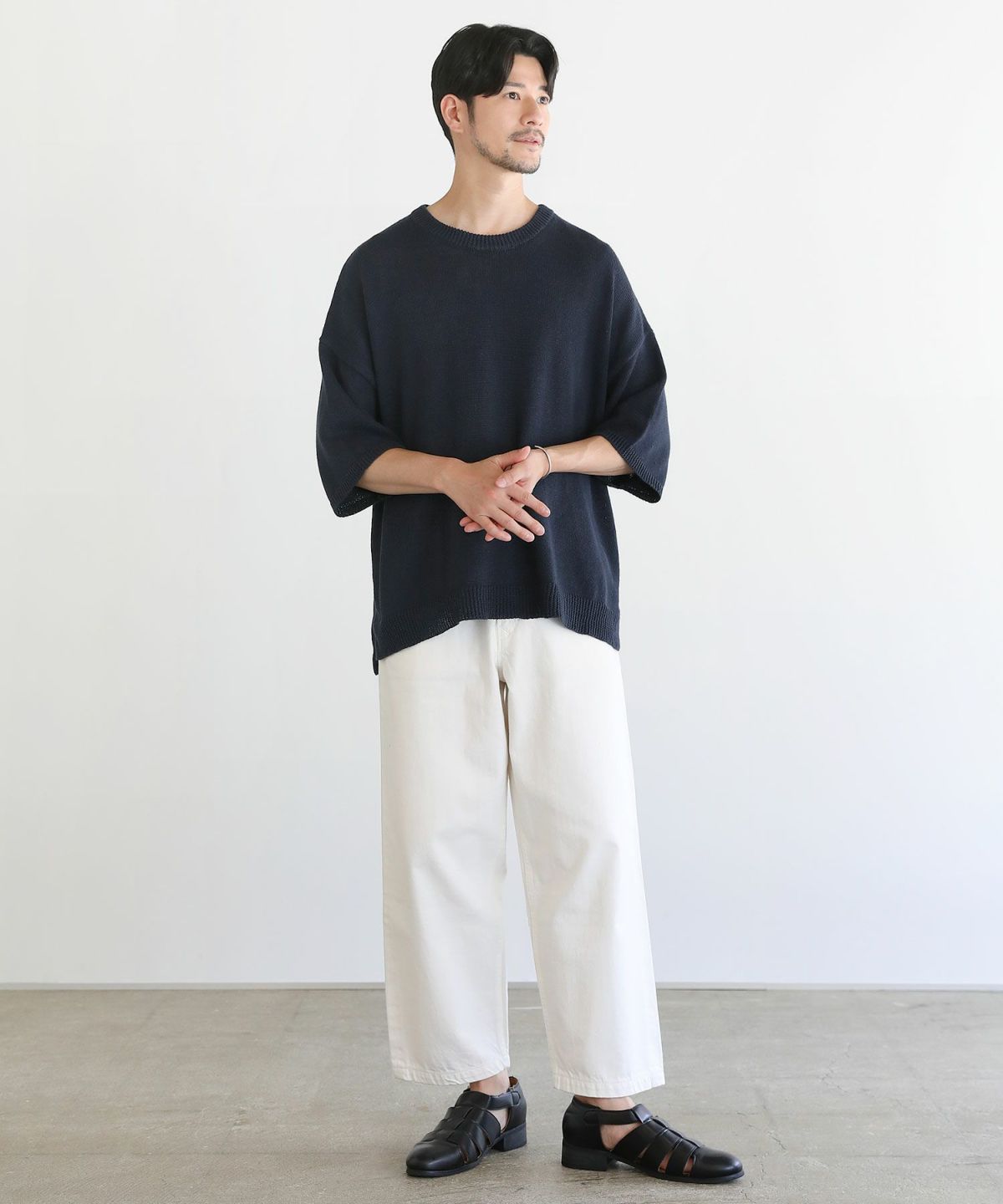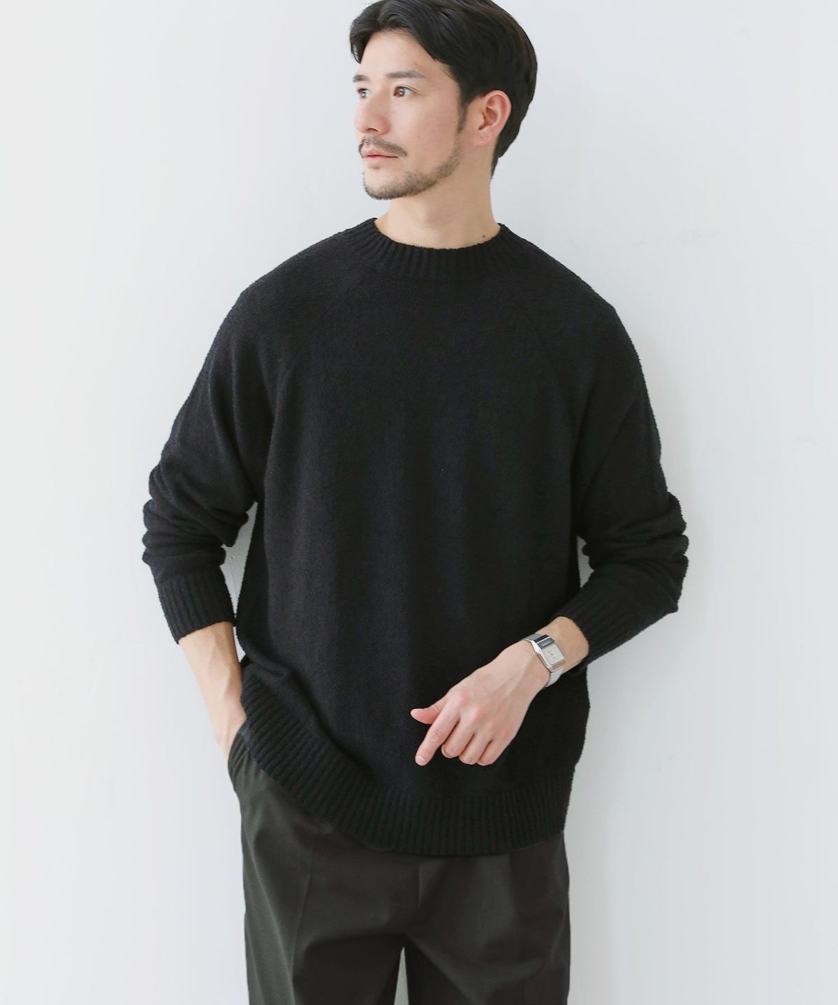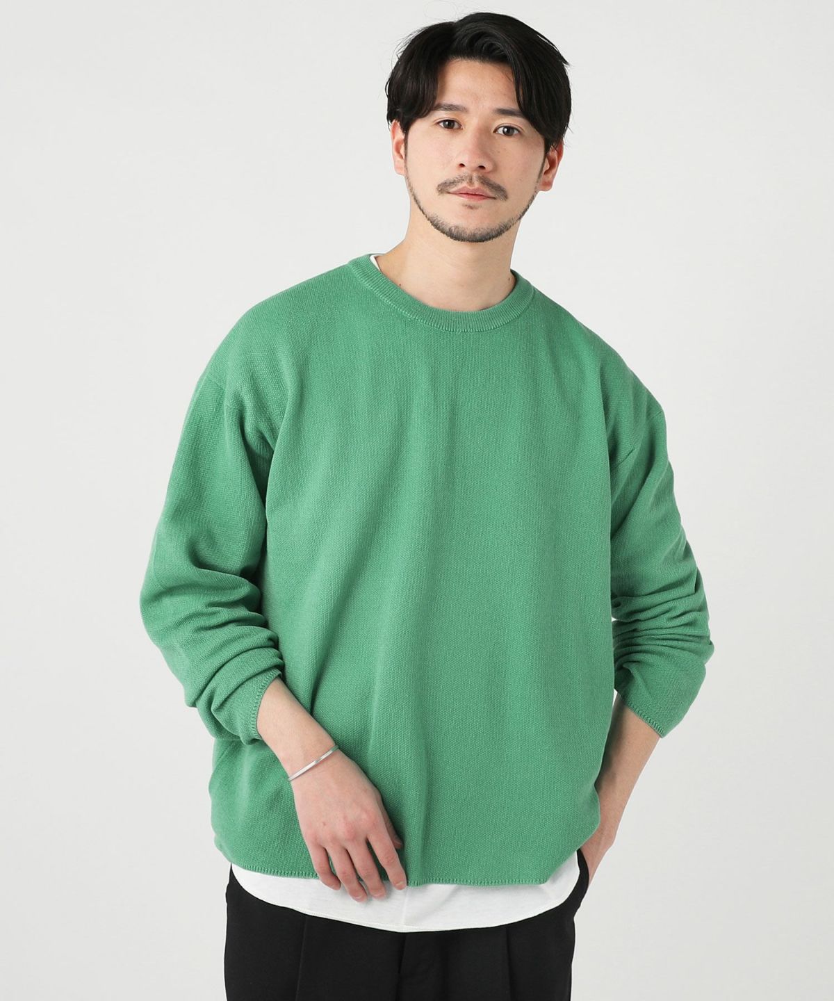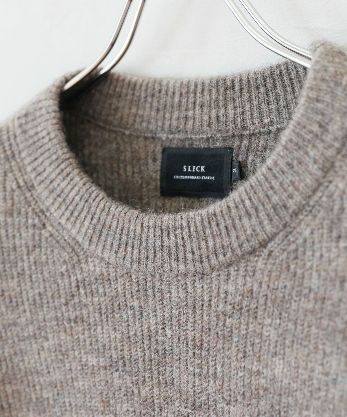 セミワイドシルエットケーブル編みクルーネックニット