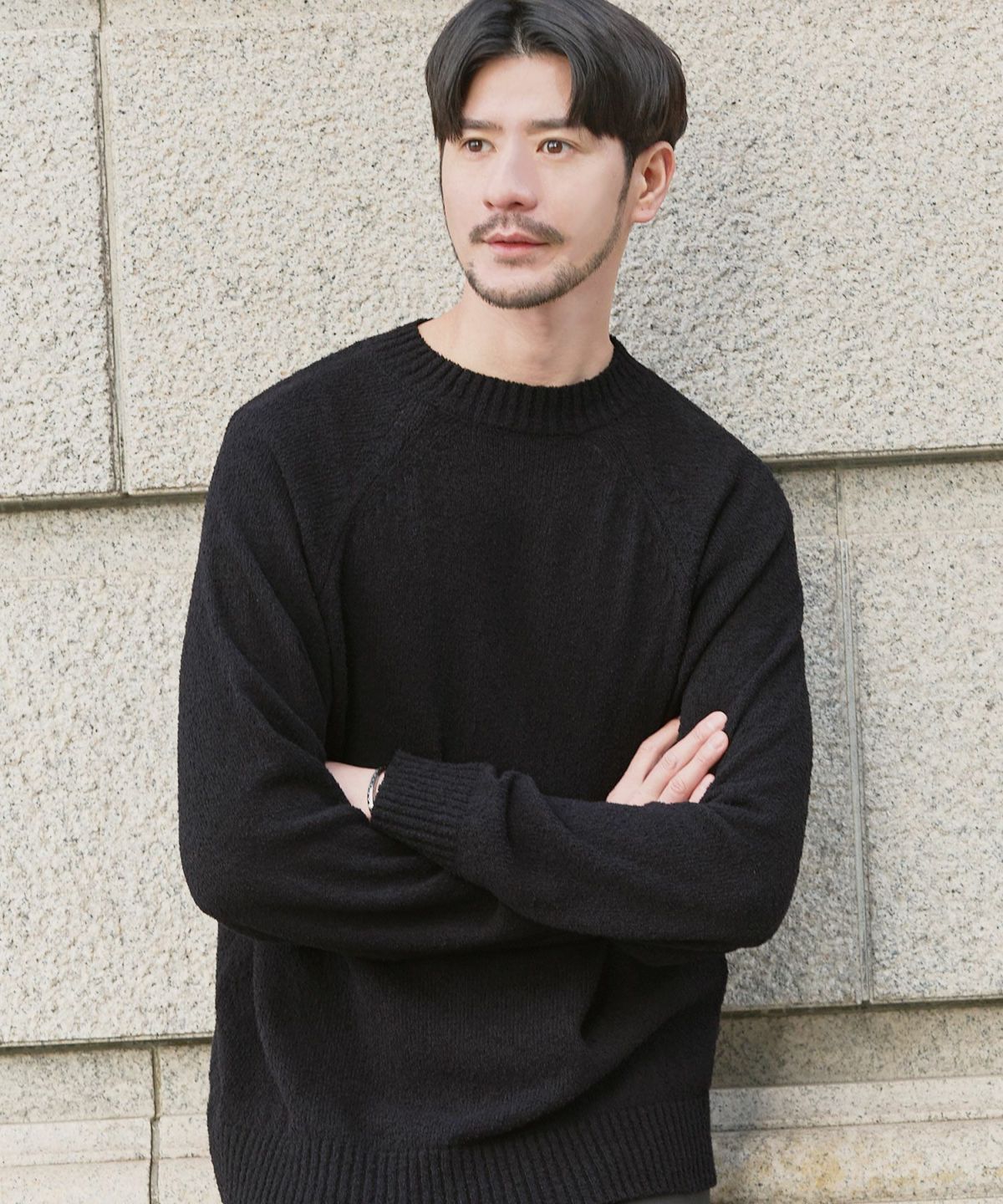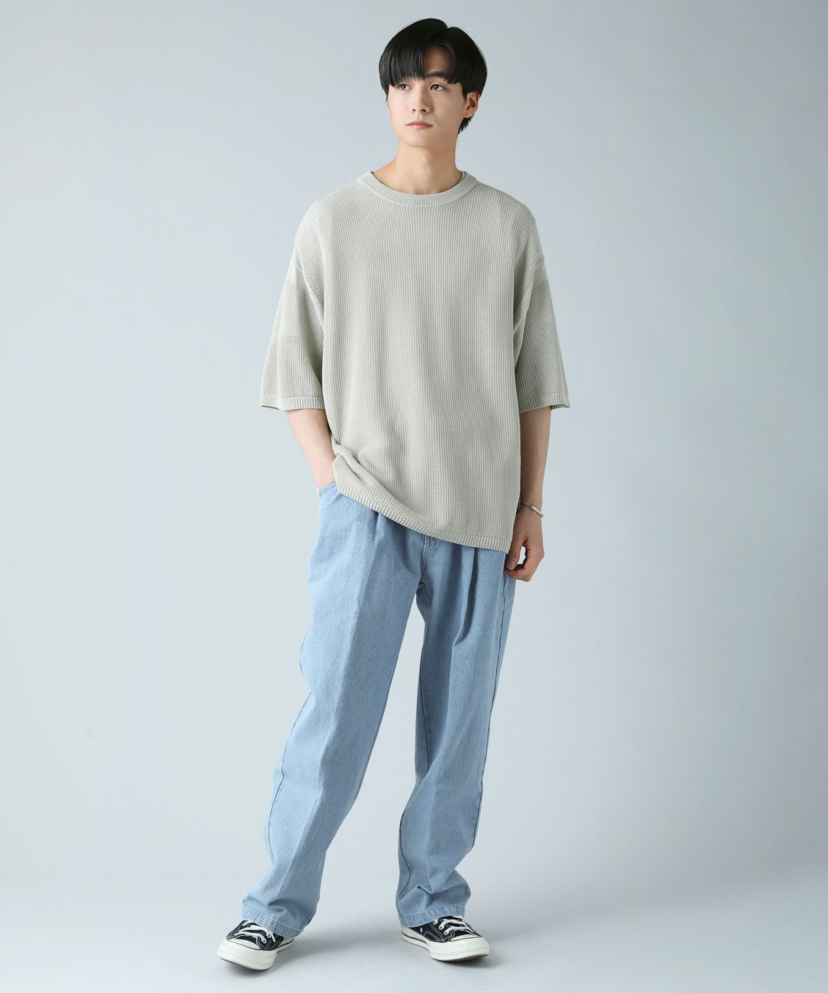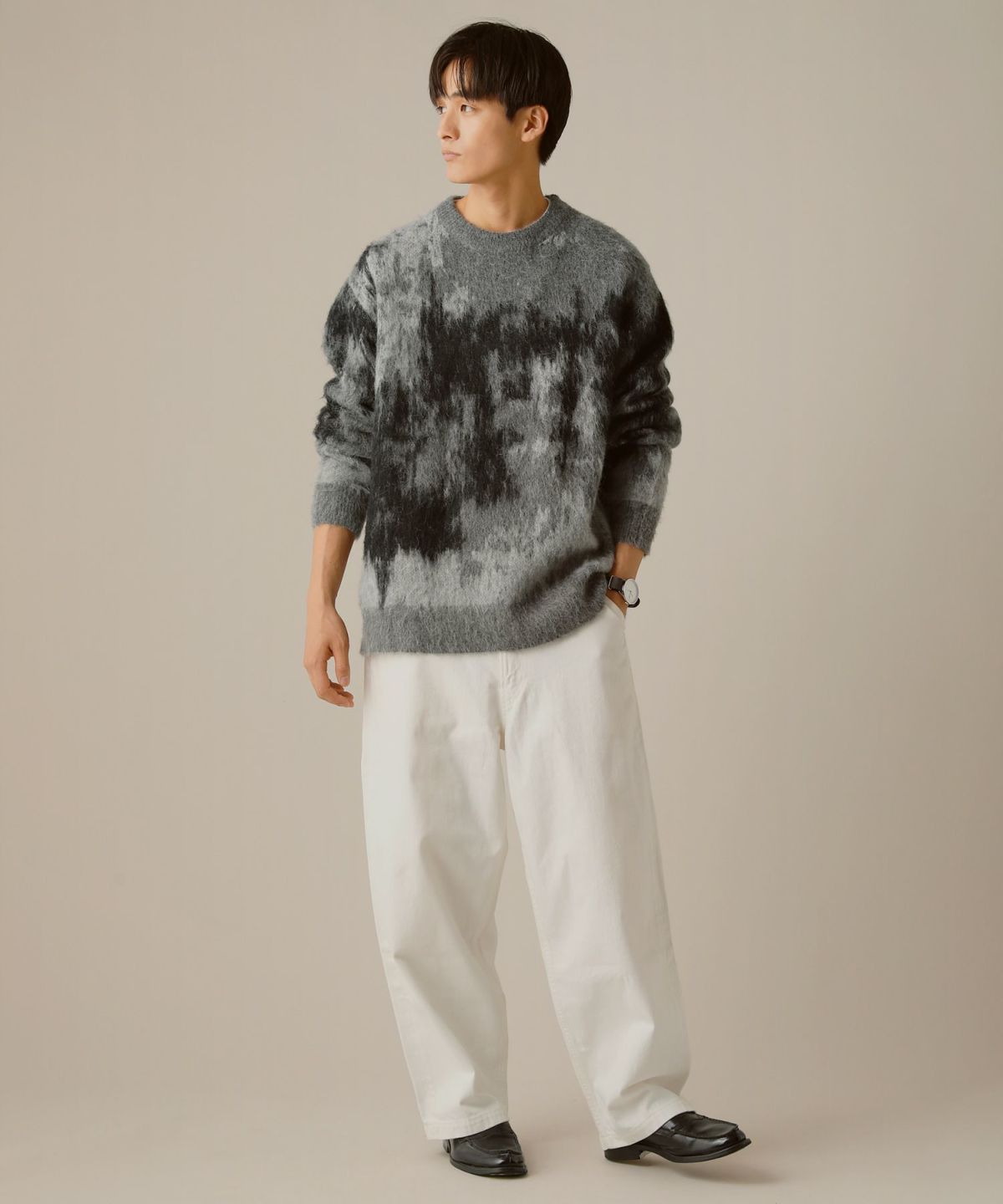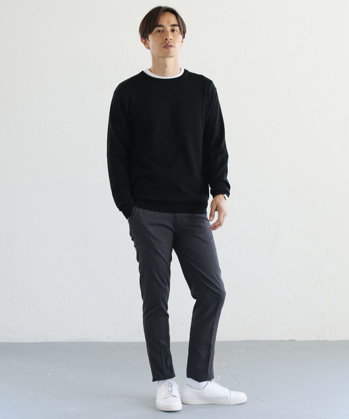 セミワイドシルエットケーブル編みクルーネックニット