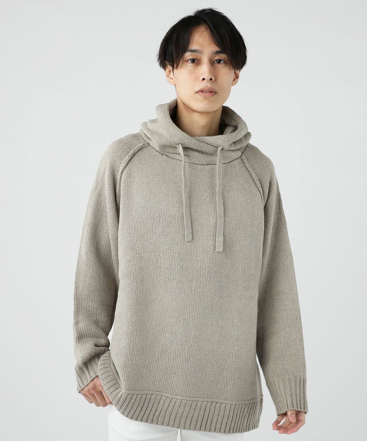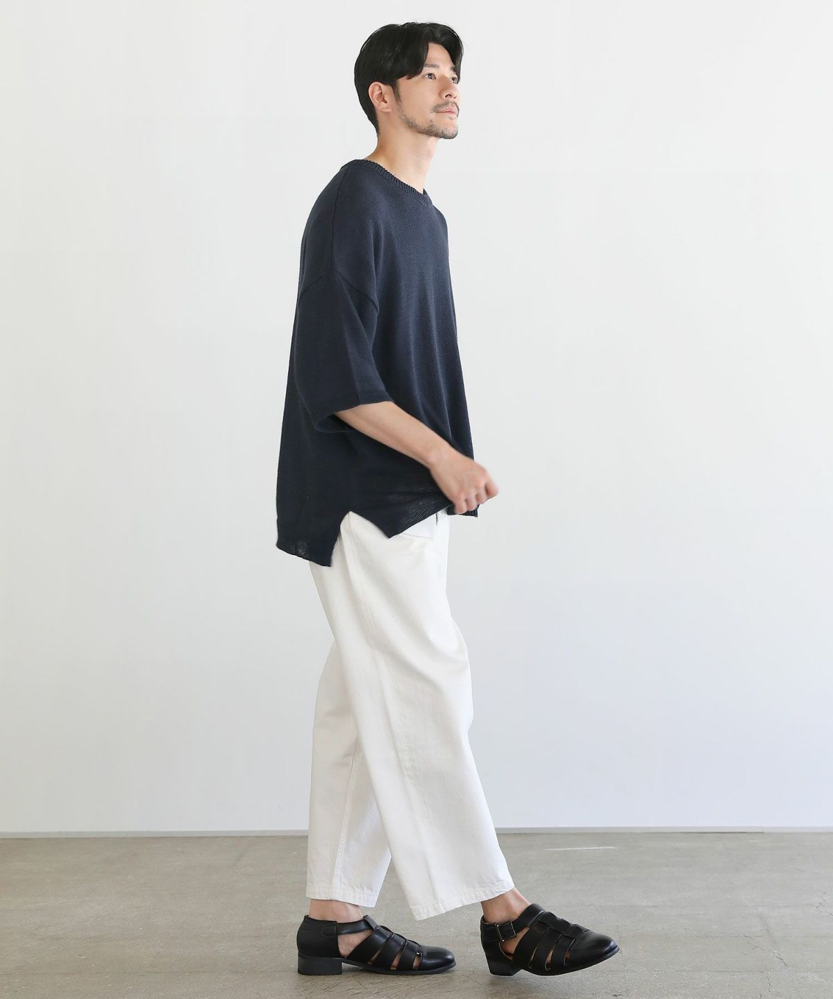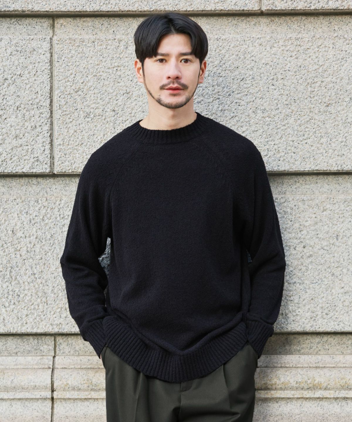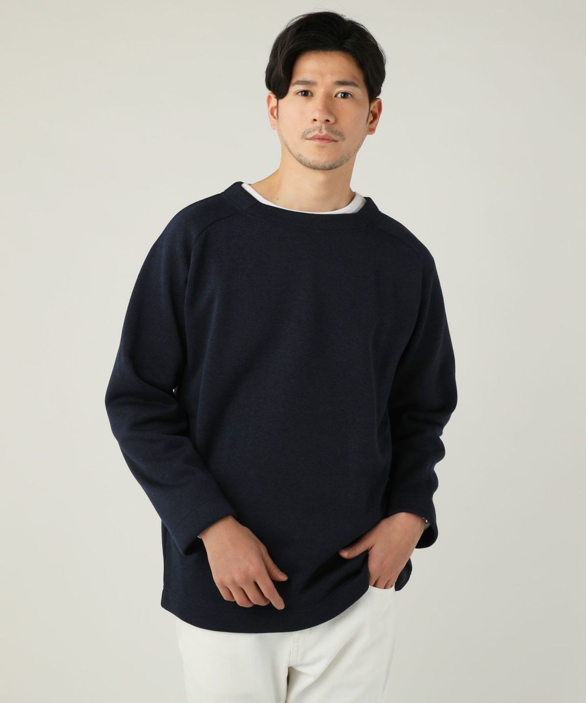 セミワイドシルエットケーブル編みクルーネックニット