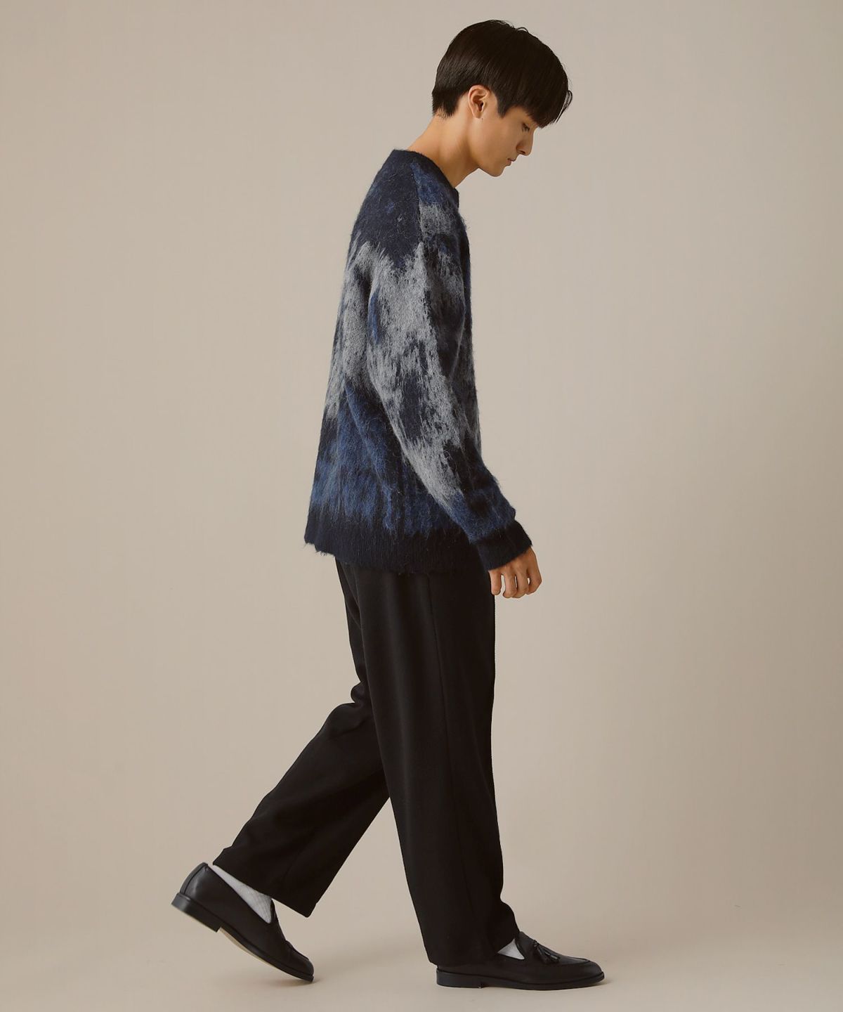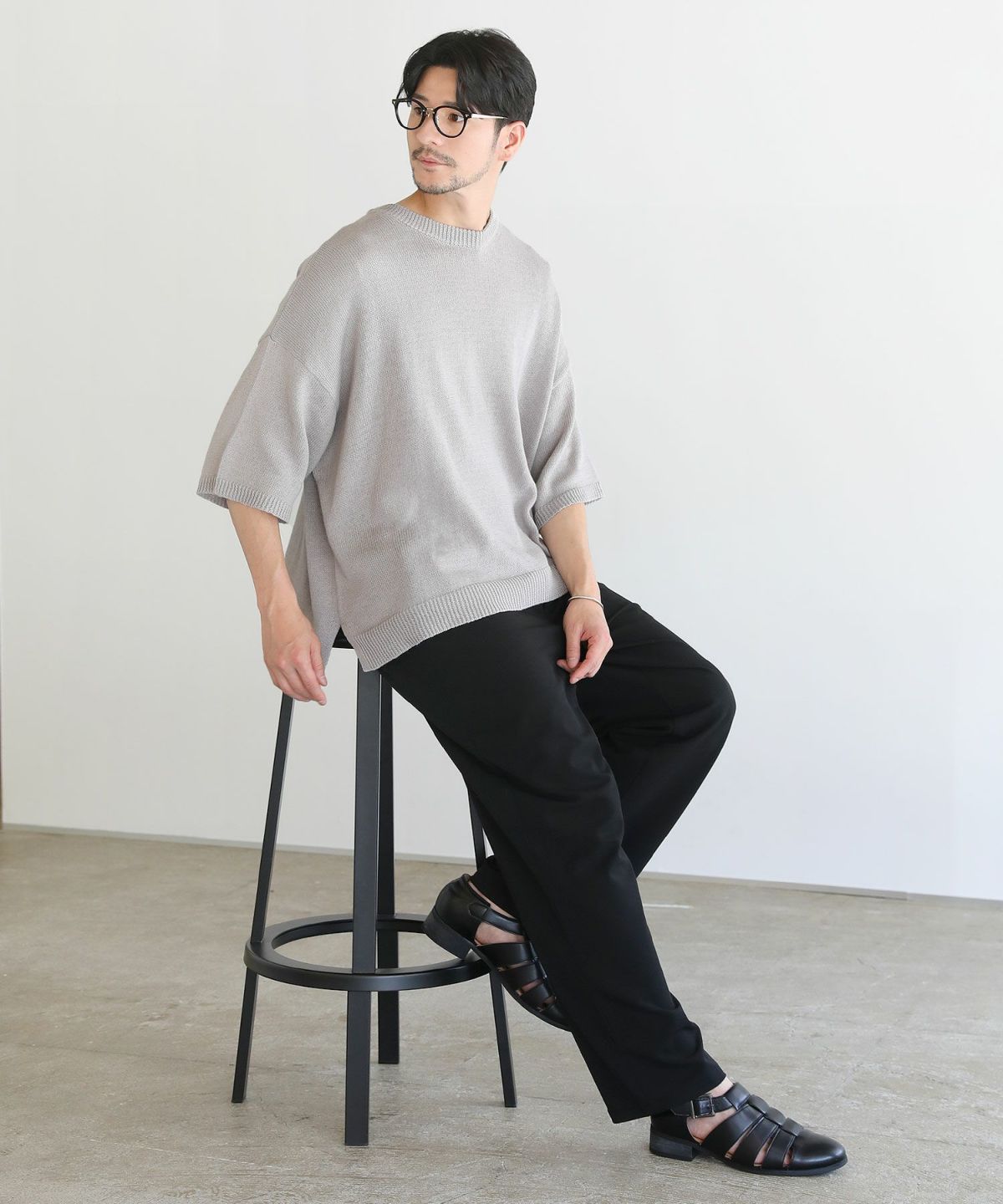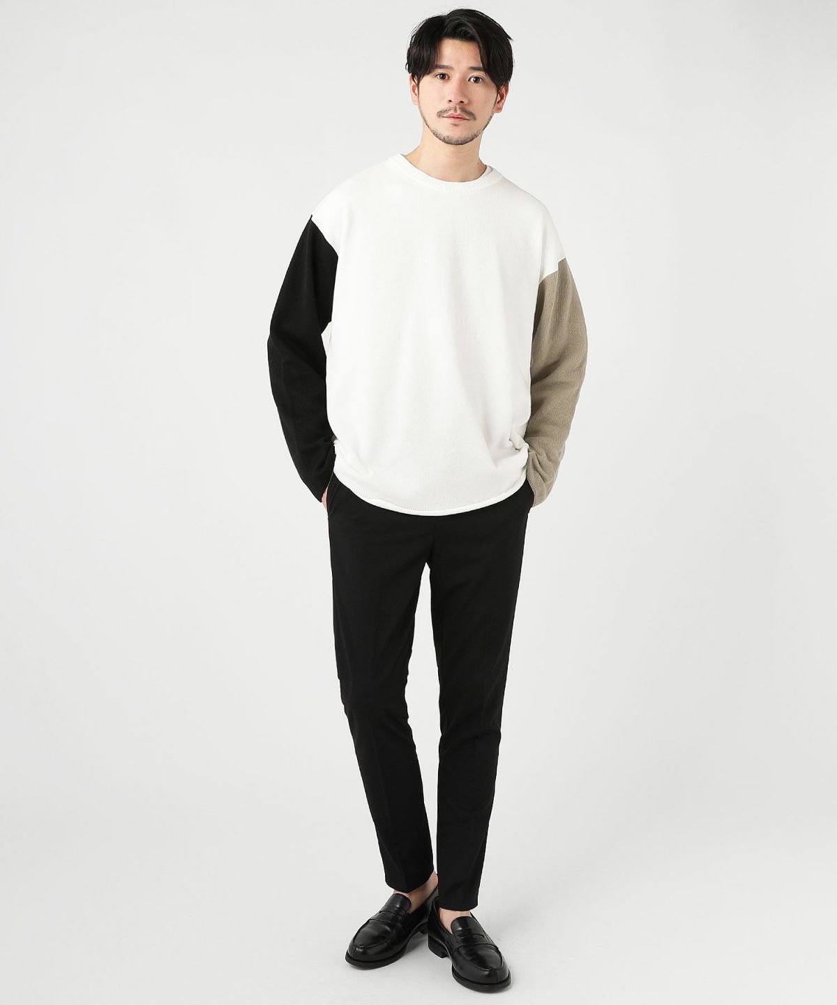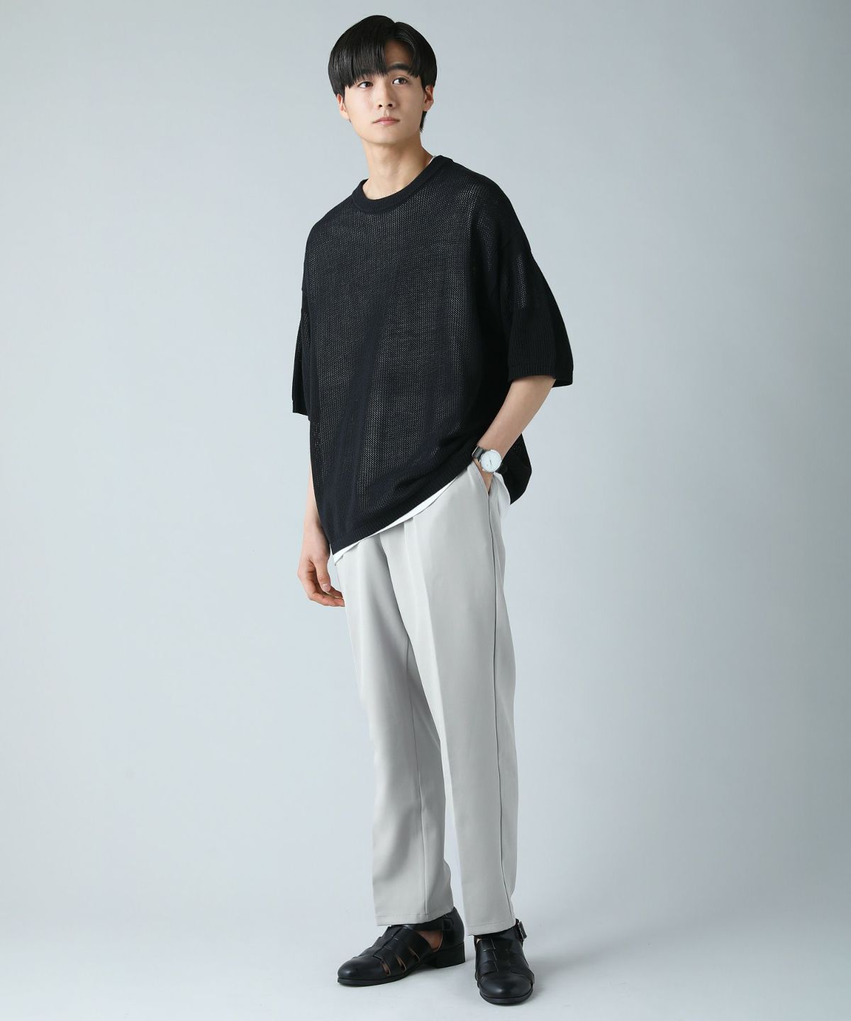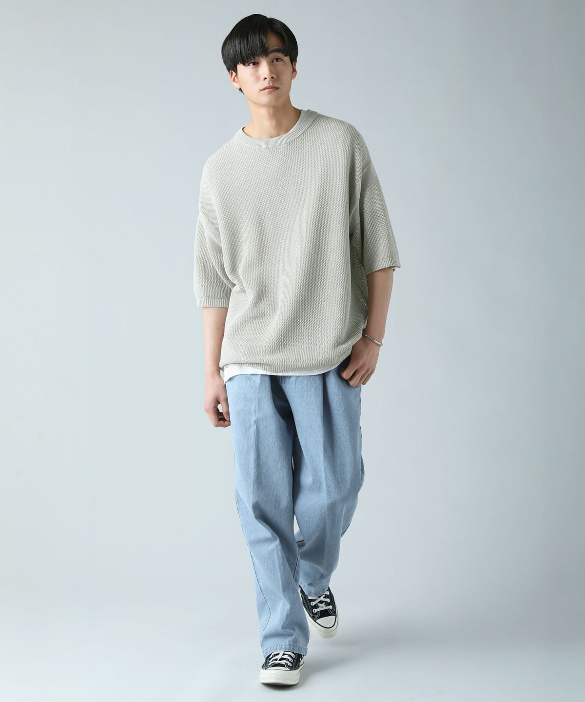 セミワイドシルエットケーブル編みクルーネックニット