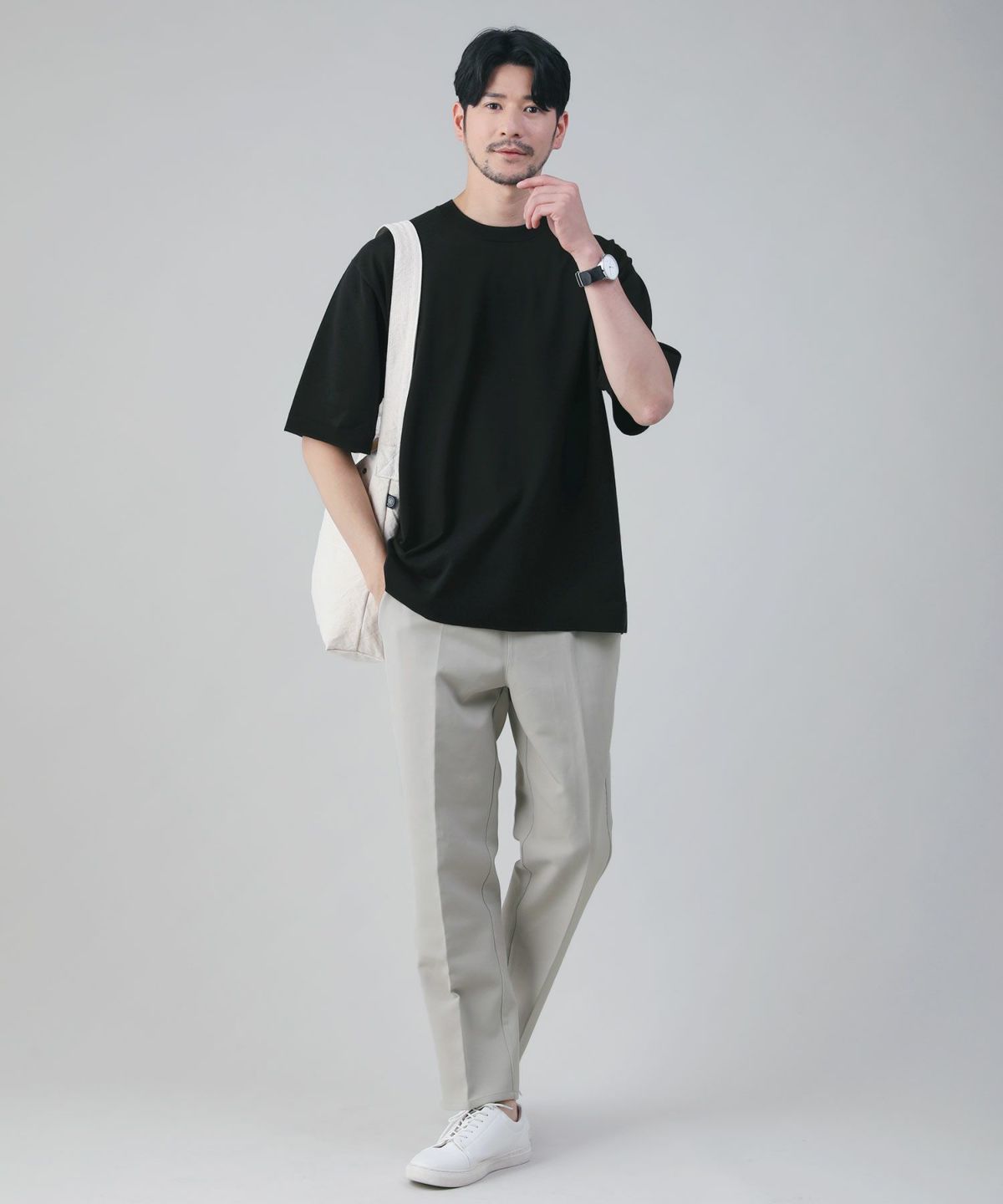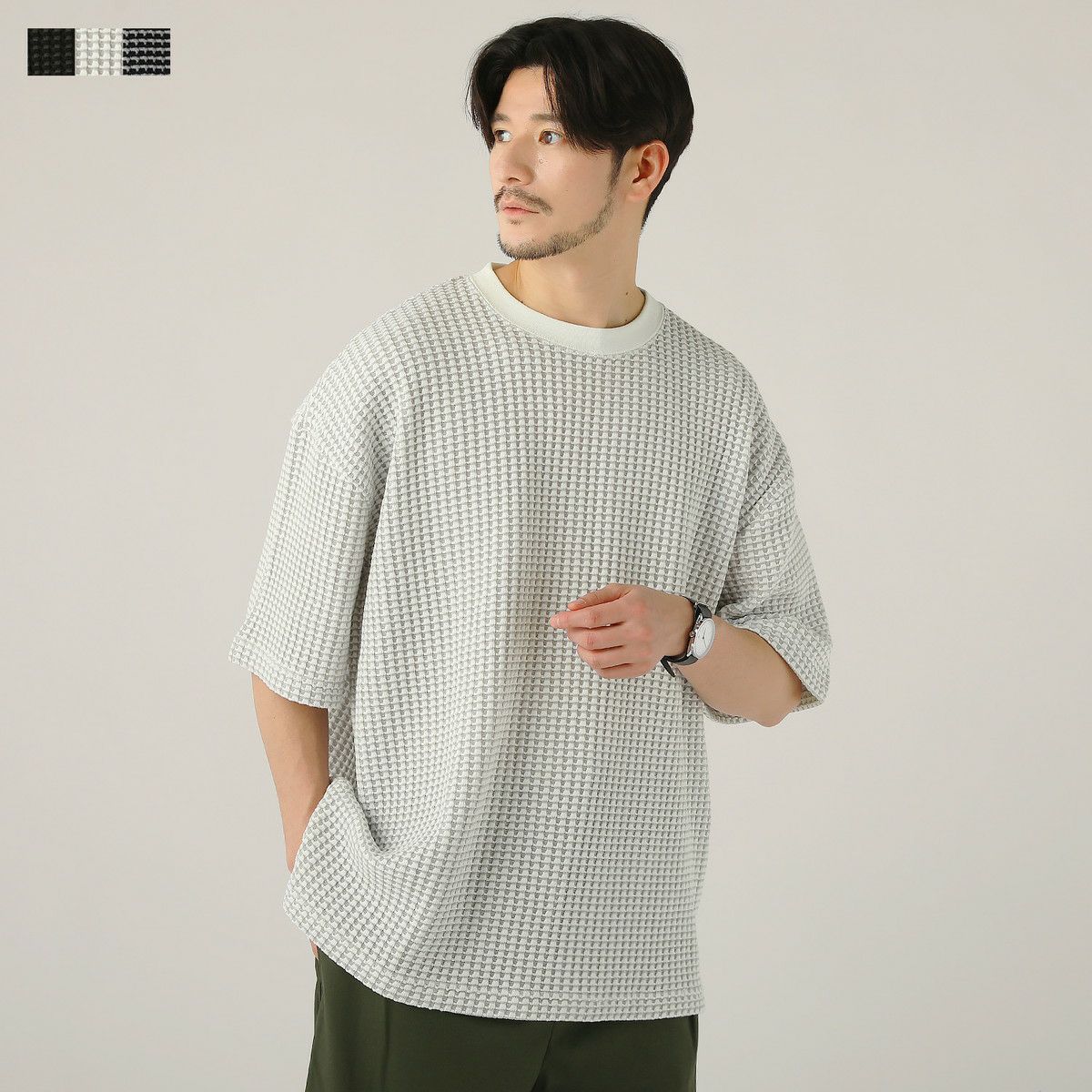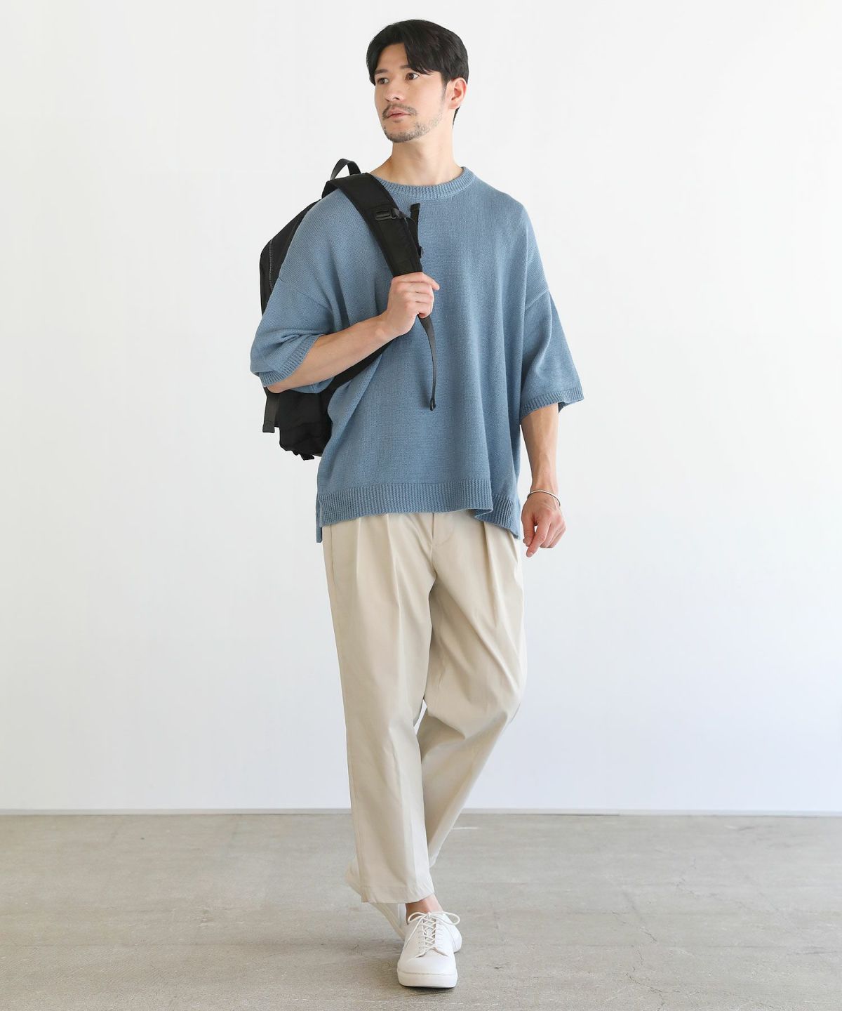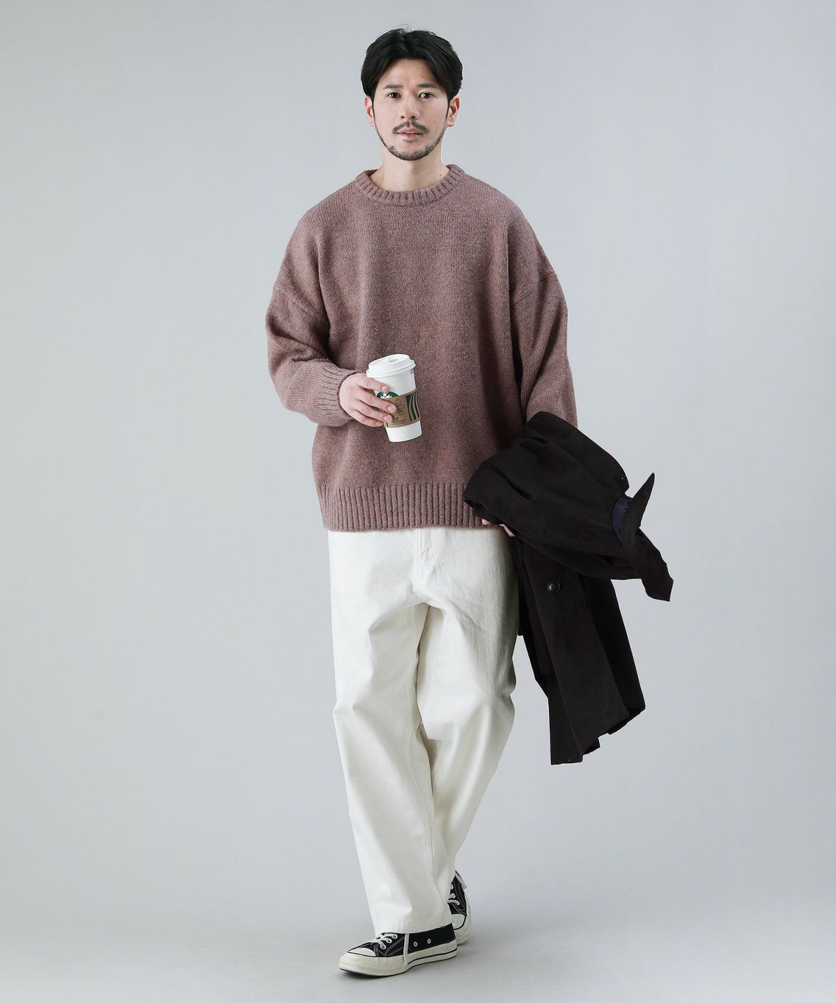 セミワイドシルエットケーブル編みクルーネックニット