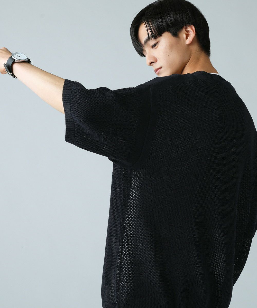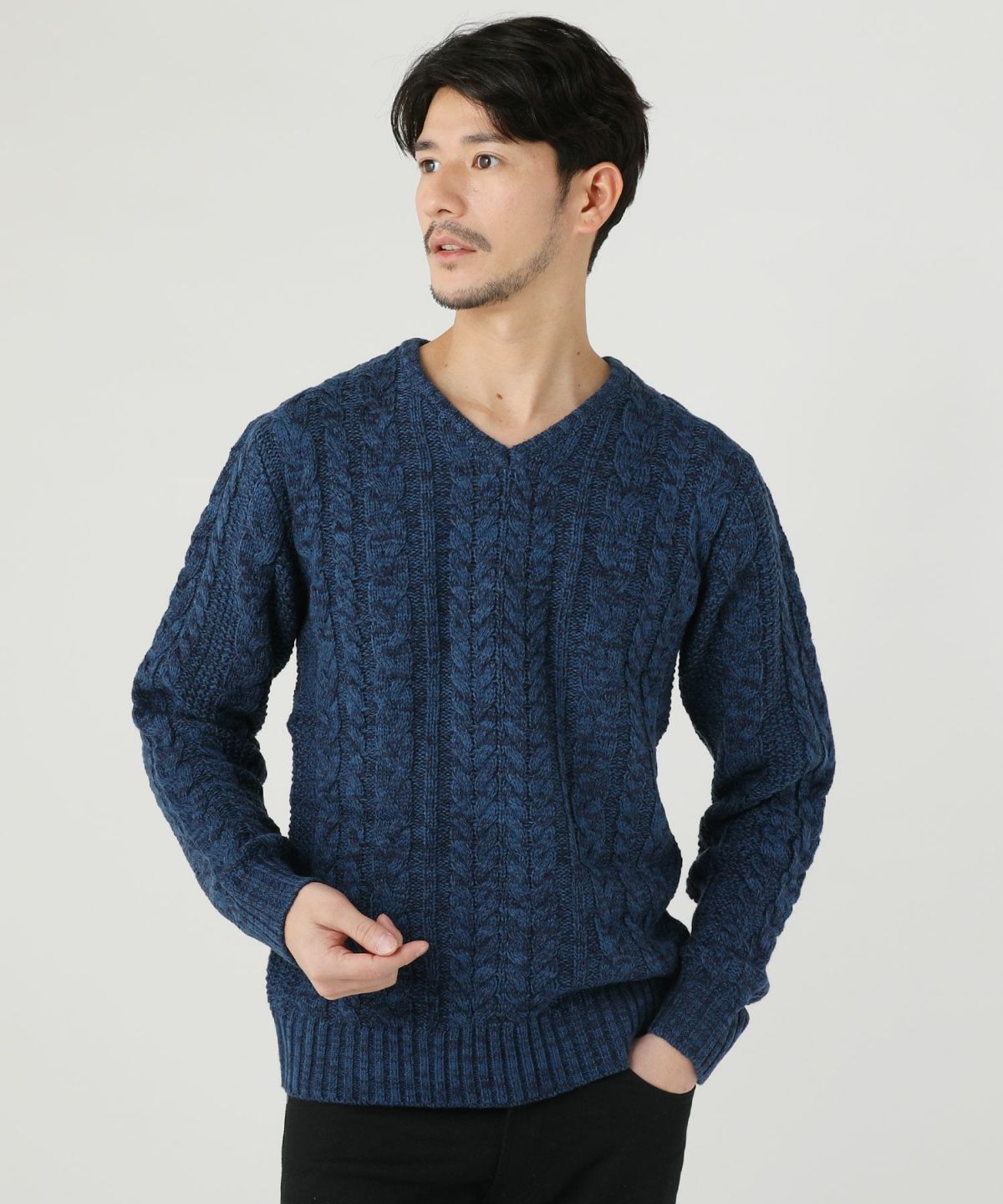 セミワイドシルエットケーブル編みVネックニット