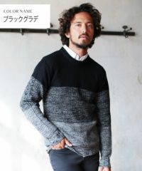 セミワイドシルエットケーブル編みクルーネックニット
