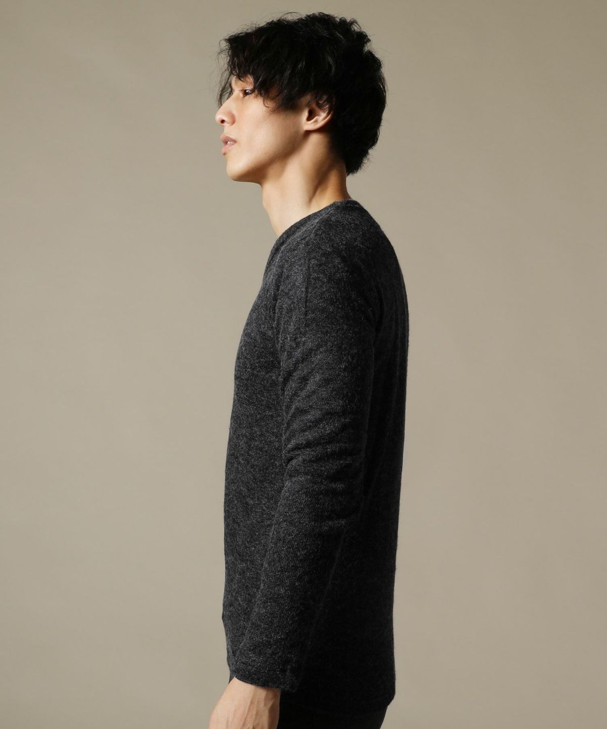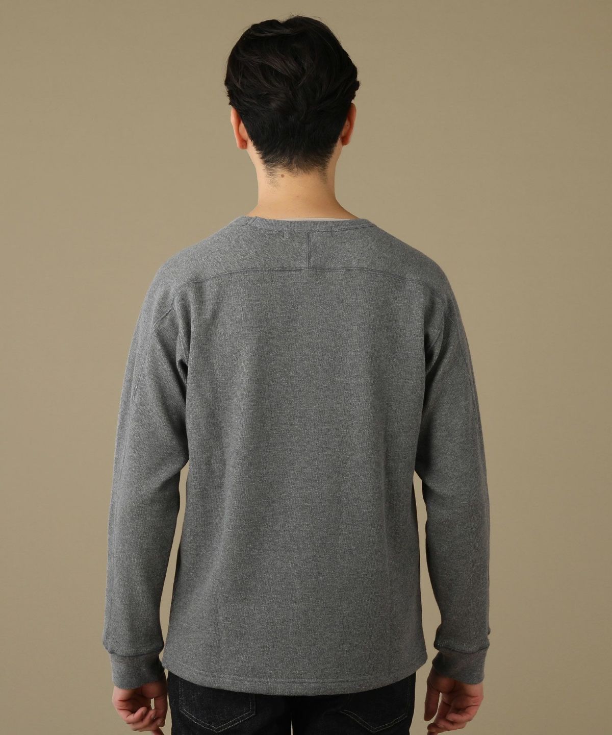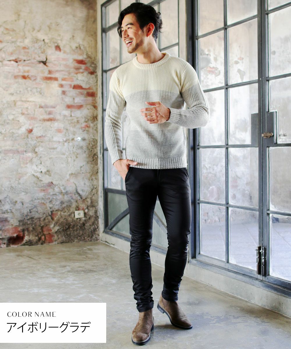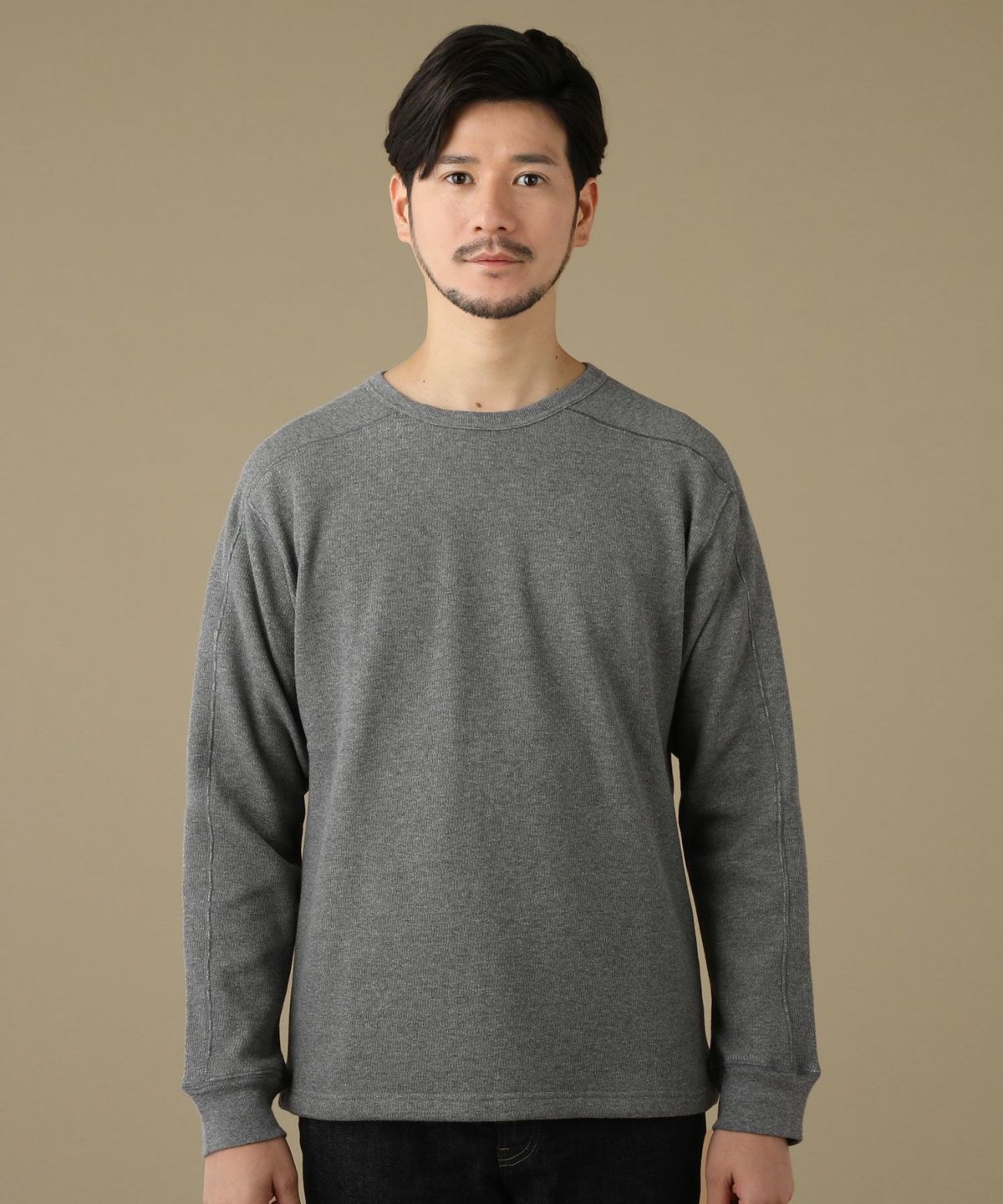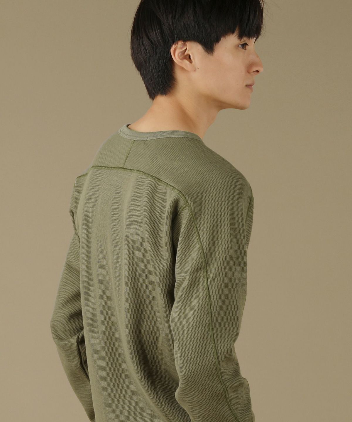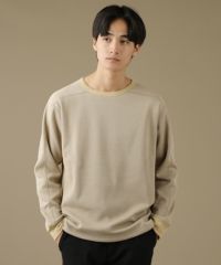 日本製ボンバーヒートハニカムサーマルスプリットスリーブクルーネックニット