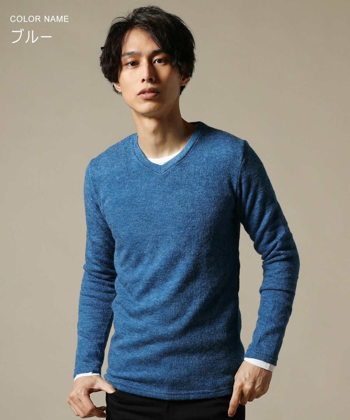 【2点セット】バルキーソフトタッチ長袖Vネックニットソー×カットソーアンサンブル