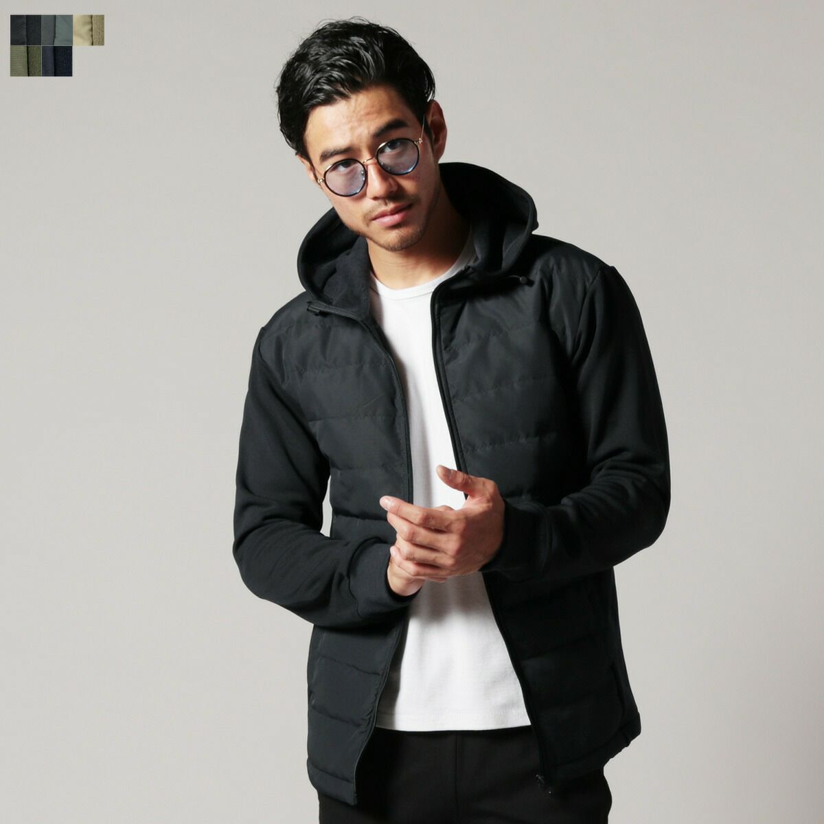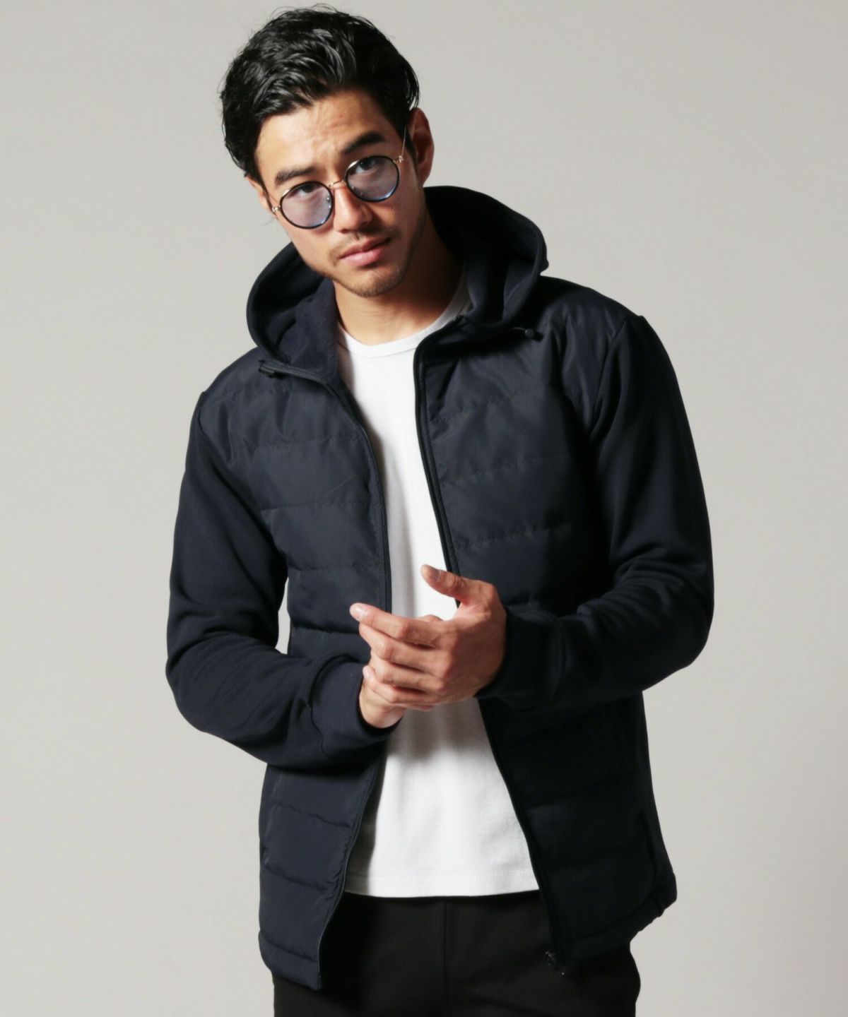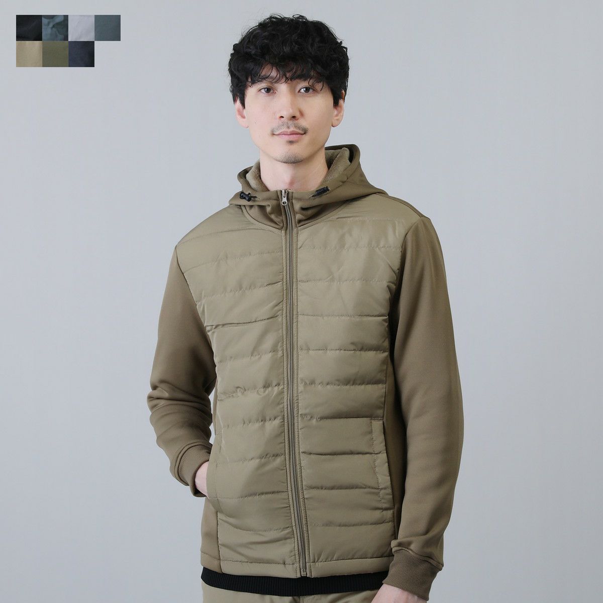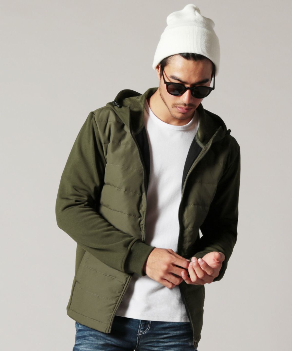 中綿×ダンボールニット切り替えフードジャケット
