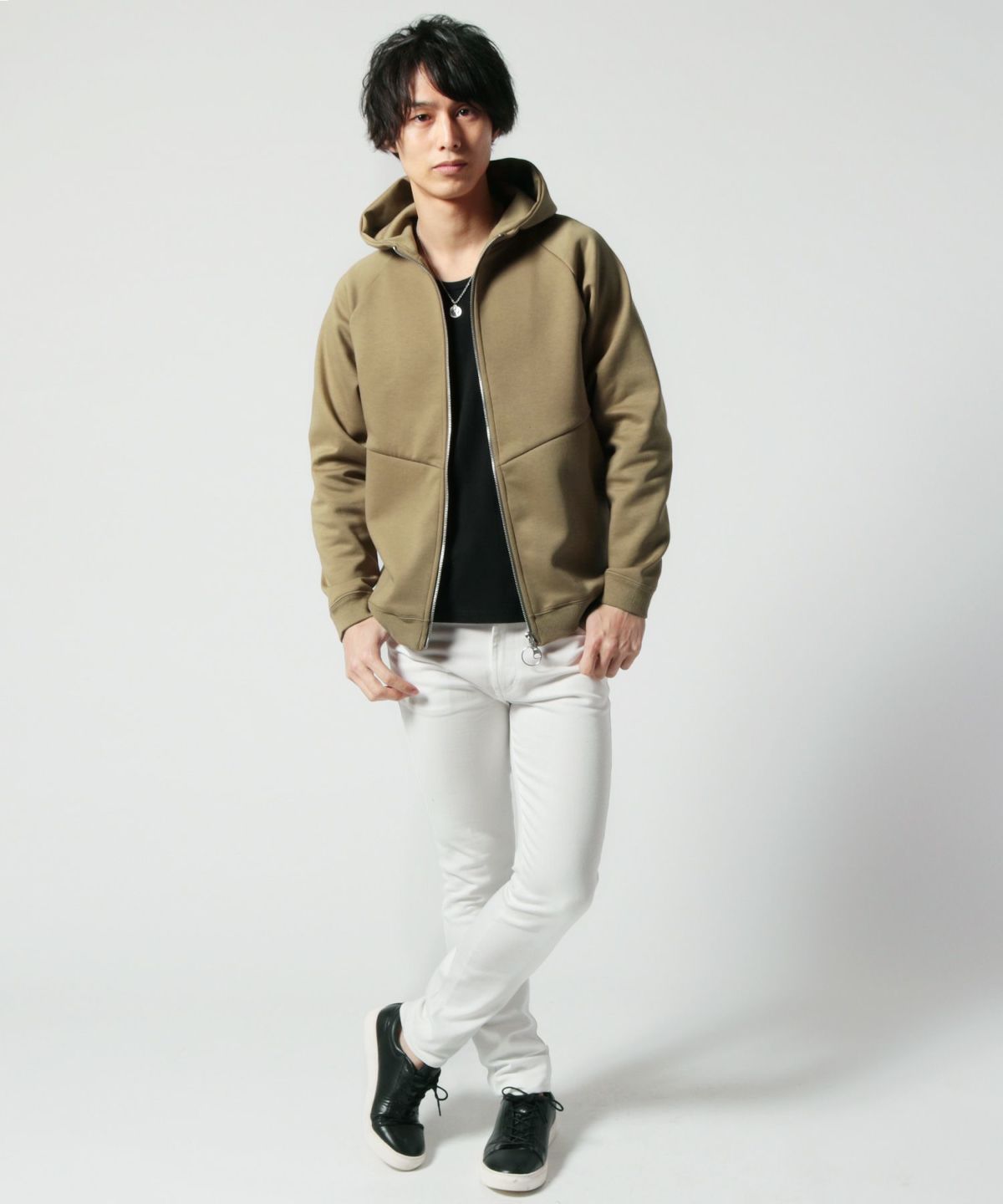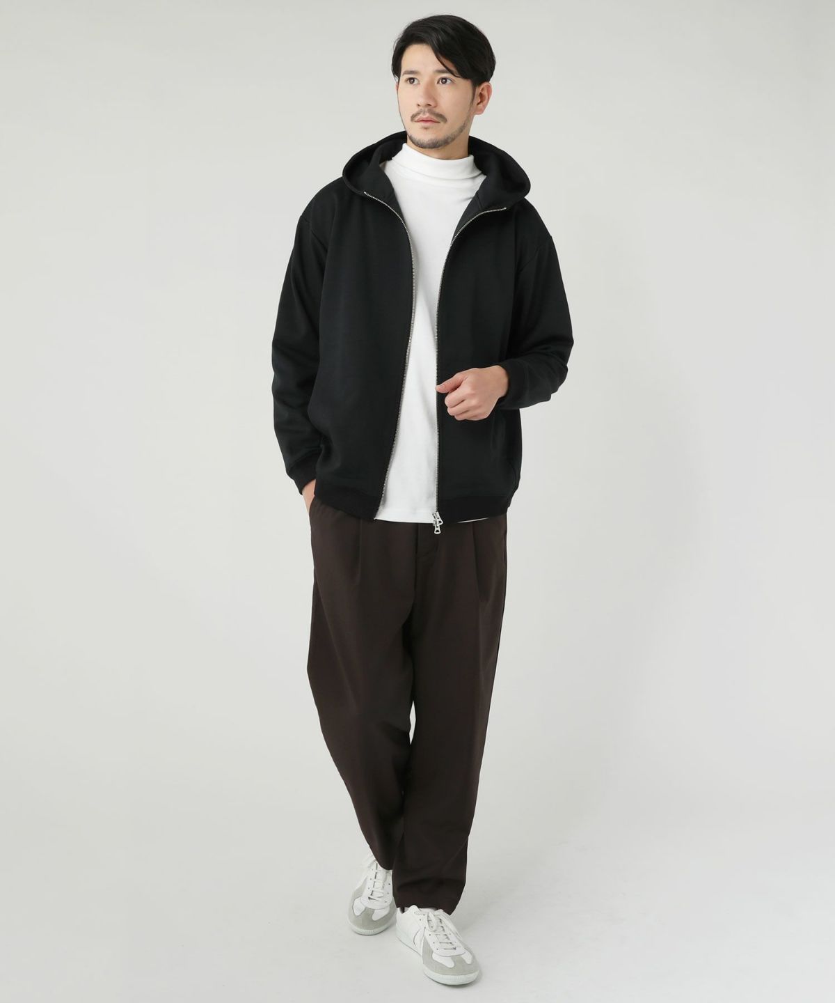 裏毛スウェットハイネックジップパーカー