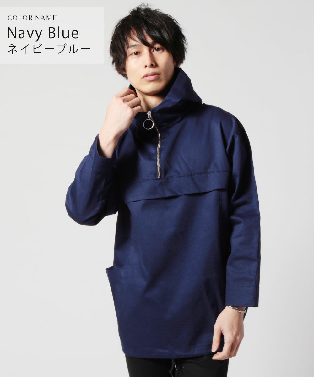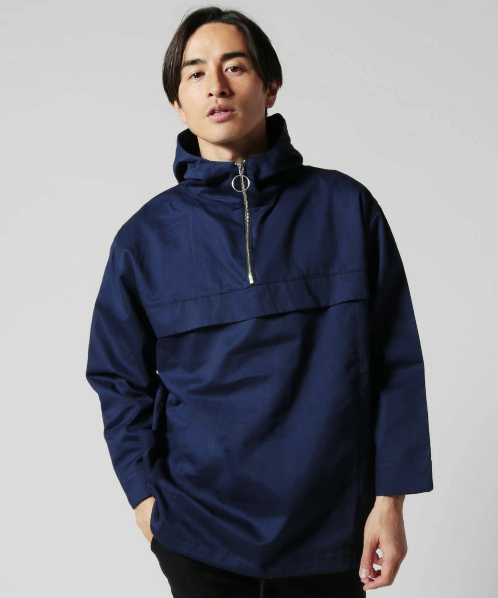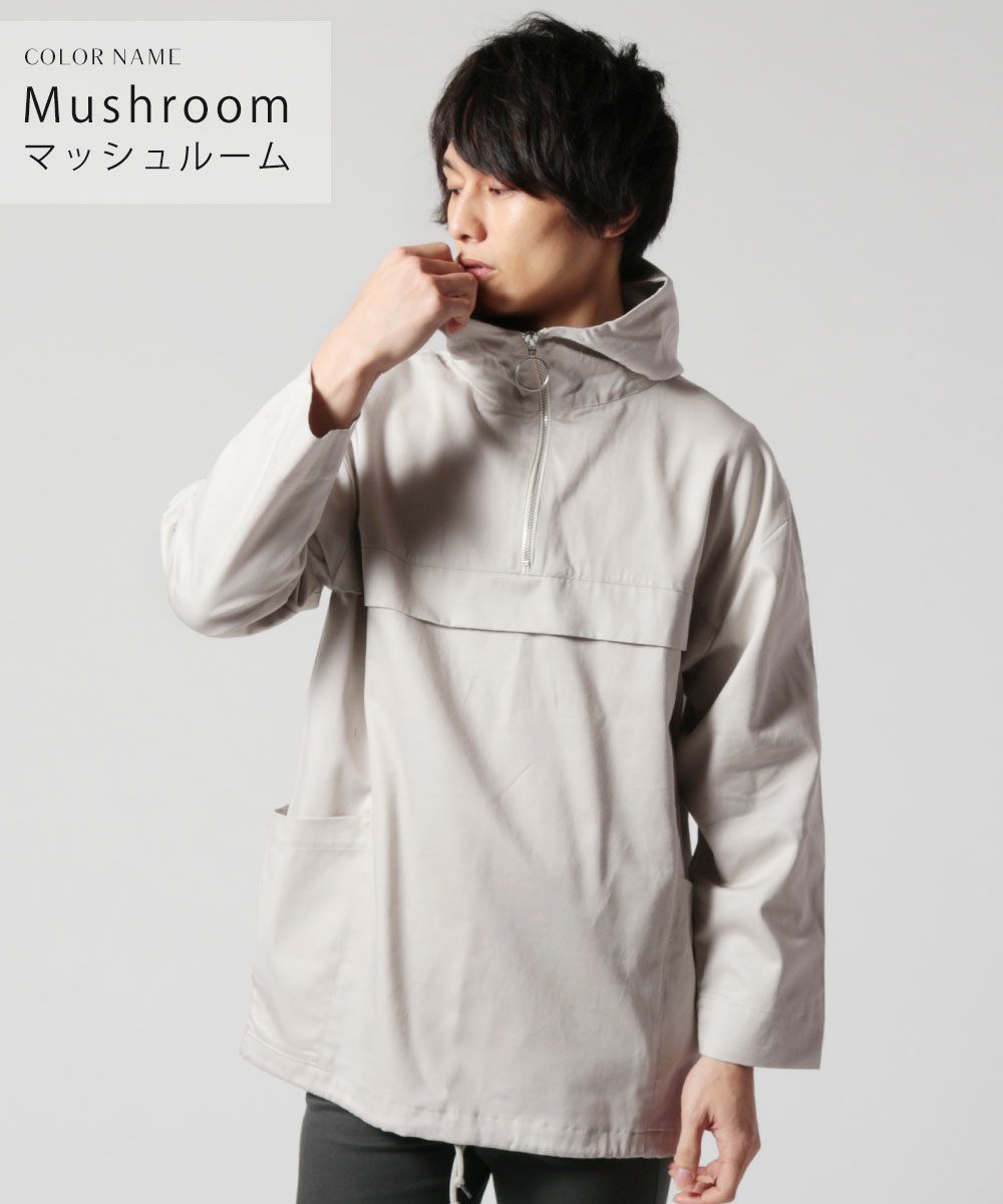 日本製グロッシーツイルガーデニングツールポケット アノラックハーフジップパーカー