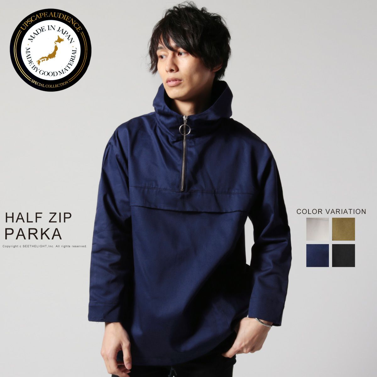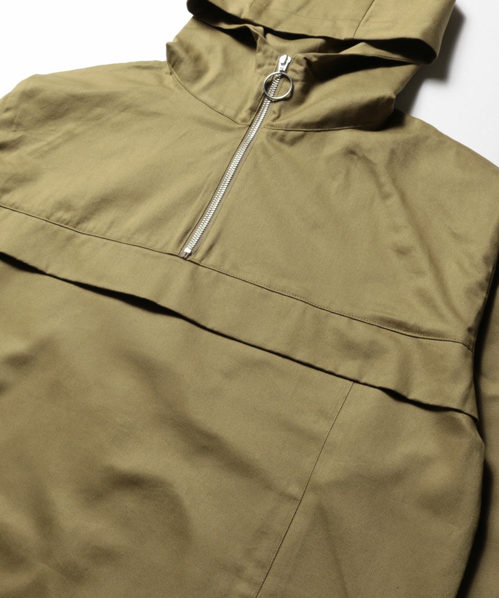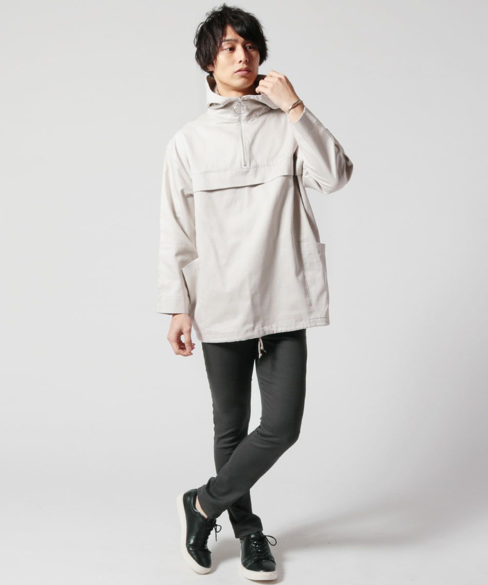 日本製グロッシーツイルガーデニングツールポケット アノラックハーフジップパーカー