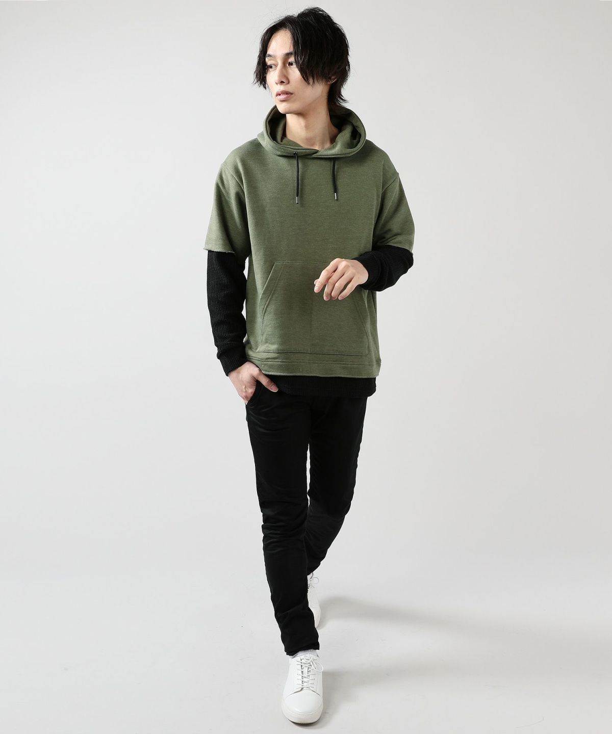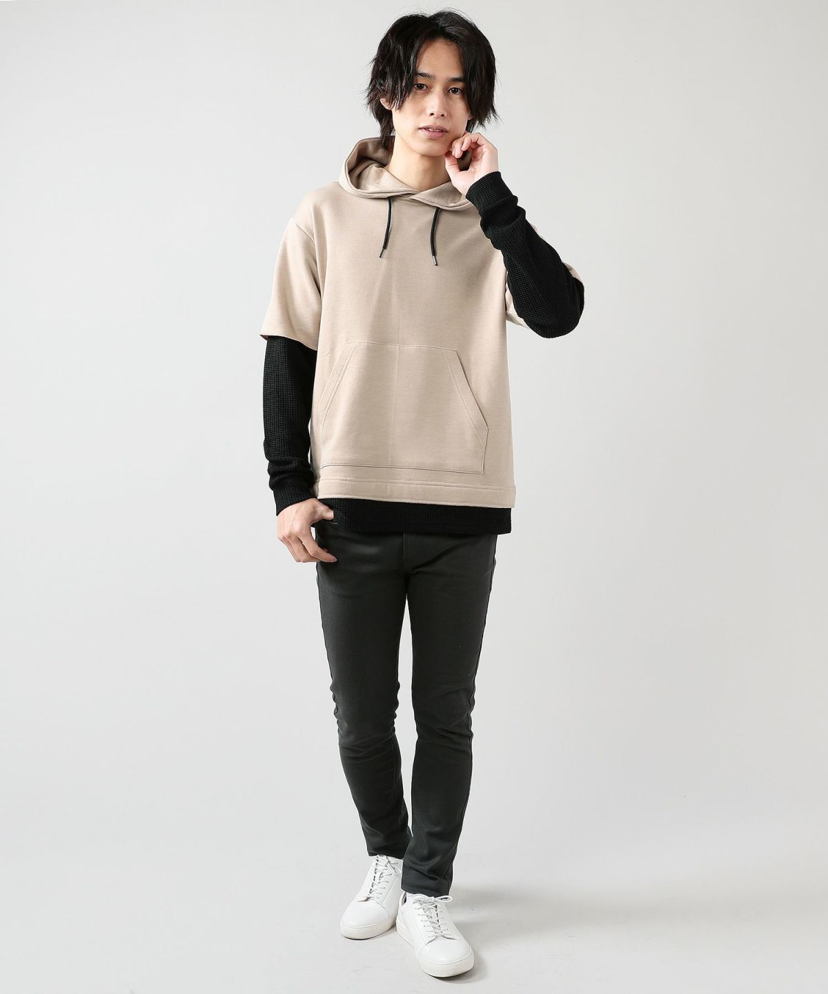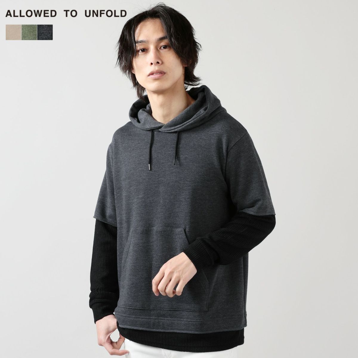 TCR裏毛×ワッフルアスレチック長袖フーディー 抗菌防臭加工