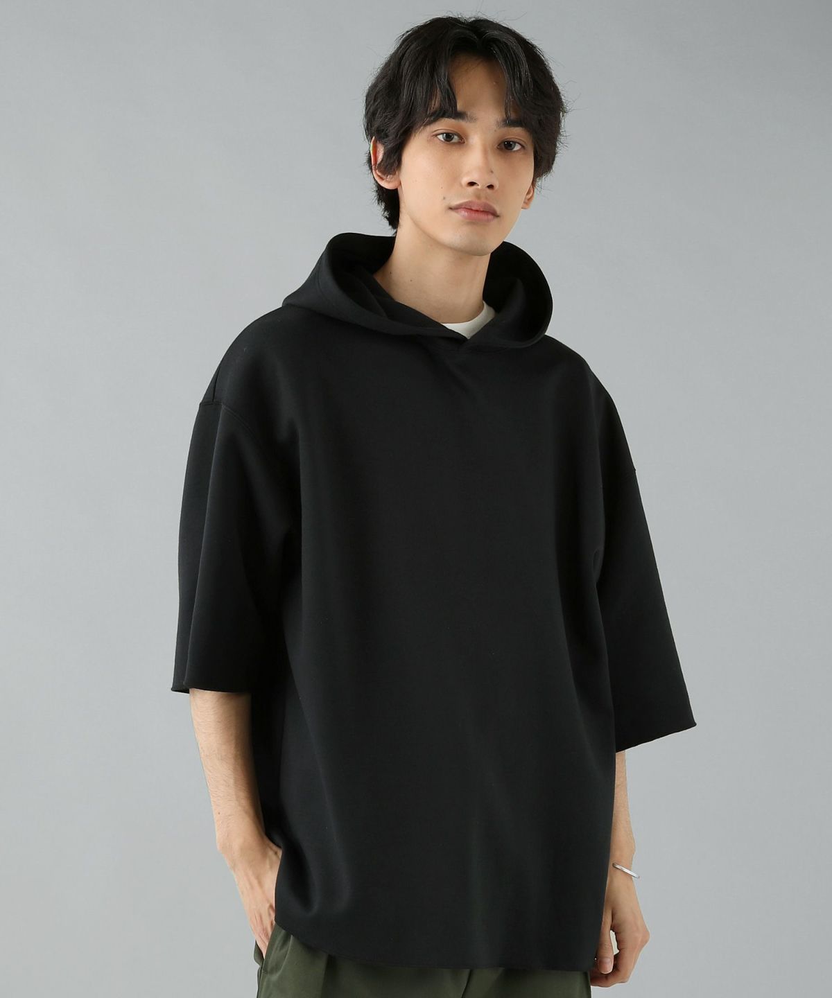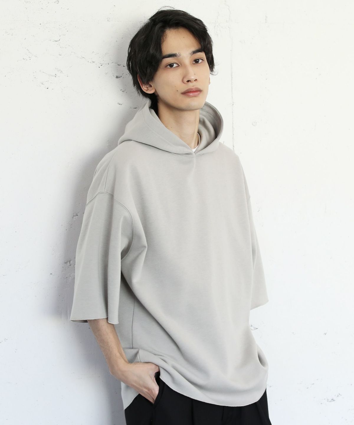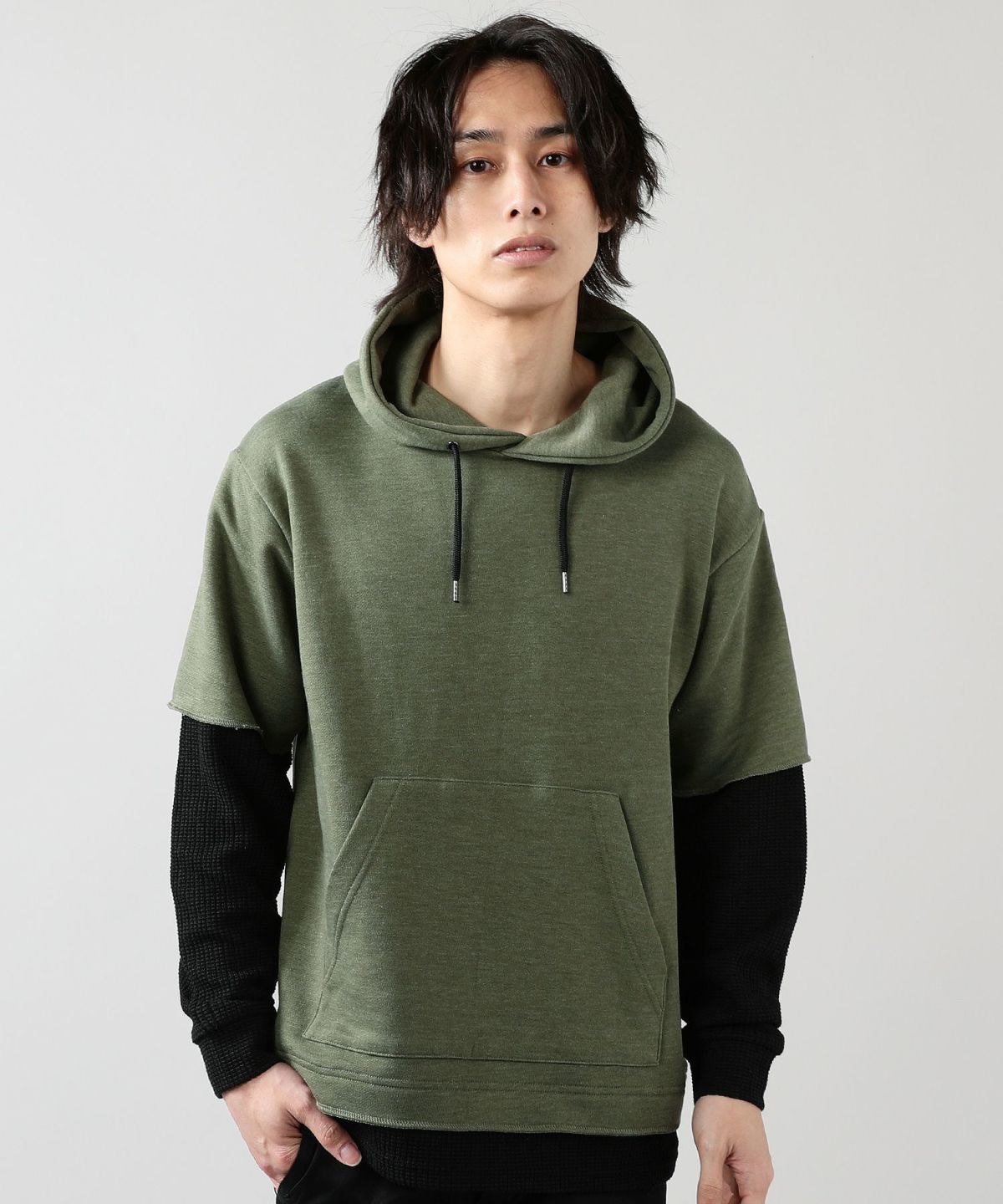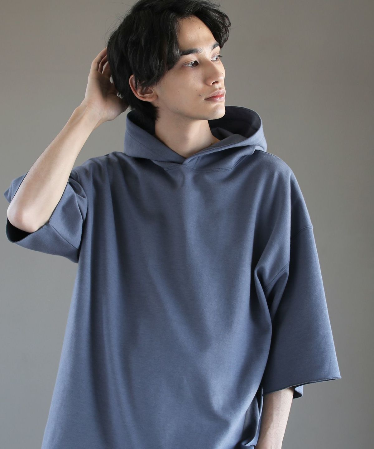 ダブルエアニットハーフスリーブプルパーカー