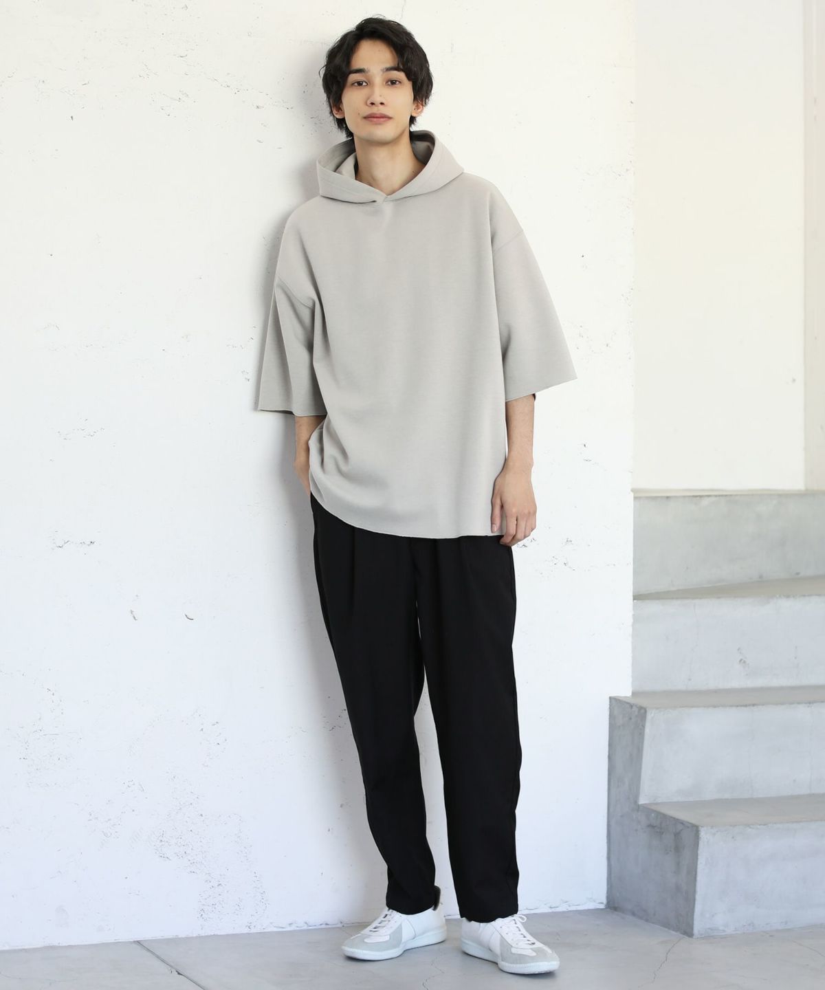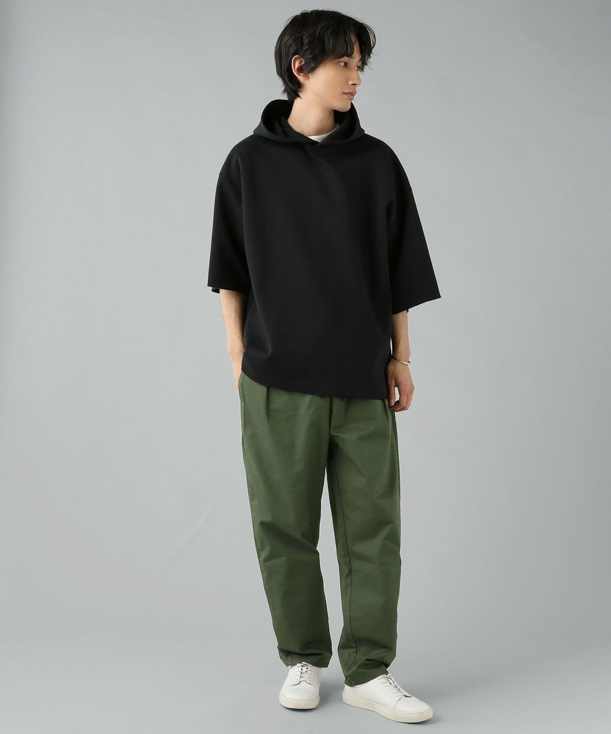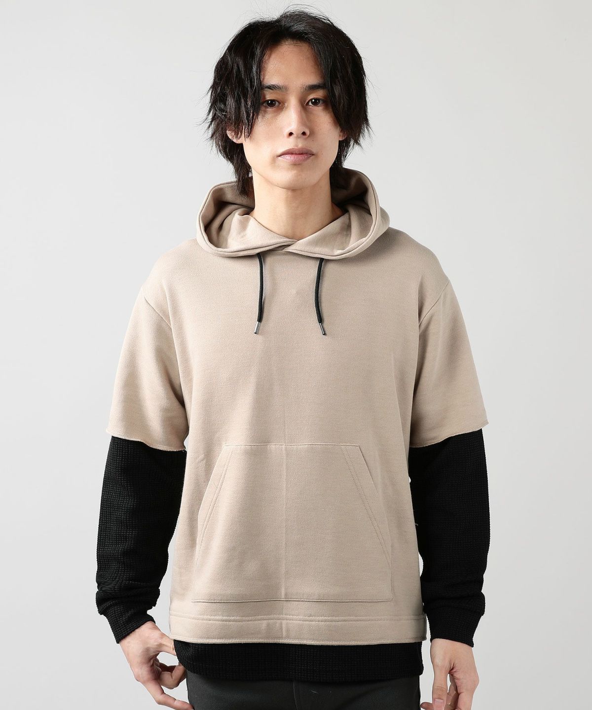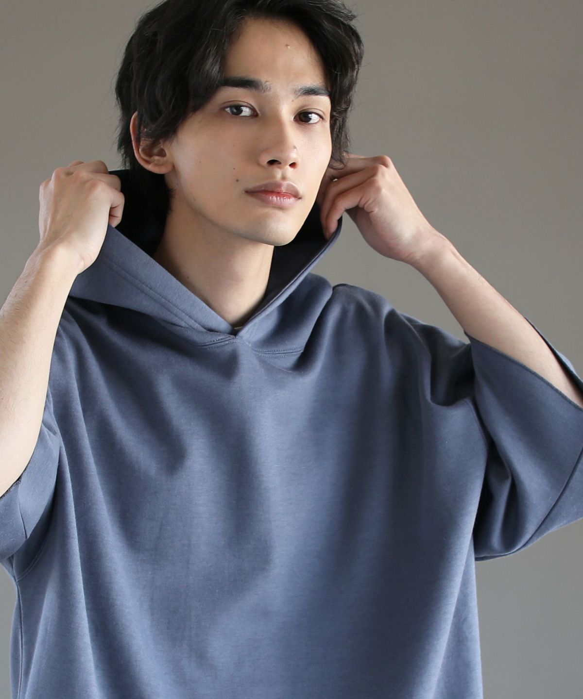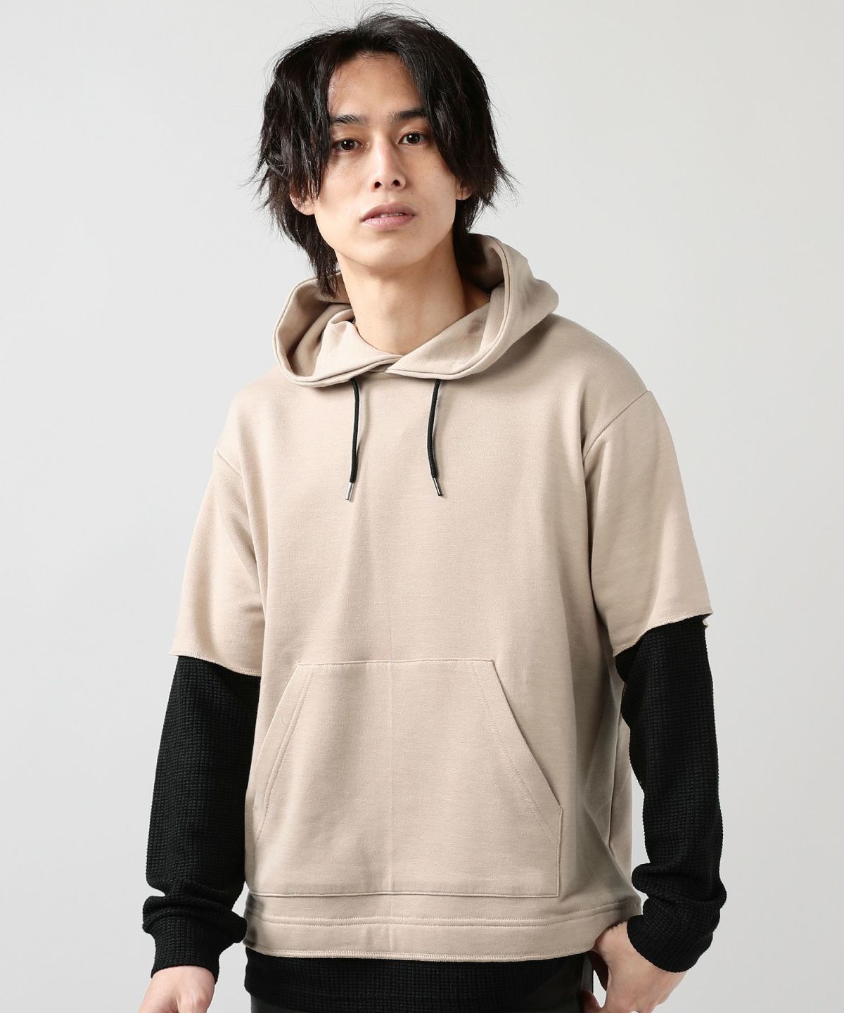 ダブルエアニットハーフスリーブプルパーカー