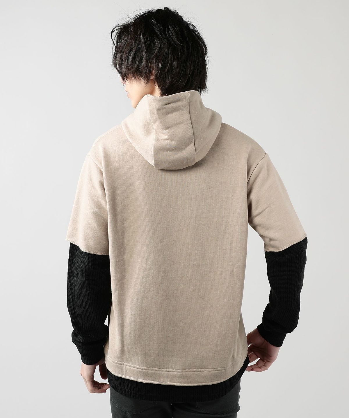 2トーンビッグワッフルプルパーカー